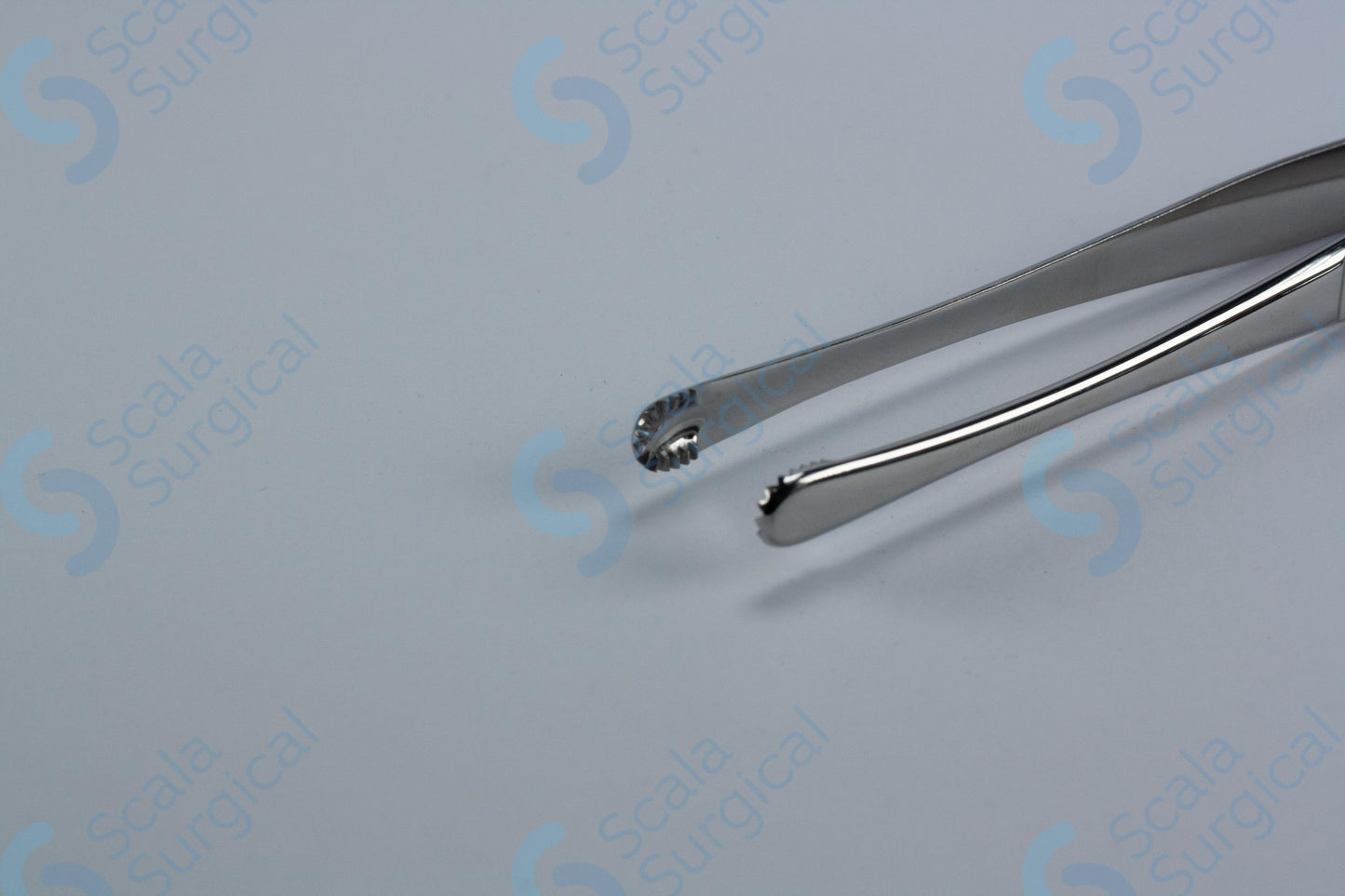 Russian Pattern Dissecting and Tissue Forceps Oval Toothed End (203.2mm) (8 inch) is a surgical tool used to hold, grasp, and manipulate tissue during surgical procedures. The oval-toothed end provides a secure grip on tissue, allowing for precise and delicate handling. It is commonly used for dissecting and cutting tissue during surgical procedures.