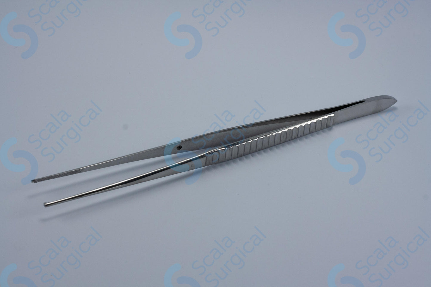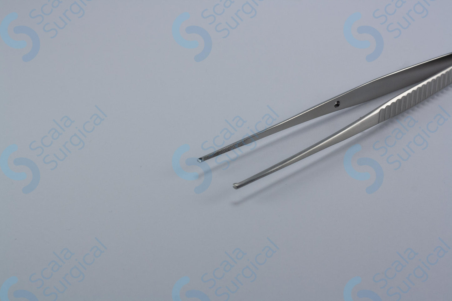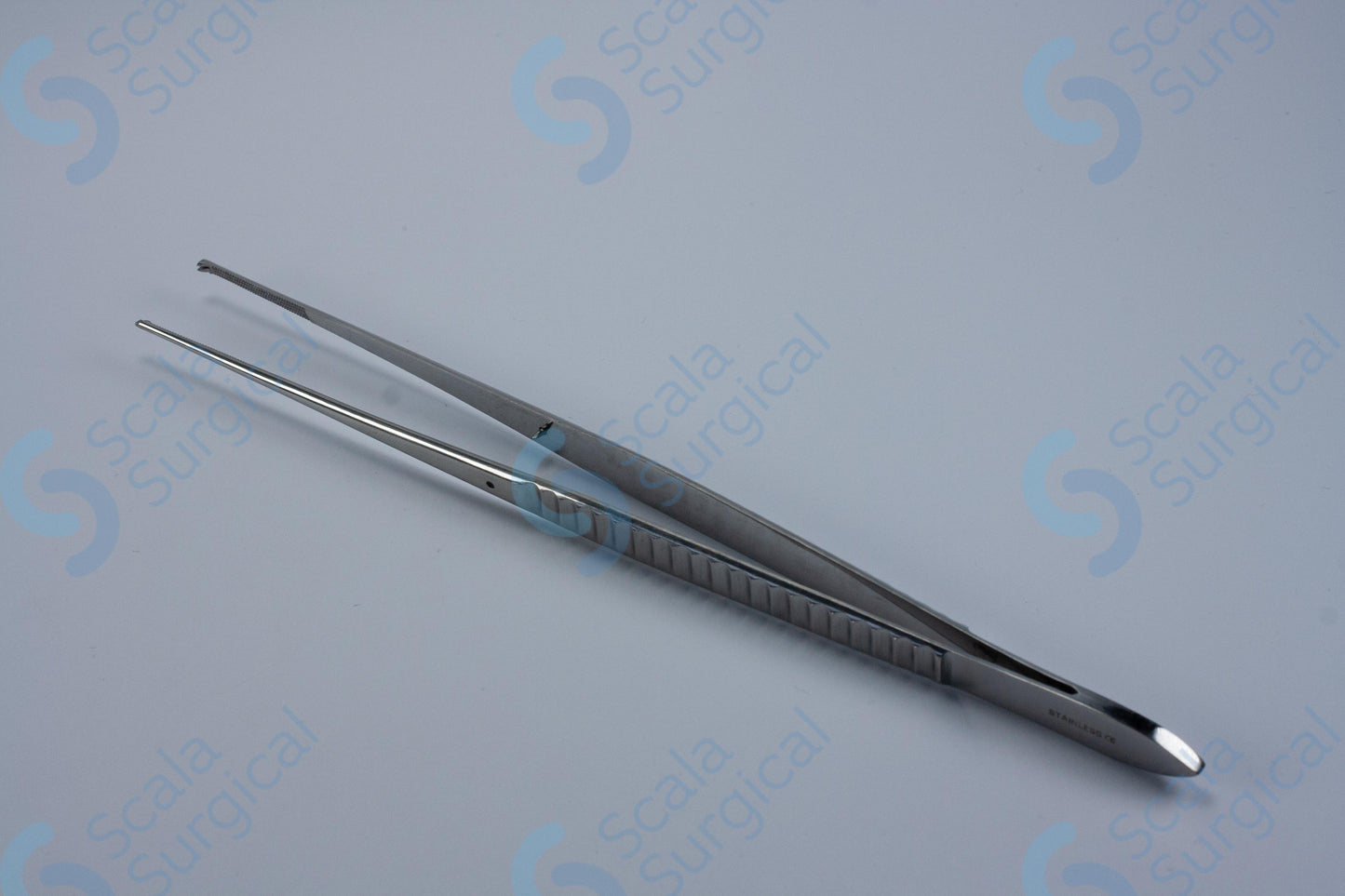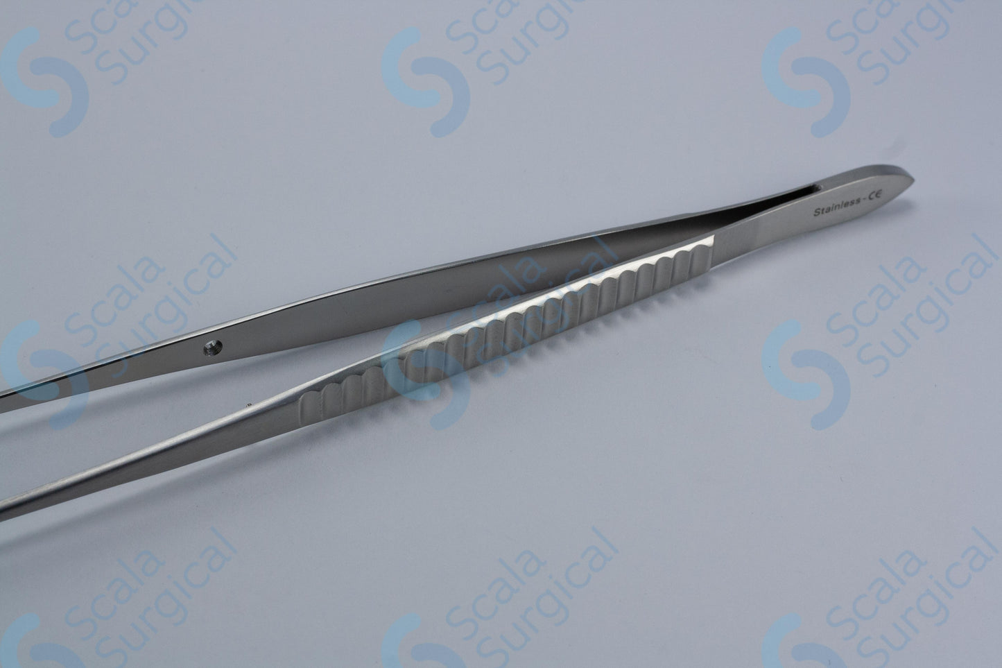 Waugh's Dissecting and Tissue Forceps are a type of surgical instrument used to hold tissue in place while it is being cut or manipulated. They are typically used during surgical procedures, such as dissections, biopsies, and other tissue-related operations. The 1 x 2 teeth (203.2mm) (8 inch) forceps have two rows of teeth along the tips of the jaw, which help to grip tissue and provide a secure hold.