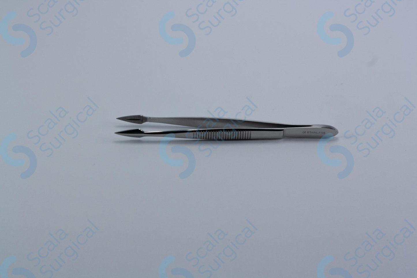 Hunters Splinter Forceps Straight are used to remove splinters, thorns, and other small foreign objects from the skin. They have a fine, sharp tip that can grasp and remove objects with precision.