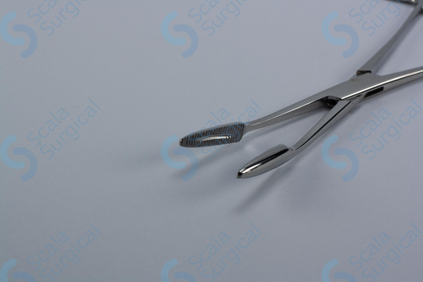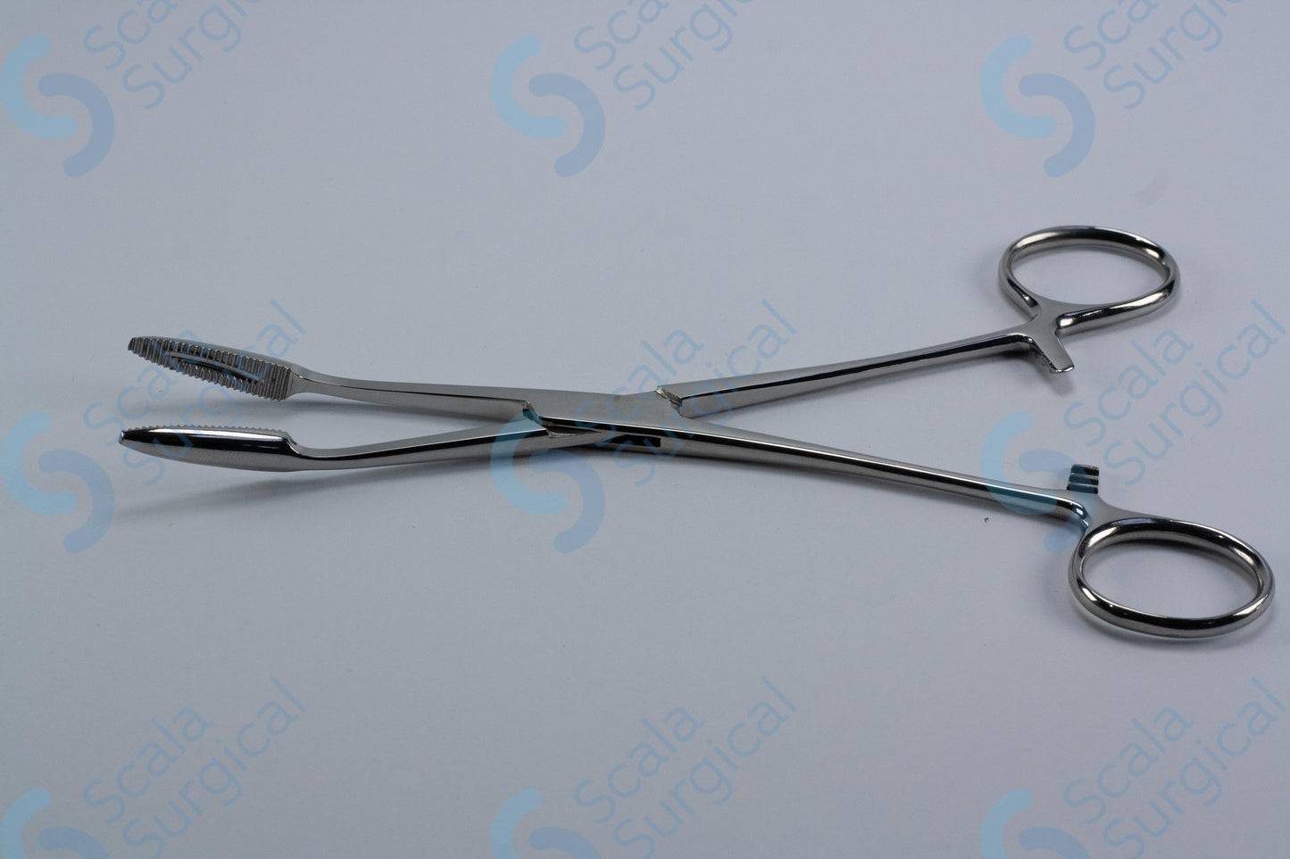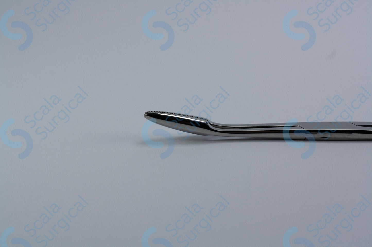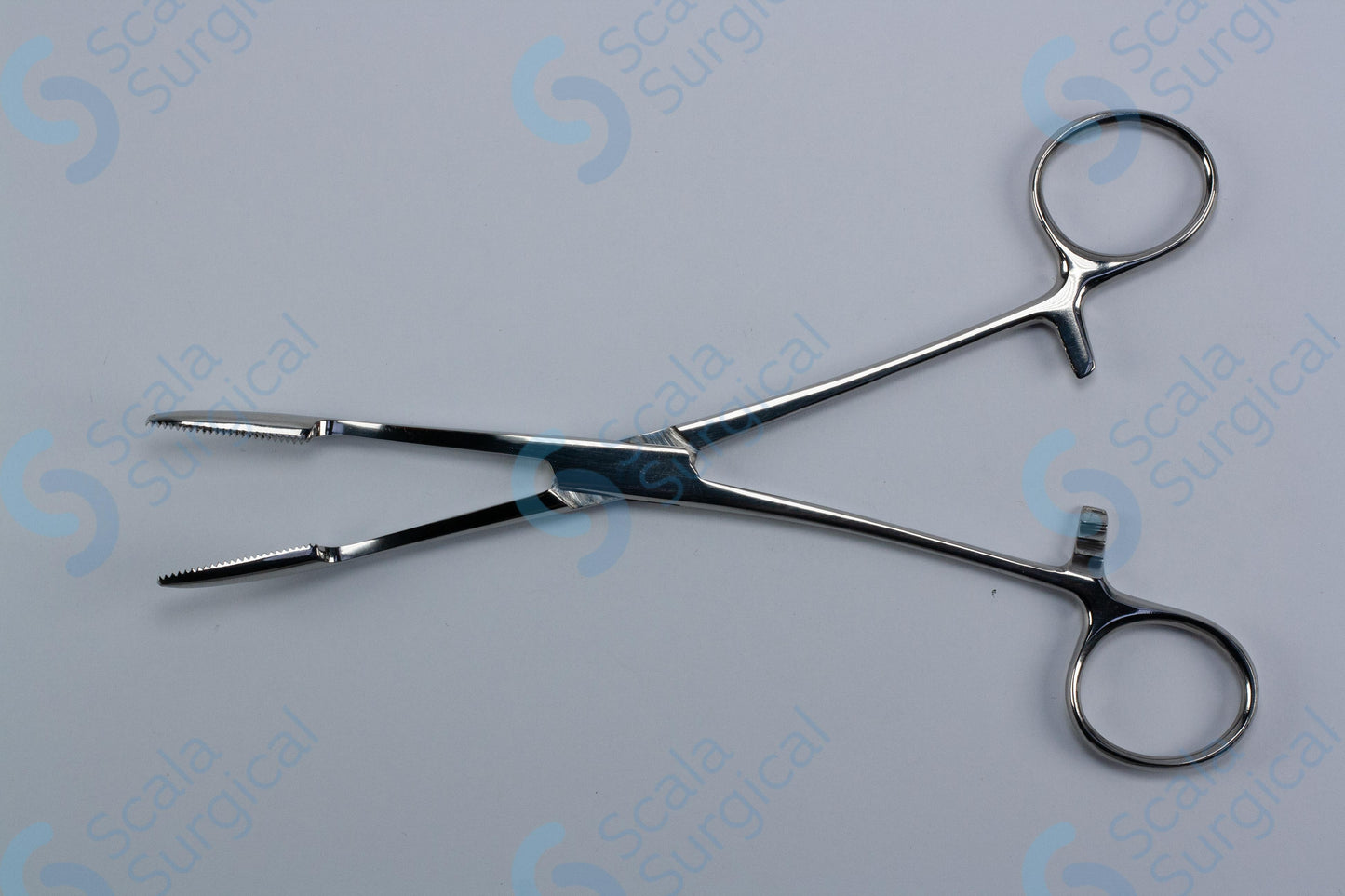 Gross dressing forceps are a type of surgical instrument used to manipulate and remove dressings (bandages) from a wound. They are slightly curved, with sharp tips, and typically 7 inches in length.