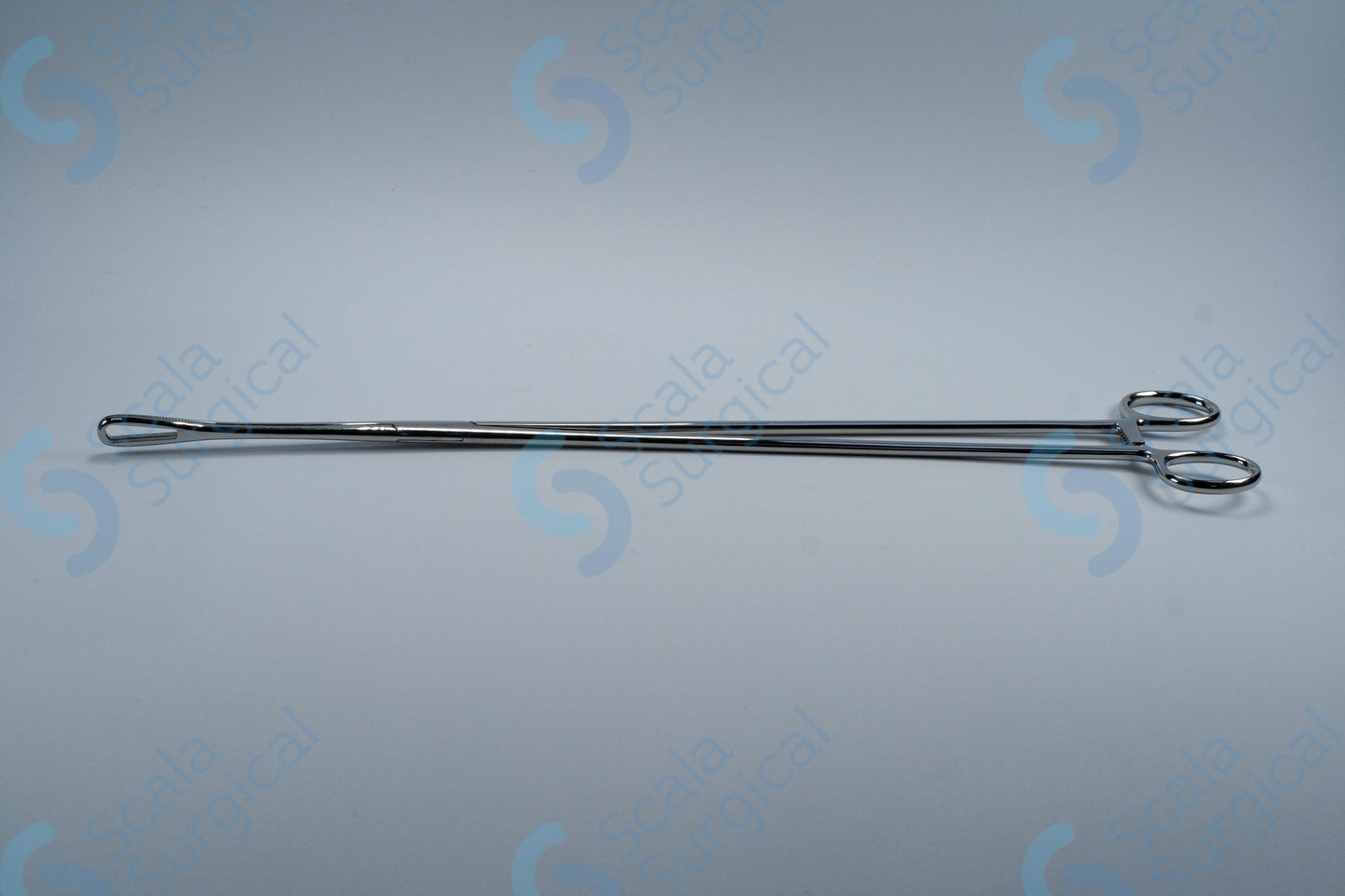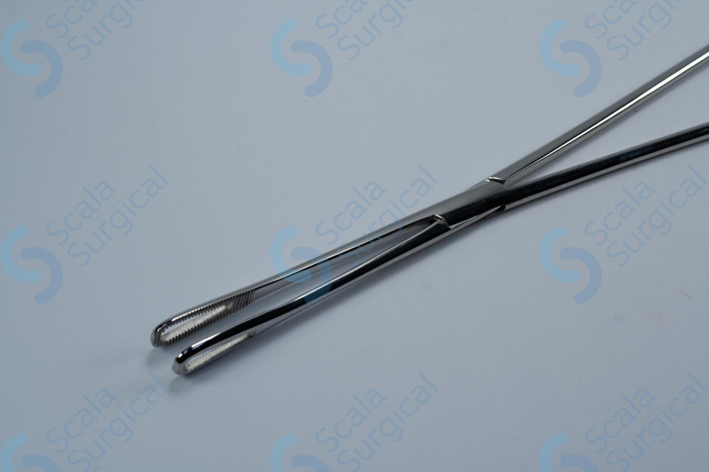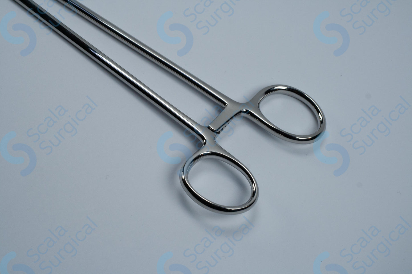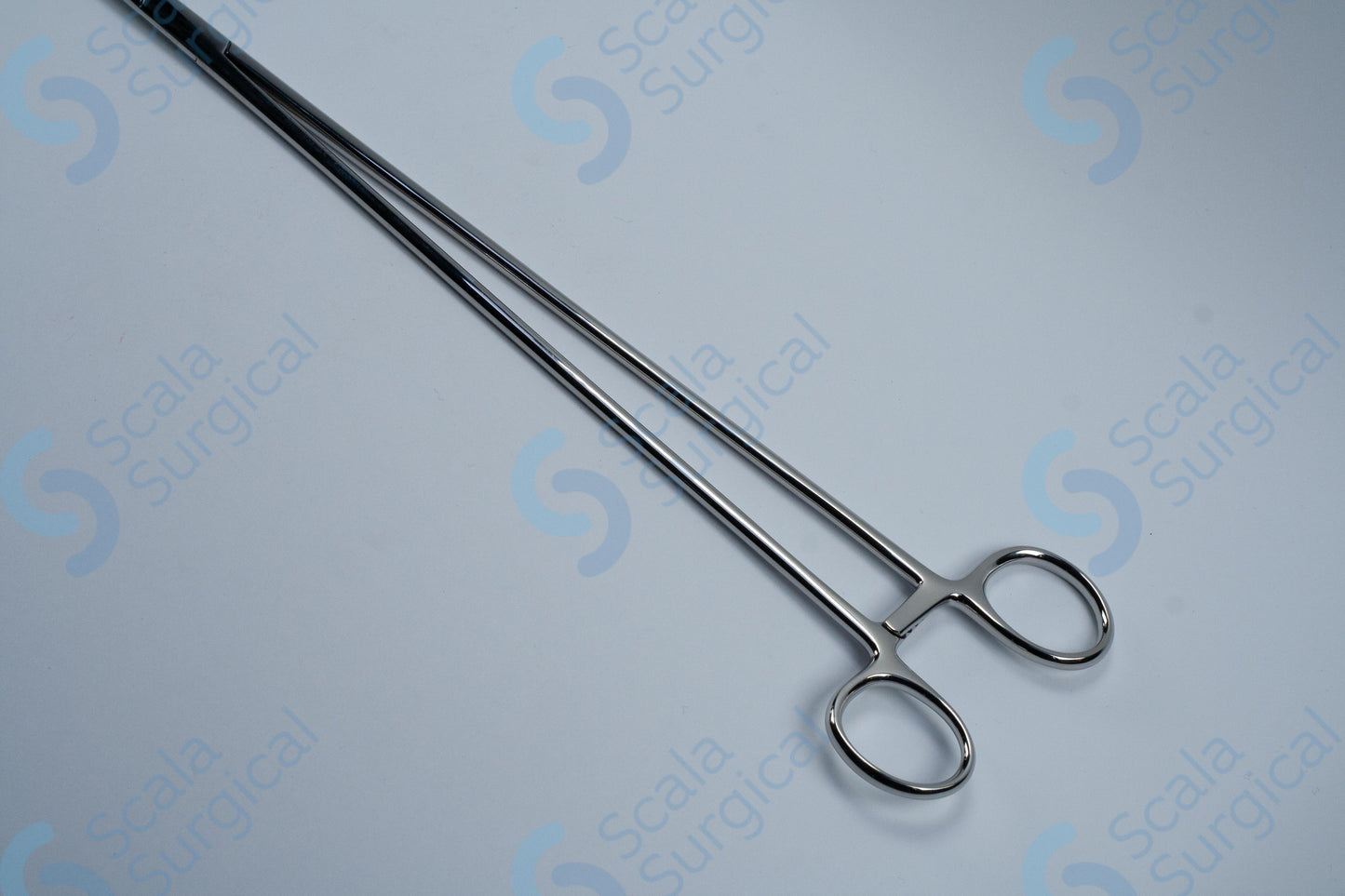 Rampley Sponge Holding Forceps Box Joint (381mm) (15 inch) is a surgical instrument used to hold and manipulate sponges, towels, or other materials during a surgical procedure. The box joint design provides a secure grip on the material being held and the long length of the forceps allows for greater reach and maneuverability during the procedure.