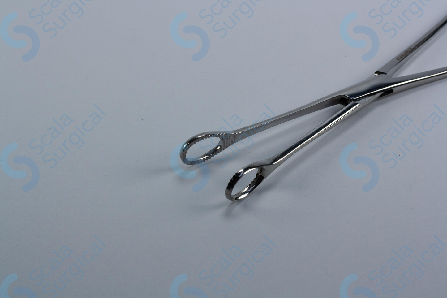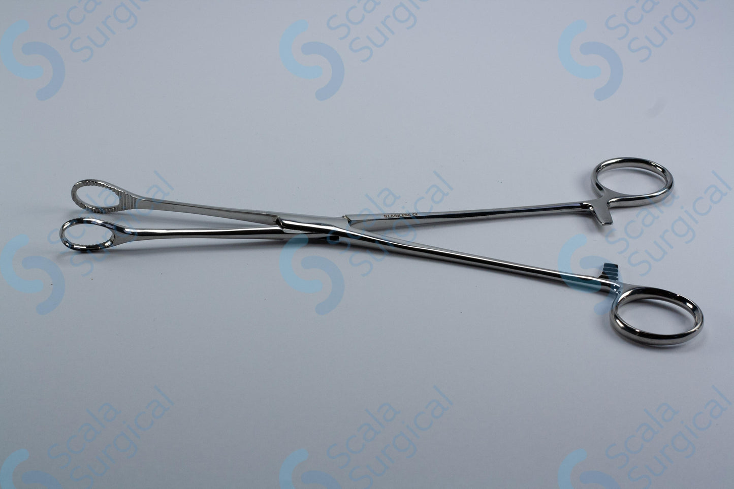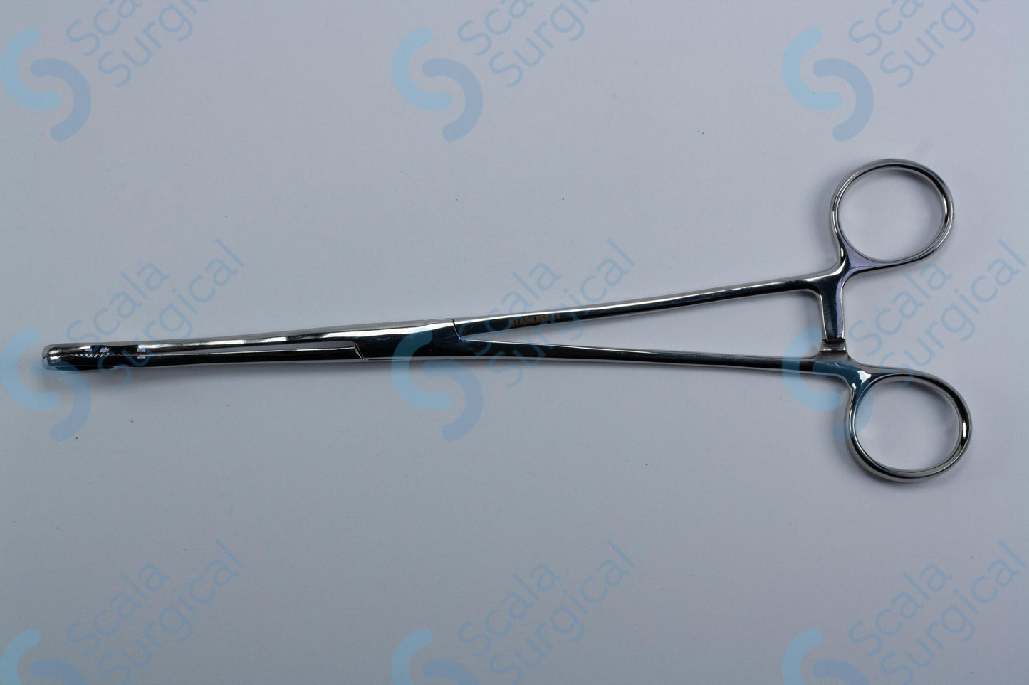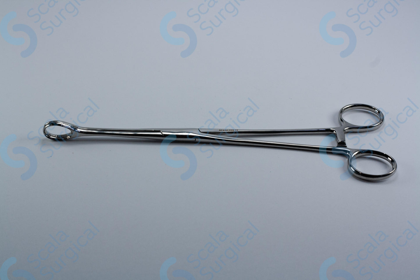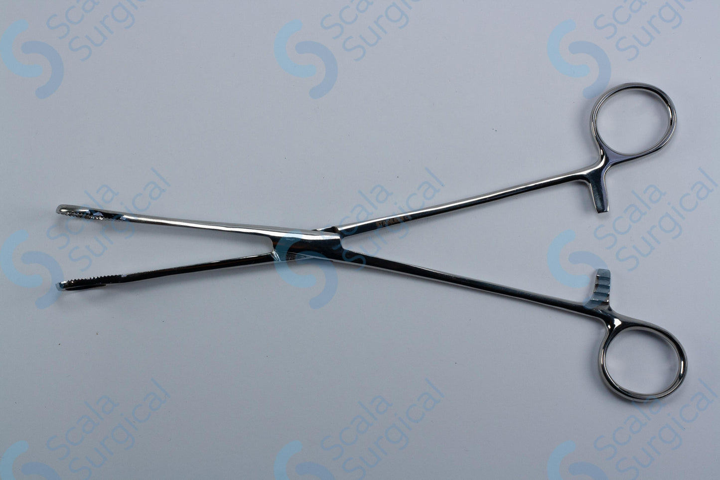 Foerster Sponge Holding Forceps are a type of surgical instrument used to hold and manipulate sponges during a surgical procedure. The serrated jaws provide a secure grip and the straight box joint provides additional stability. The 229mm (9 inch) length is designed to provide optimal reach and maneuverability during surgery.