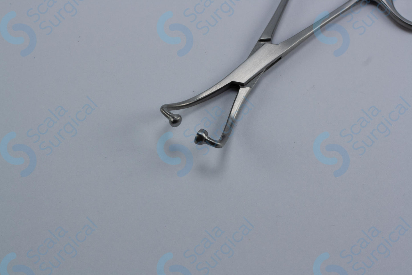 This item is used to hold towels in place during surgical procedures. The ball and socket joint allows the clip to be positioned and adjusted with minimal effort, while the non-tearing box joint prevents the towels from tearing or fraying during the procedure.