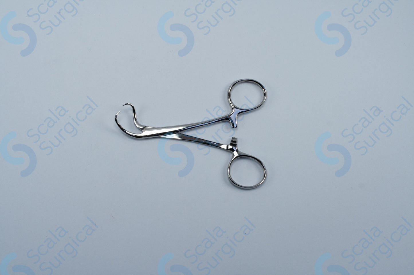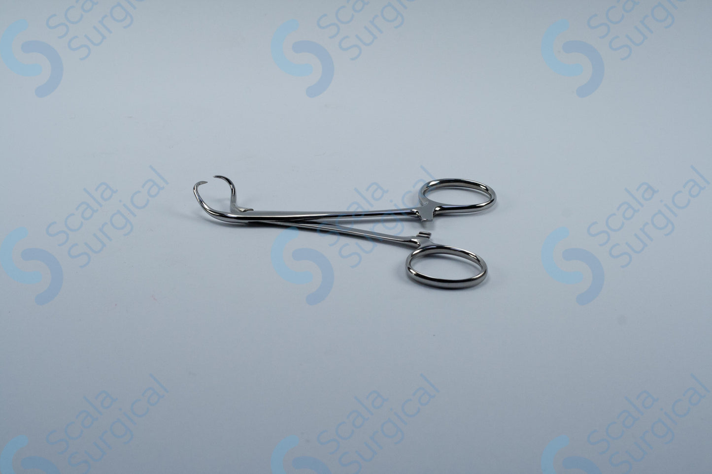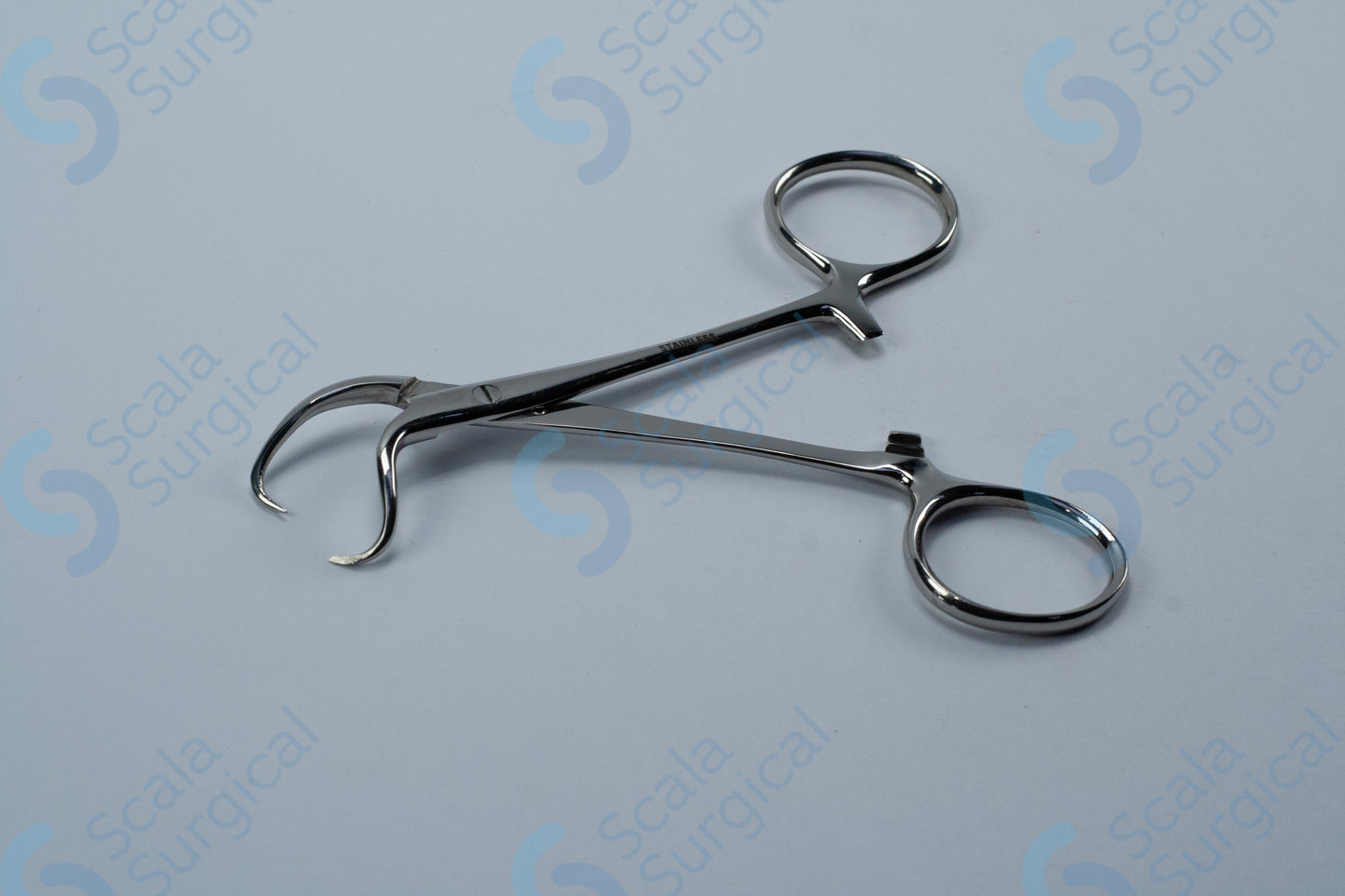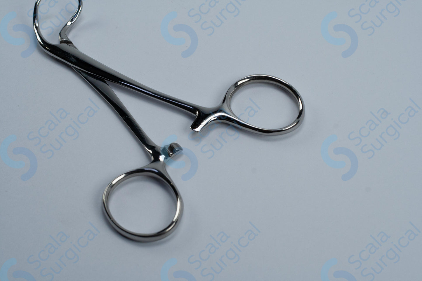 This item is used to hold towels in place during a surgical procedure. It features an angled screw joint that provides a secure grip and prevents towels from slipping. The 101.6mm (4 inch) size allows for a secure fit on most standard size towels.