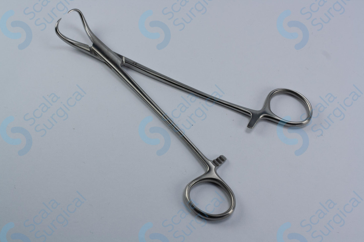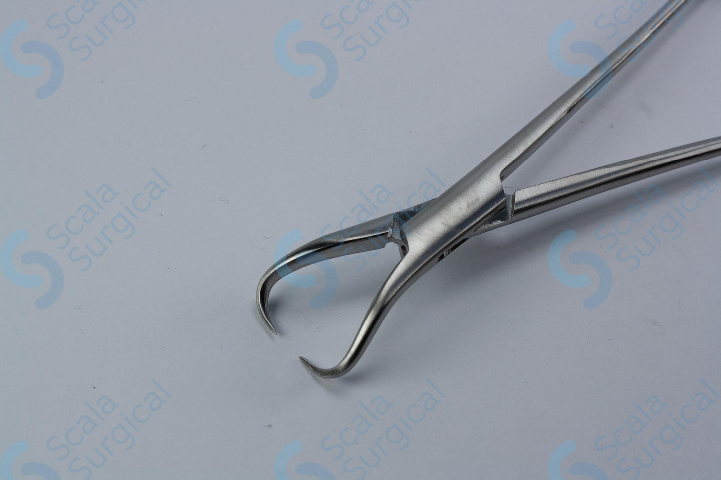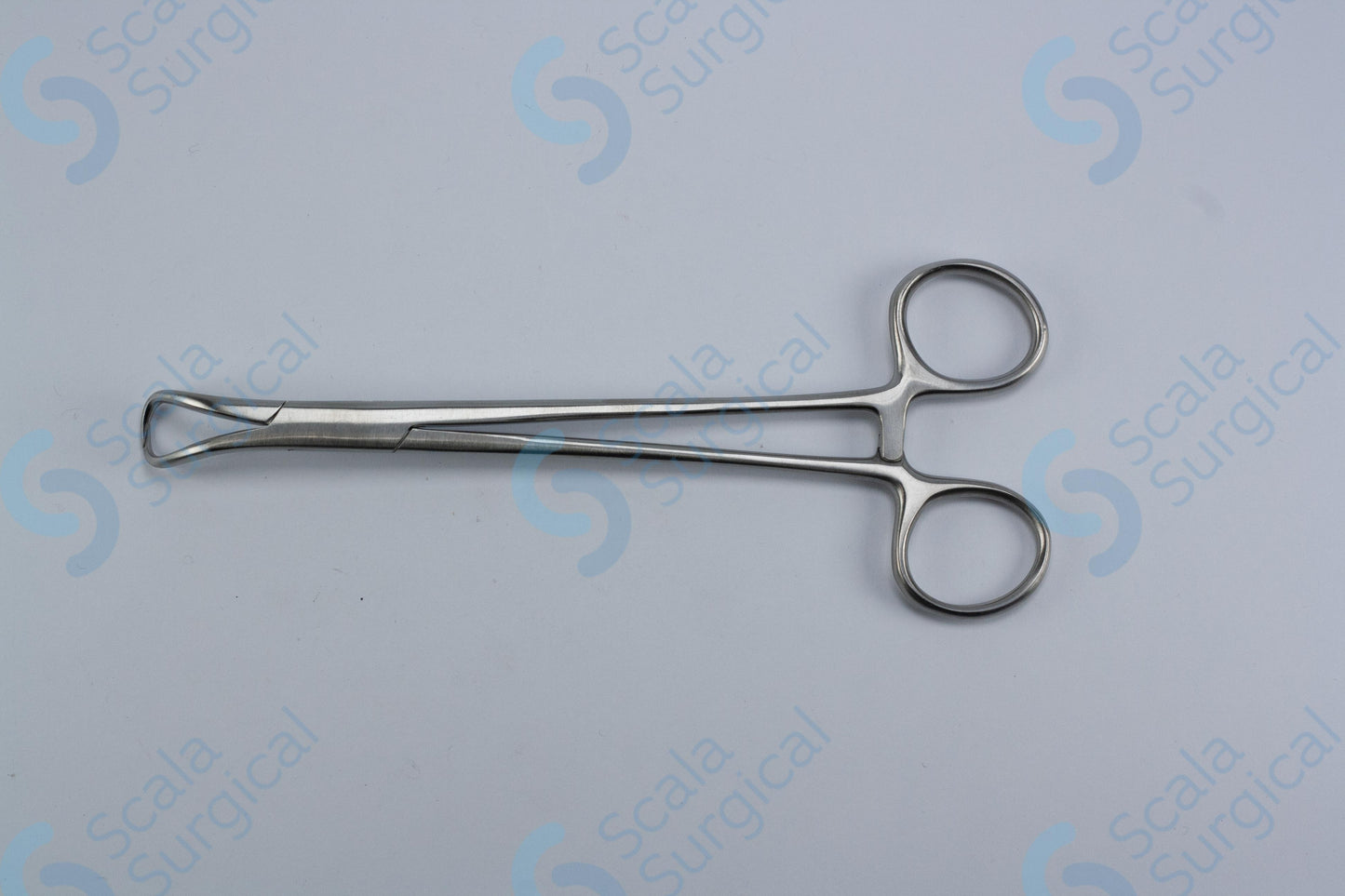 This item is used to secure a surgical drape or towel to the patient during a surgical procedure. It is designed to be easily adjustable and secure, and is made of stainless steel.