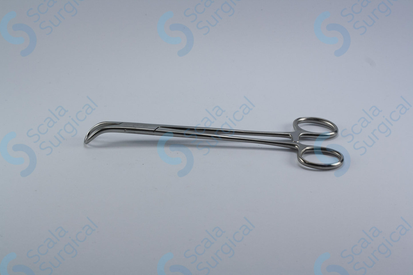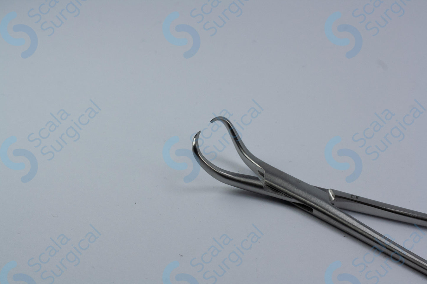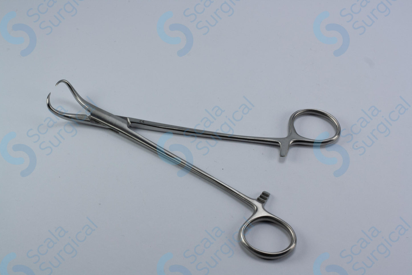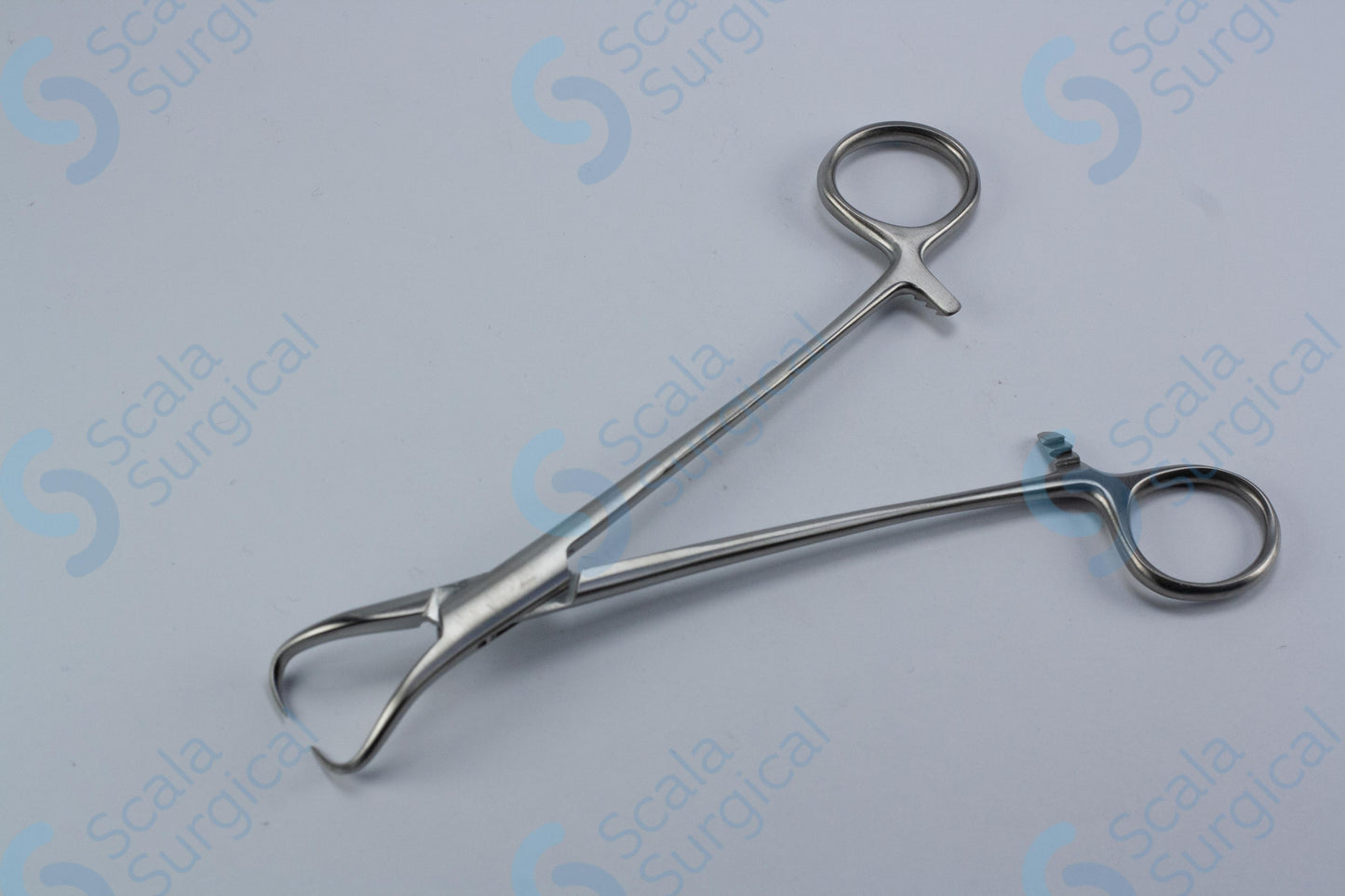 This item is used to secure a surgical drape or towel to the patient during a surgical procedure. It is designed to be easily adjustable and secure, and is made of stainless steel.