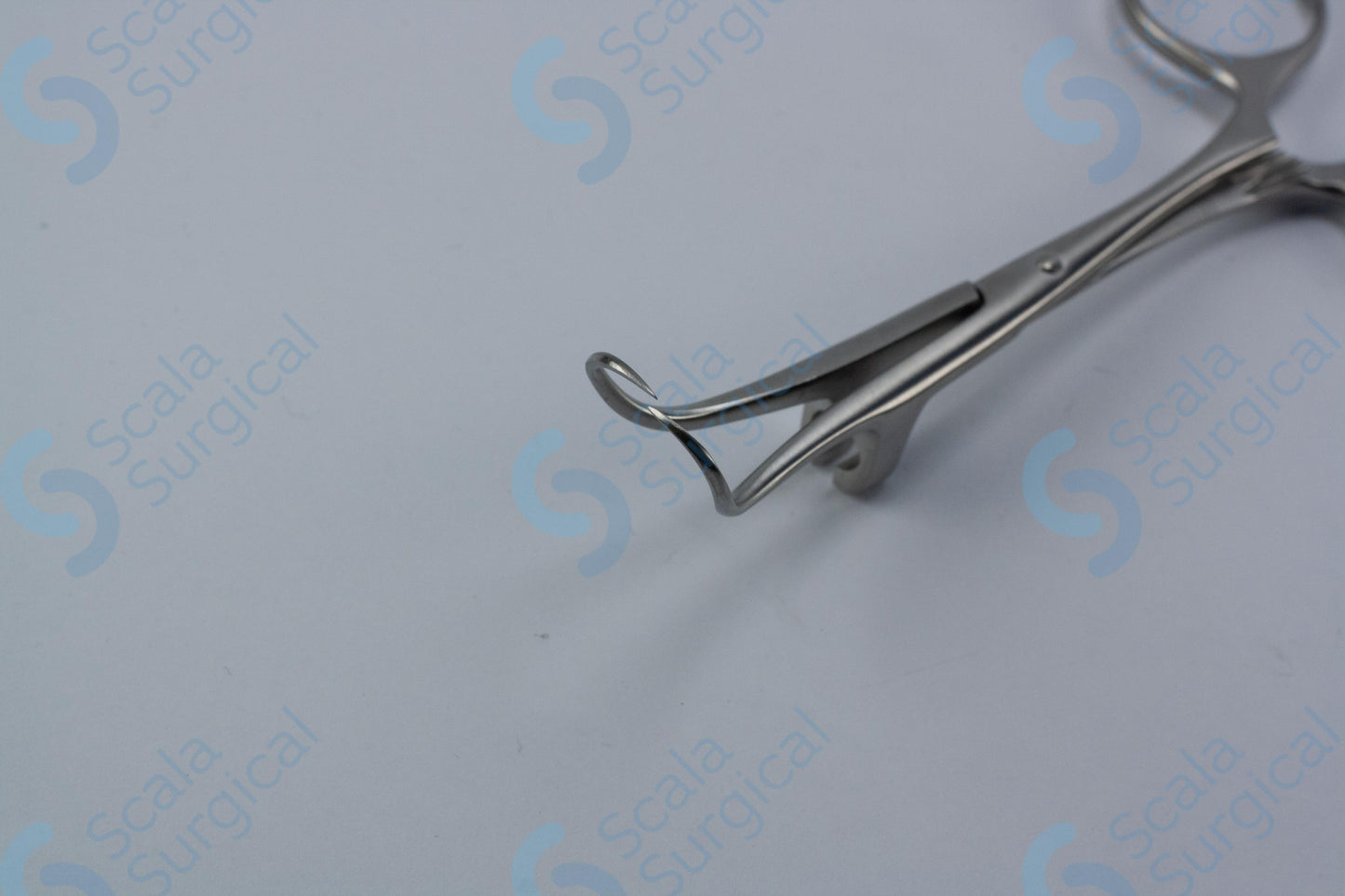The Robin Anchoring Forceps Sharp Prongs Screw Joint is used to hold tissue in place during surgery. The clip diameter of 5mm and length of 140mm (5.5 inch) allow the forceps to securely grip the tissue. It can be used for a variety of surgical procedures, including abdominal, laparoscopic, and vascular surgeries.