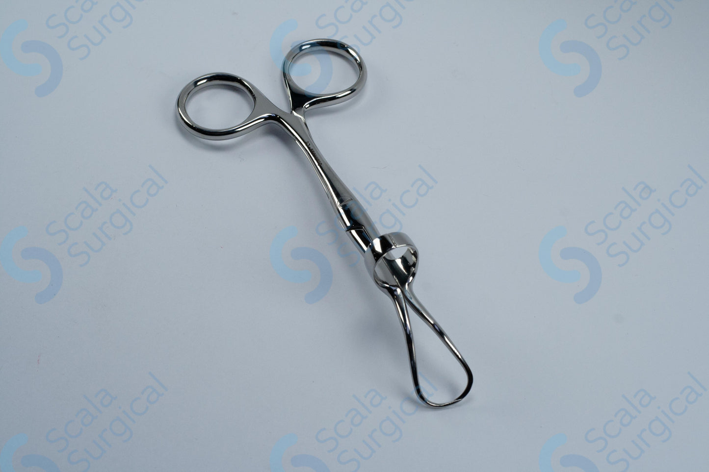 These forceps are used to secure surgical sutures, such as skin sutures, to tissue. The sharp prongs are used to puncture the tissue, and the screw joint allows for a secure grip on the suture. The clip diameter is 13mm, and the overall length is 127mm (5 inches).