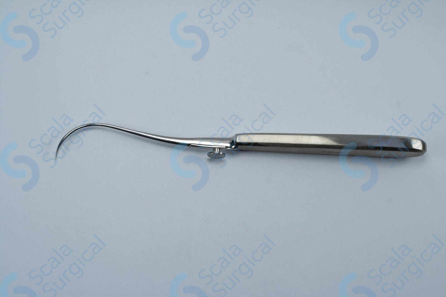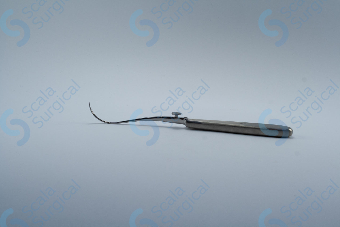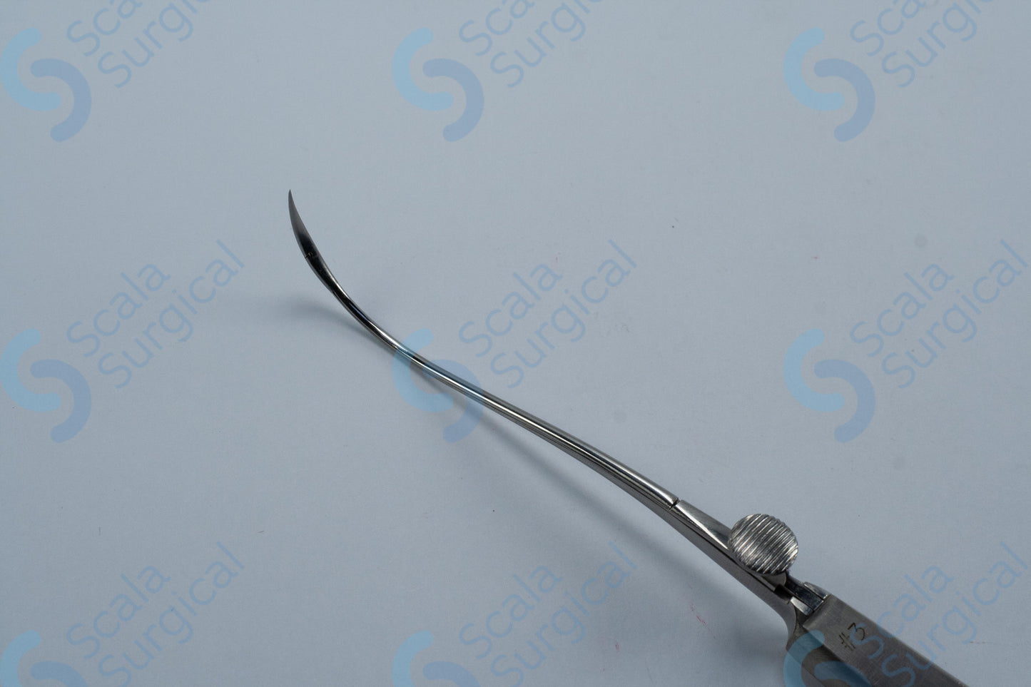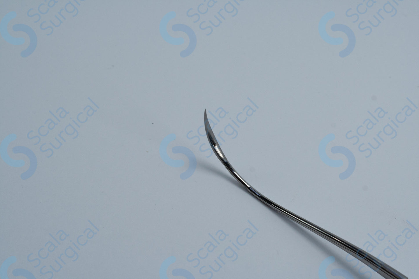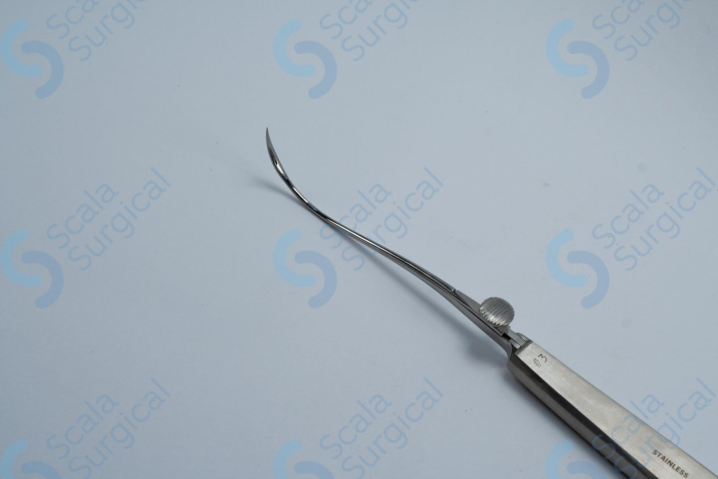 The Reverdin Needle Holder is a surgical instrument used to hold and manipulate suturing needles during suturing procedures. It is designed with a needle inside the handle, which helps to reduce the risk of needle sticks and other injuries. The needle is held securely by a locking mechanism, allowing for precise and secure manipulation.