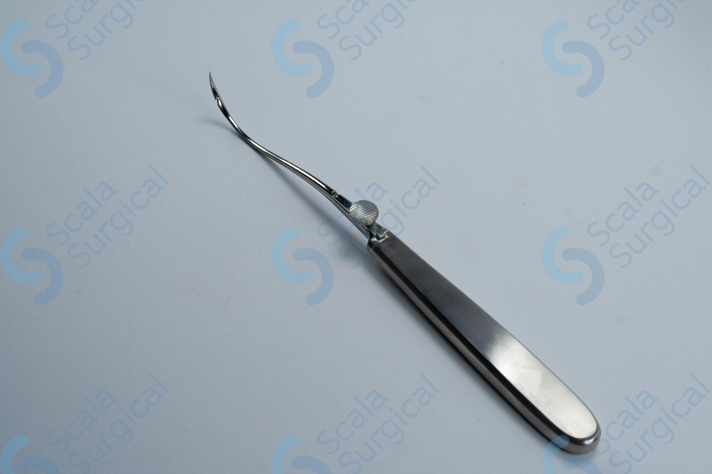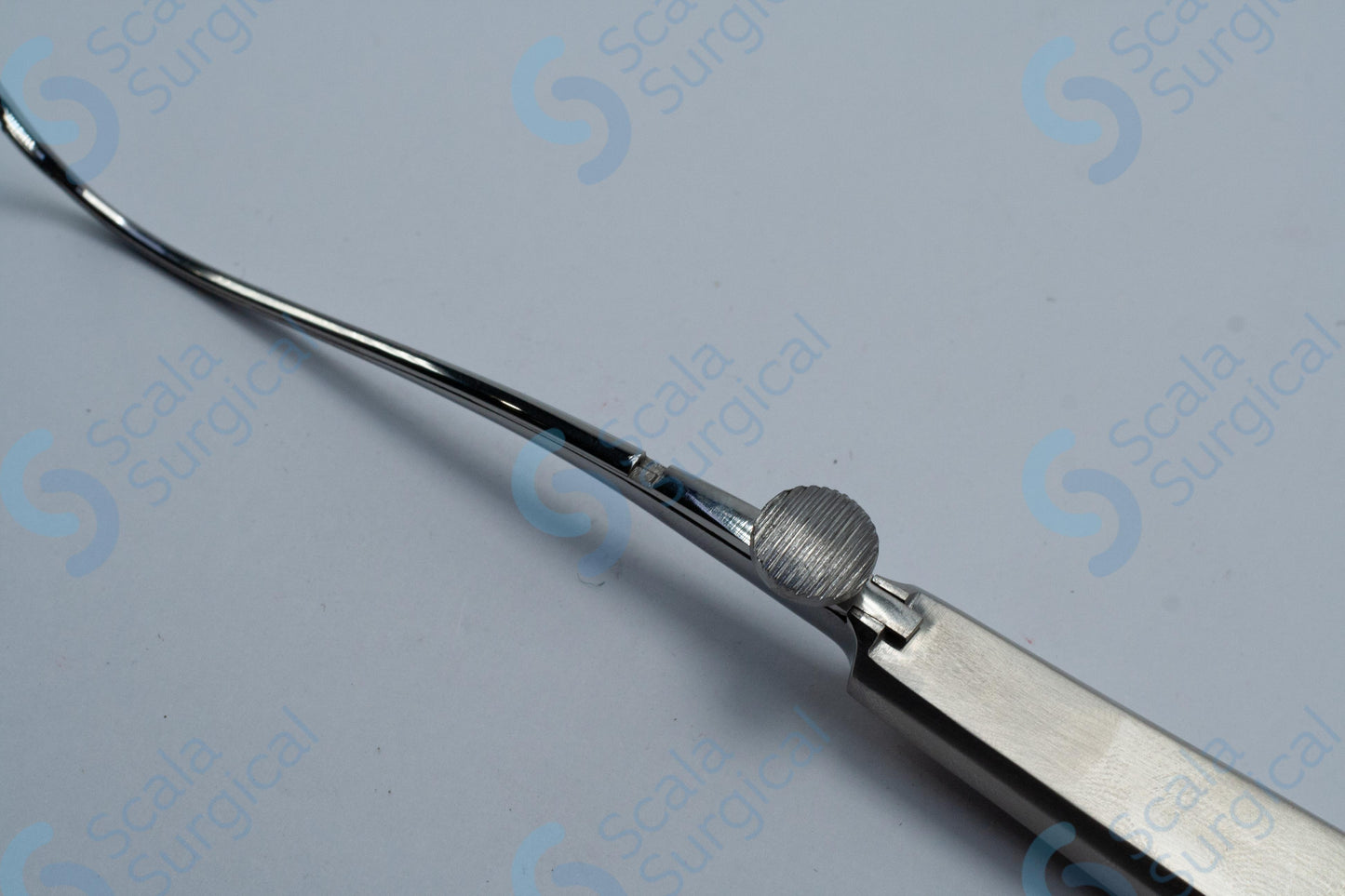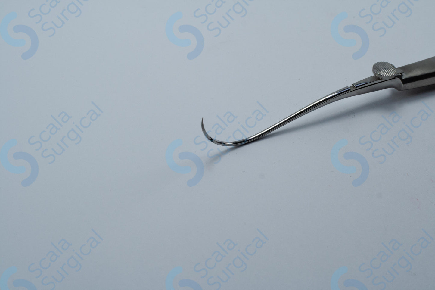 The Reverdin Needle Holder is a surgical instrument used to hold and manipulate needles during suturing procedures. It features a needle inside the handle, which is used to grip and pull the thread or suture material through the tissue. The needle holder is also used to tie knots in the suture.