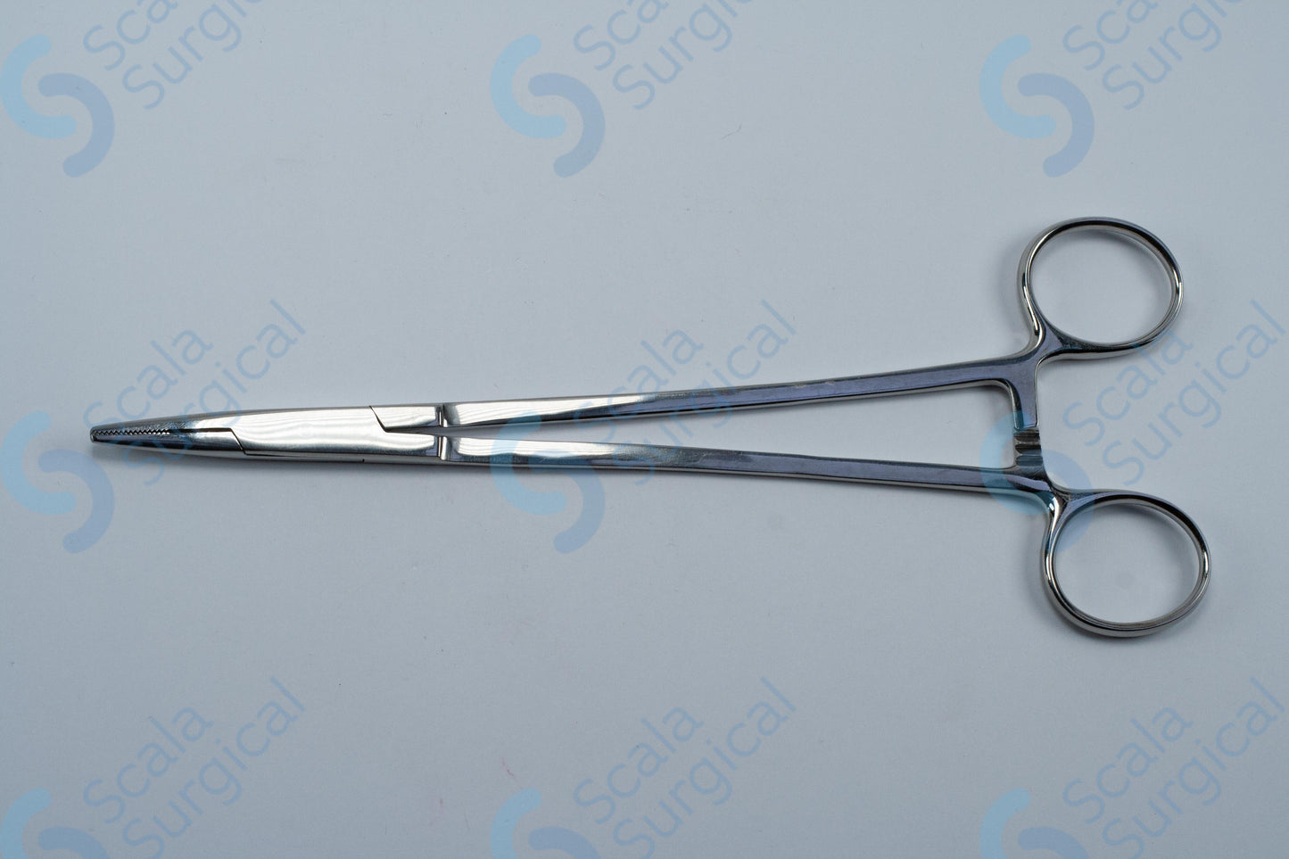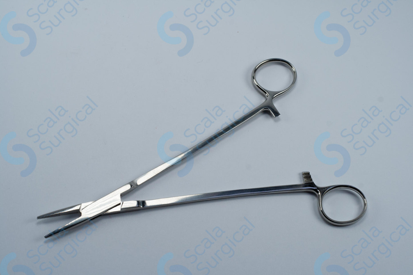 A Blalock Needle Holder is a surgical instrument used to hold and manipulate sutures, needles, and other small items during surgical procedures. It has half serrated jaws which provide a secure grip on the item being held. The straight 184.15mm (7? inch) design allows for precise and accurate manipulation.