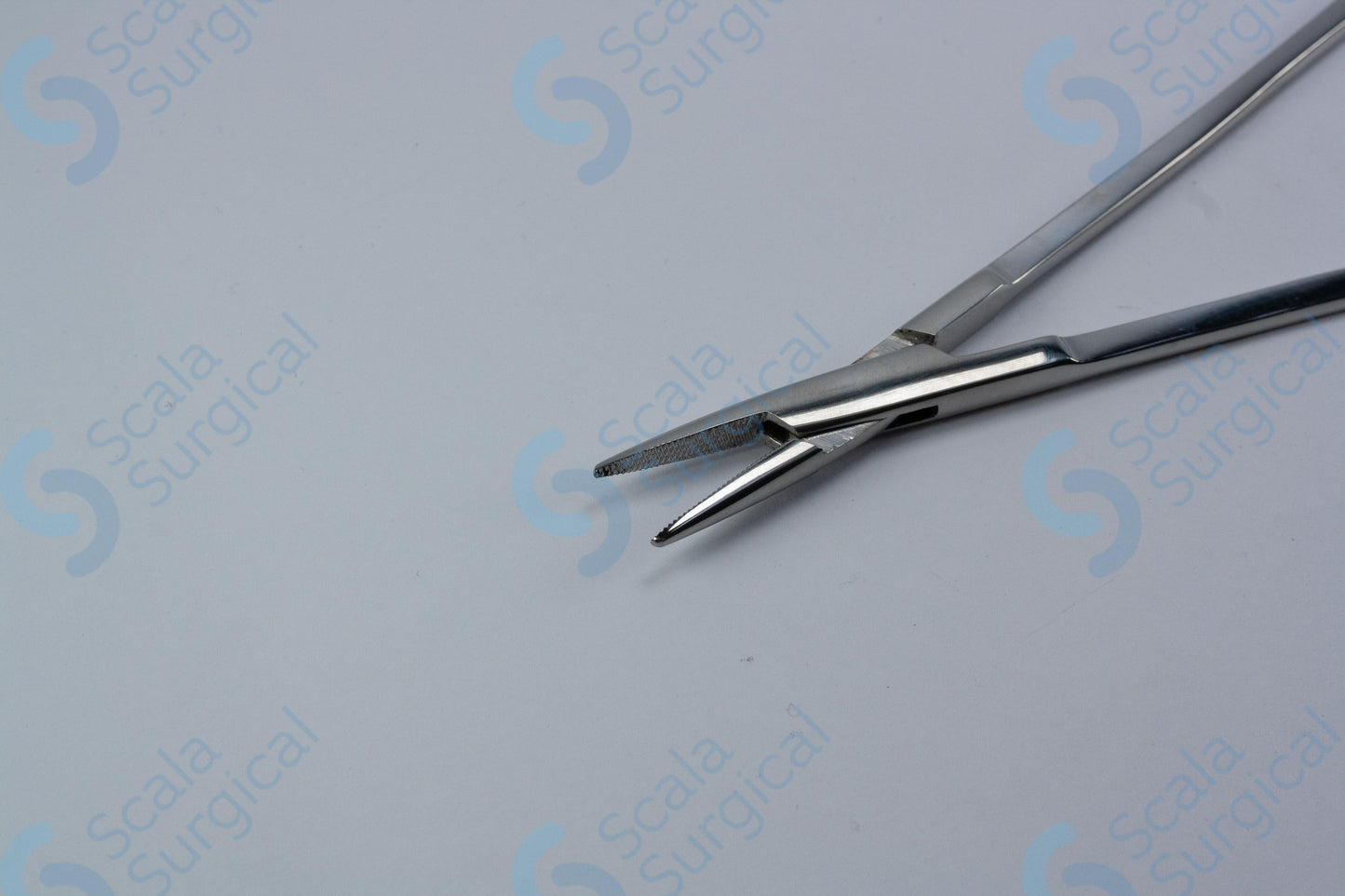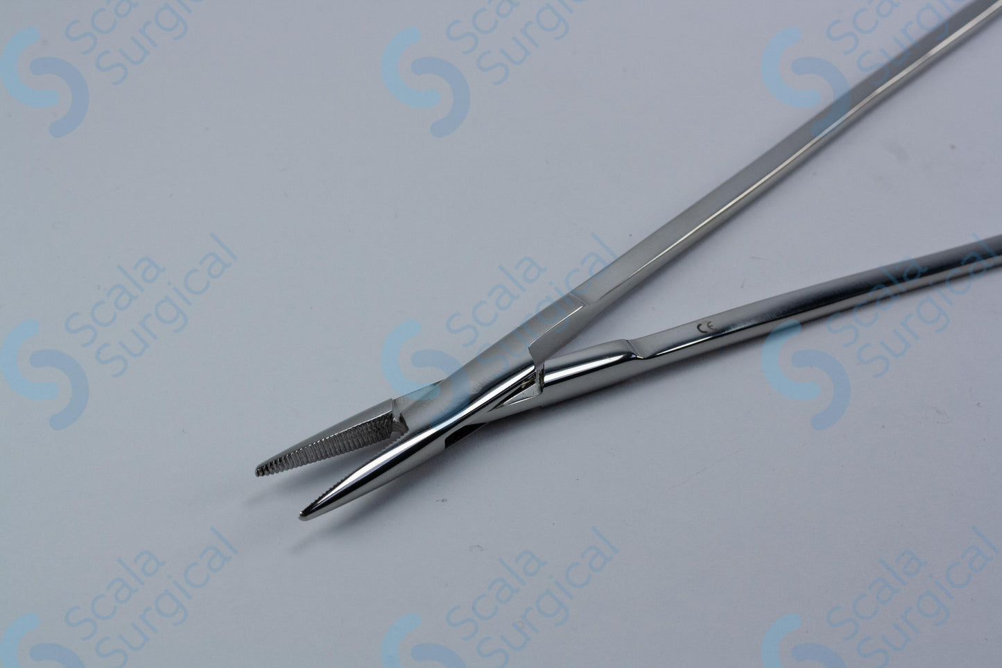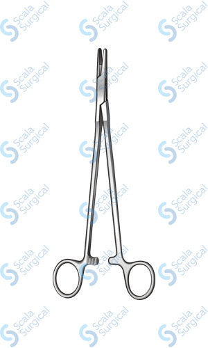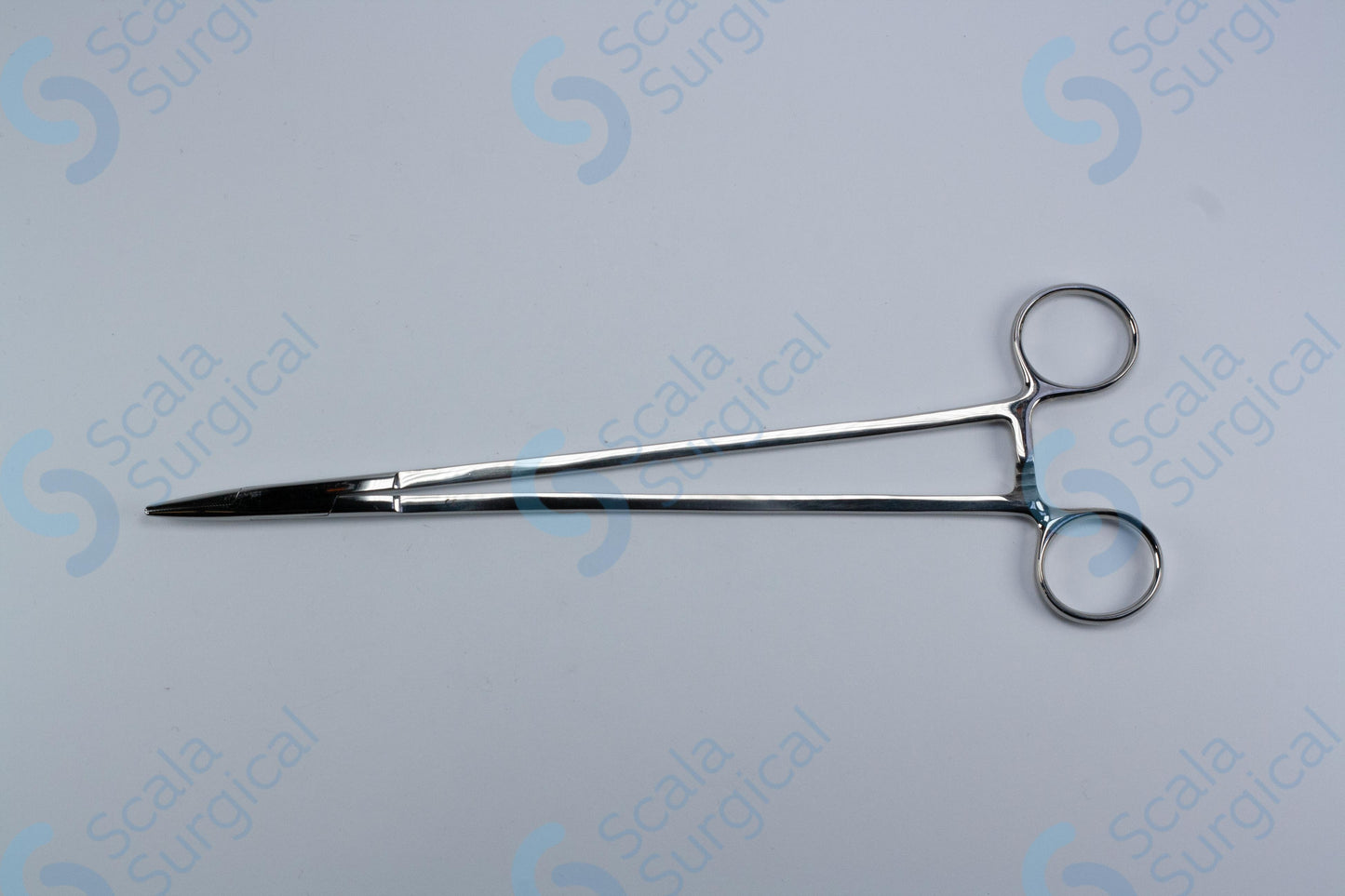 The Blalock Needle Holder Half Serrated Jaws Straight (266.7mm) (10? inch) is a surgical instrument used for grasping and manipulating sutures during suturing and surgical procedures. It is commonly used for closing wounds, such as those created during laparoscopic and endoscopic surgeries. It is also used for holding and manipulating needles, allowing surgeons to make precise sutures.