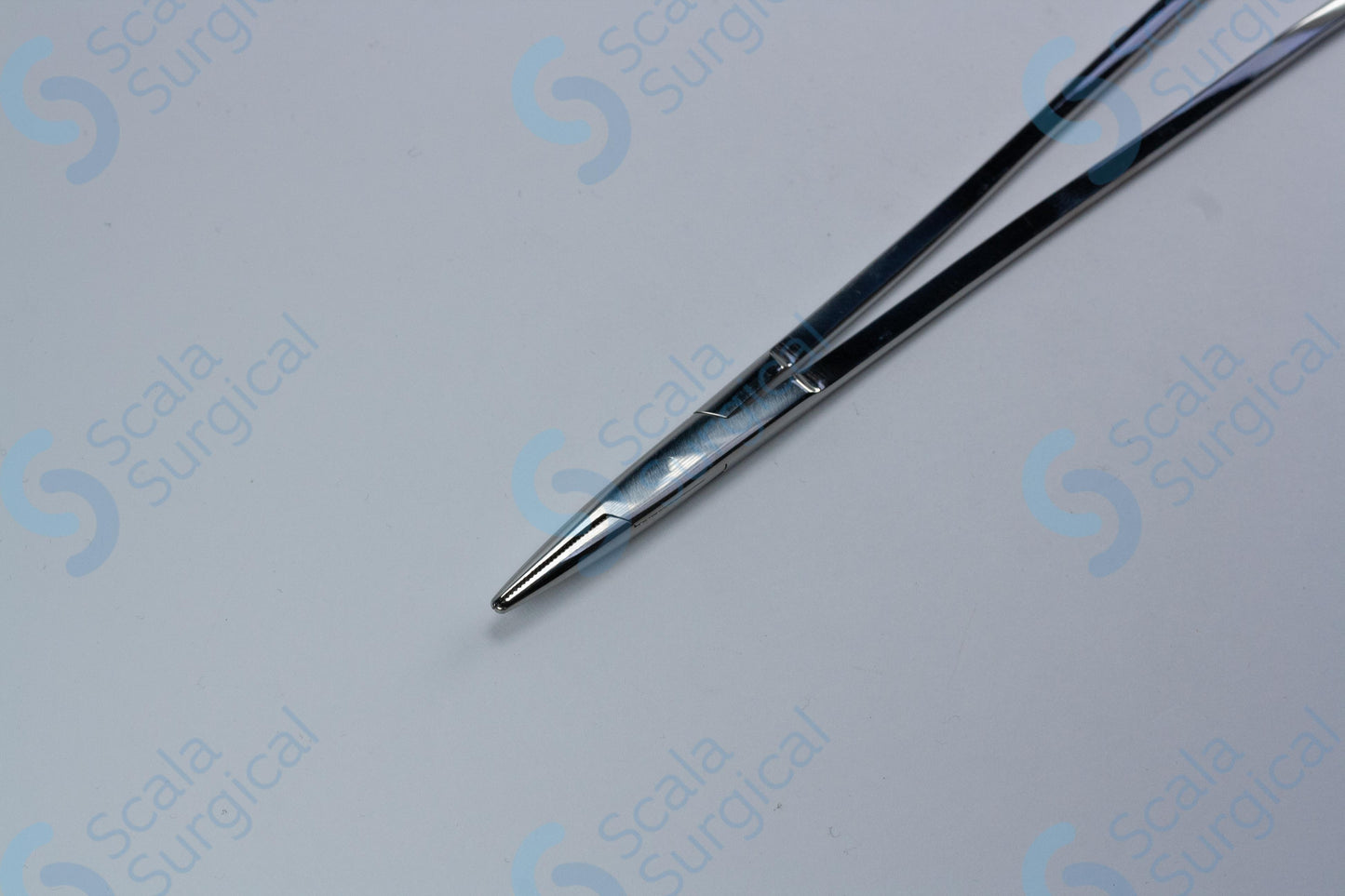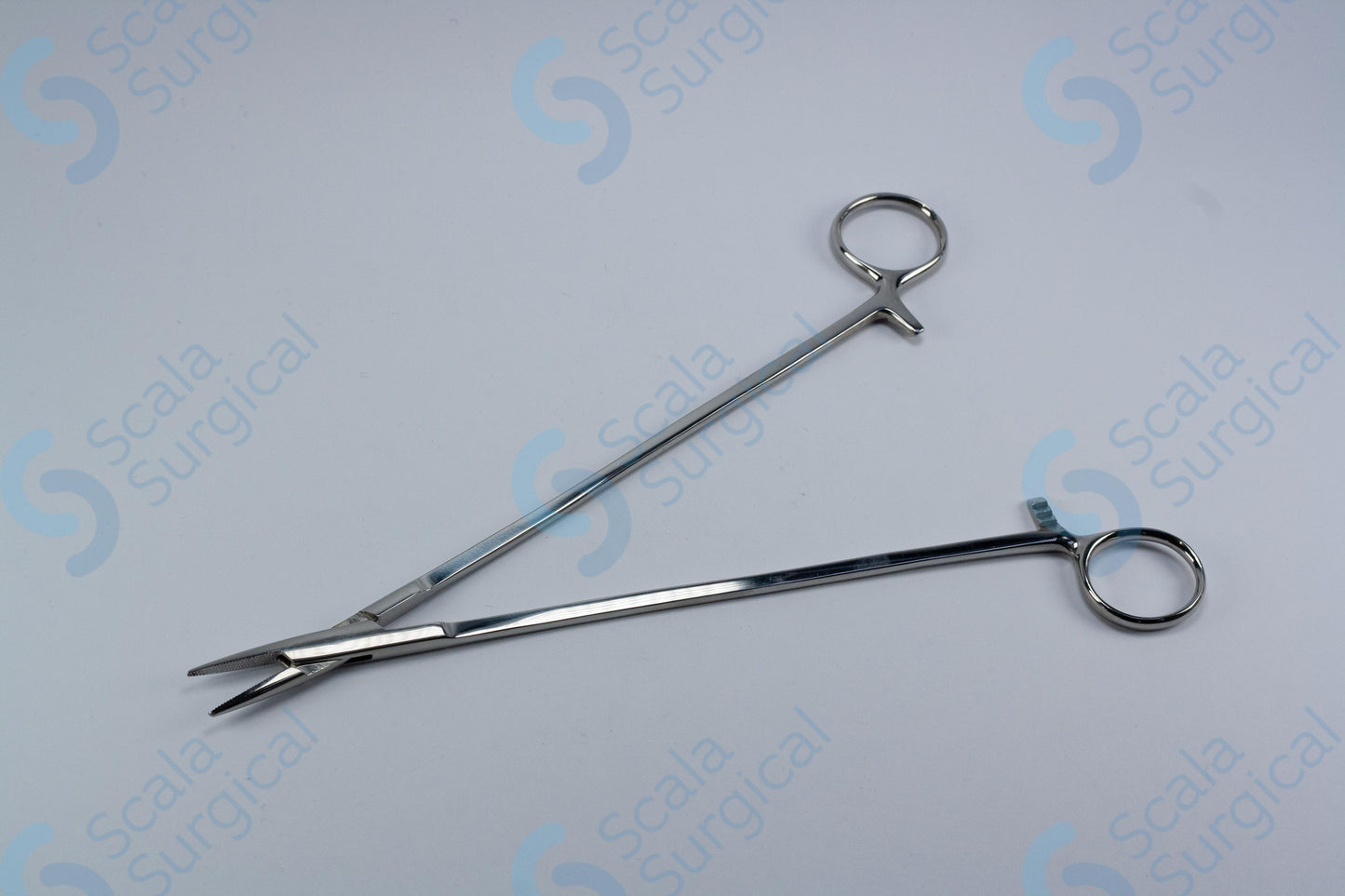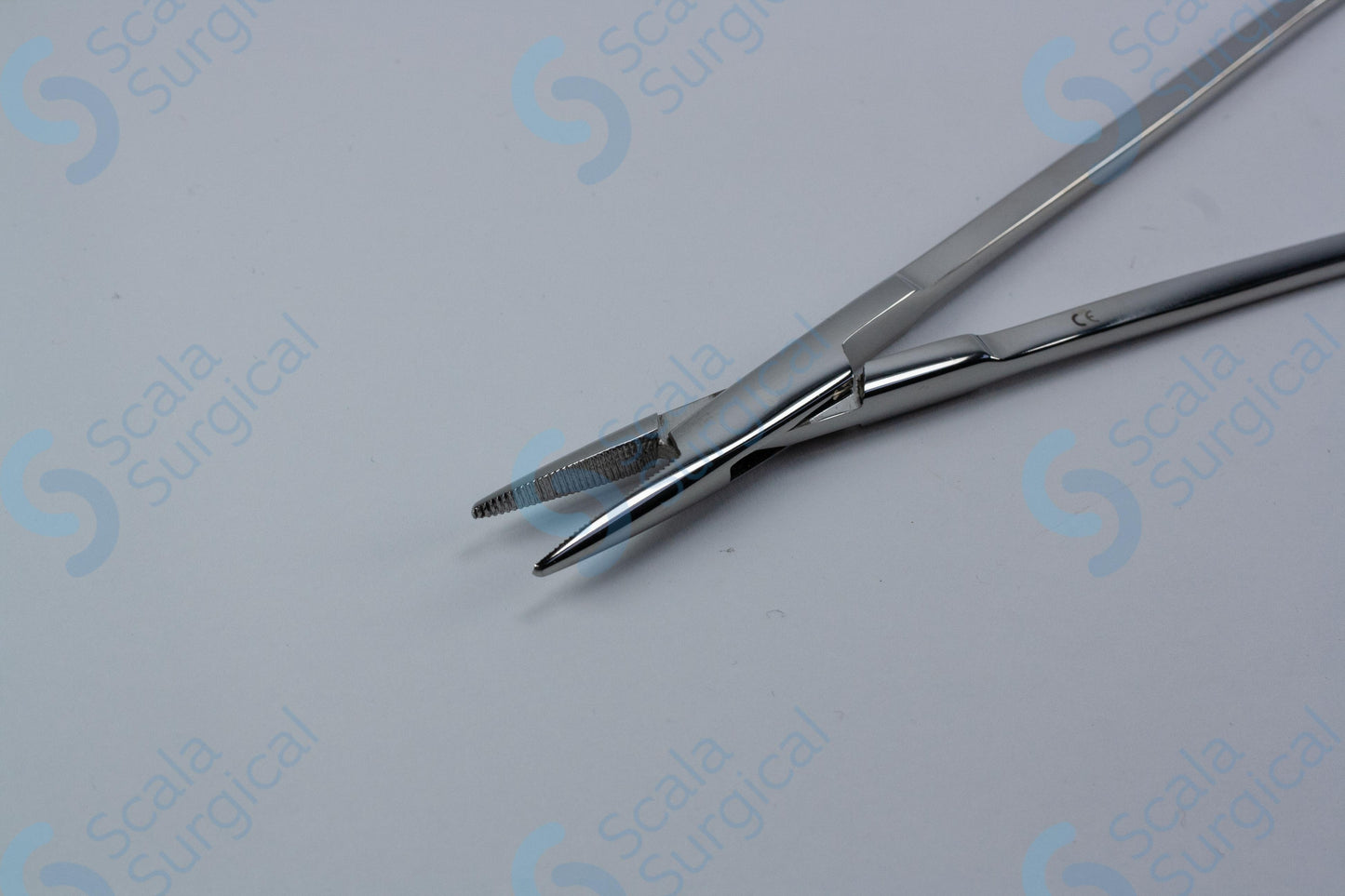 The Blalock Needle Holder Half Serrated Jaws Straight (266.7mm) (10? inch) is a surgical instrument used for grasping and manipulating sutures during suturing and surgical procedures. It is commonly used for closing wounds, such as those created during laparoscopic and endoscopic surgeries. It is also used for holding and manipulating needles, allowing surgeons to make precise sutures.