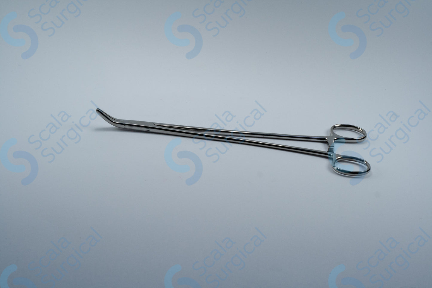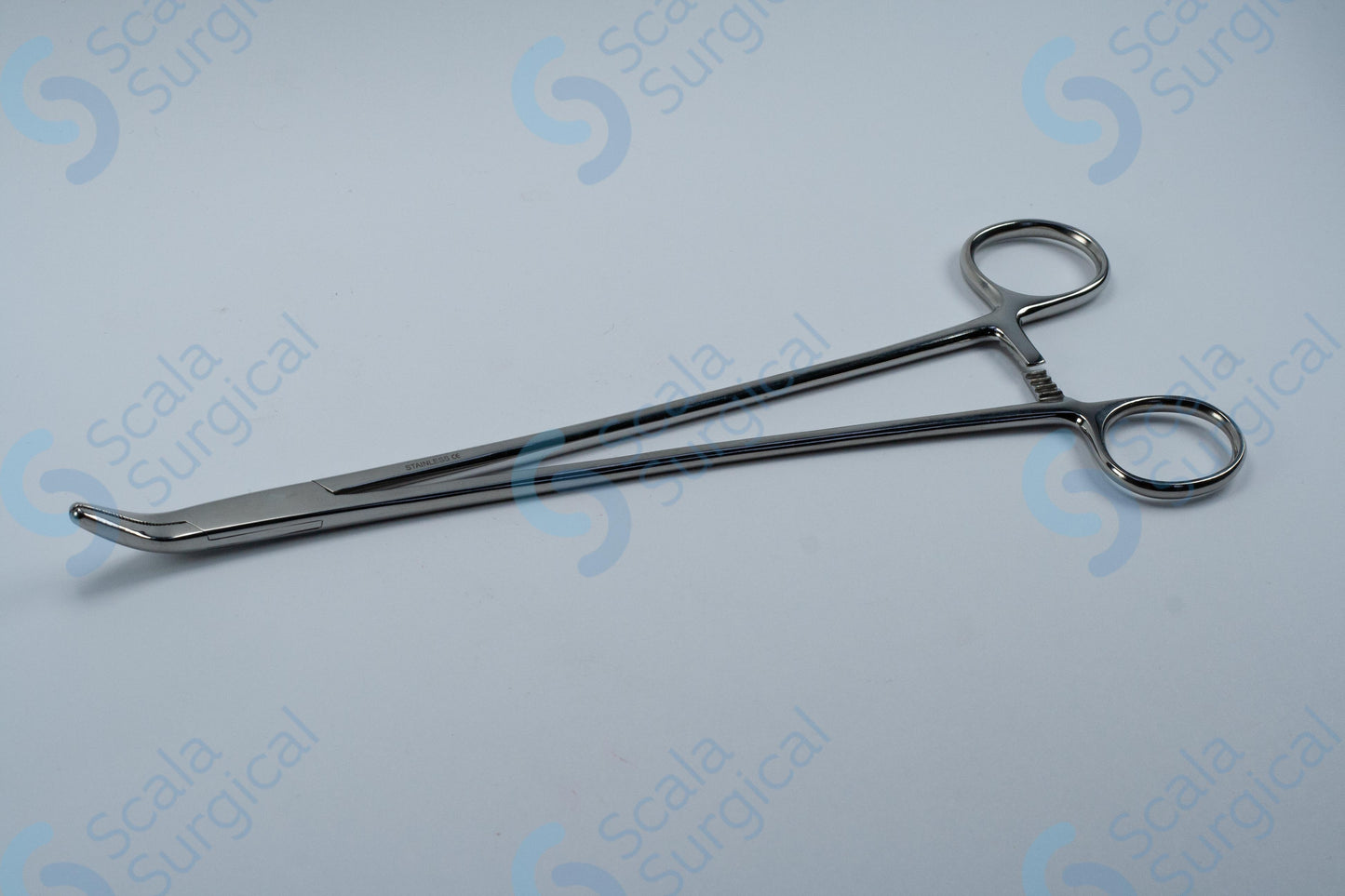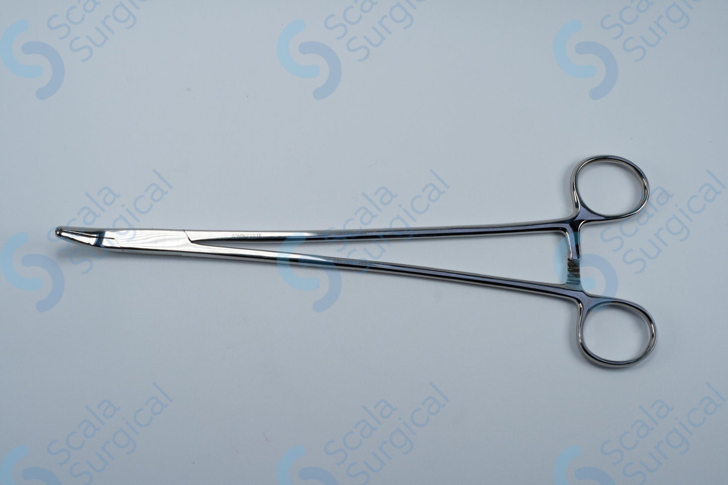 The Finochietto Needle Holder Box Joint (254mm) (10 inch) is a tool used by surgeons to hold and manipulate suture needles during surgical procedures. It has a box-joint design that provides a secure grip on the needle, allowing the surgeon to easily maneuver the needle through tissue. The length of the needle holder also allows for greater precision and control when stitching.