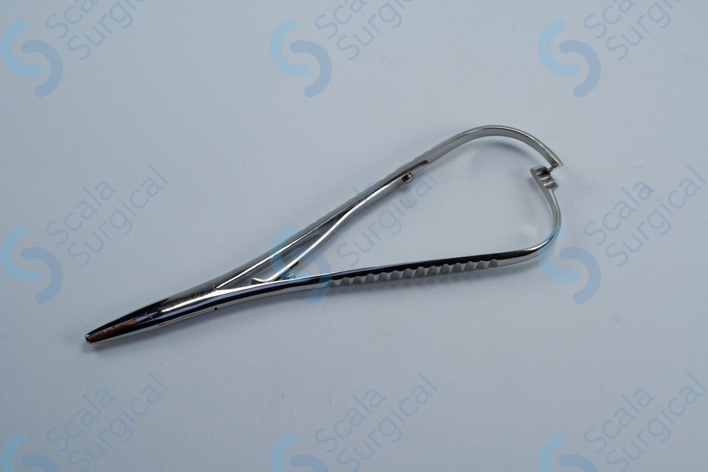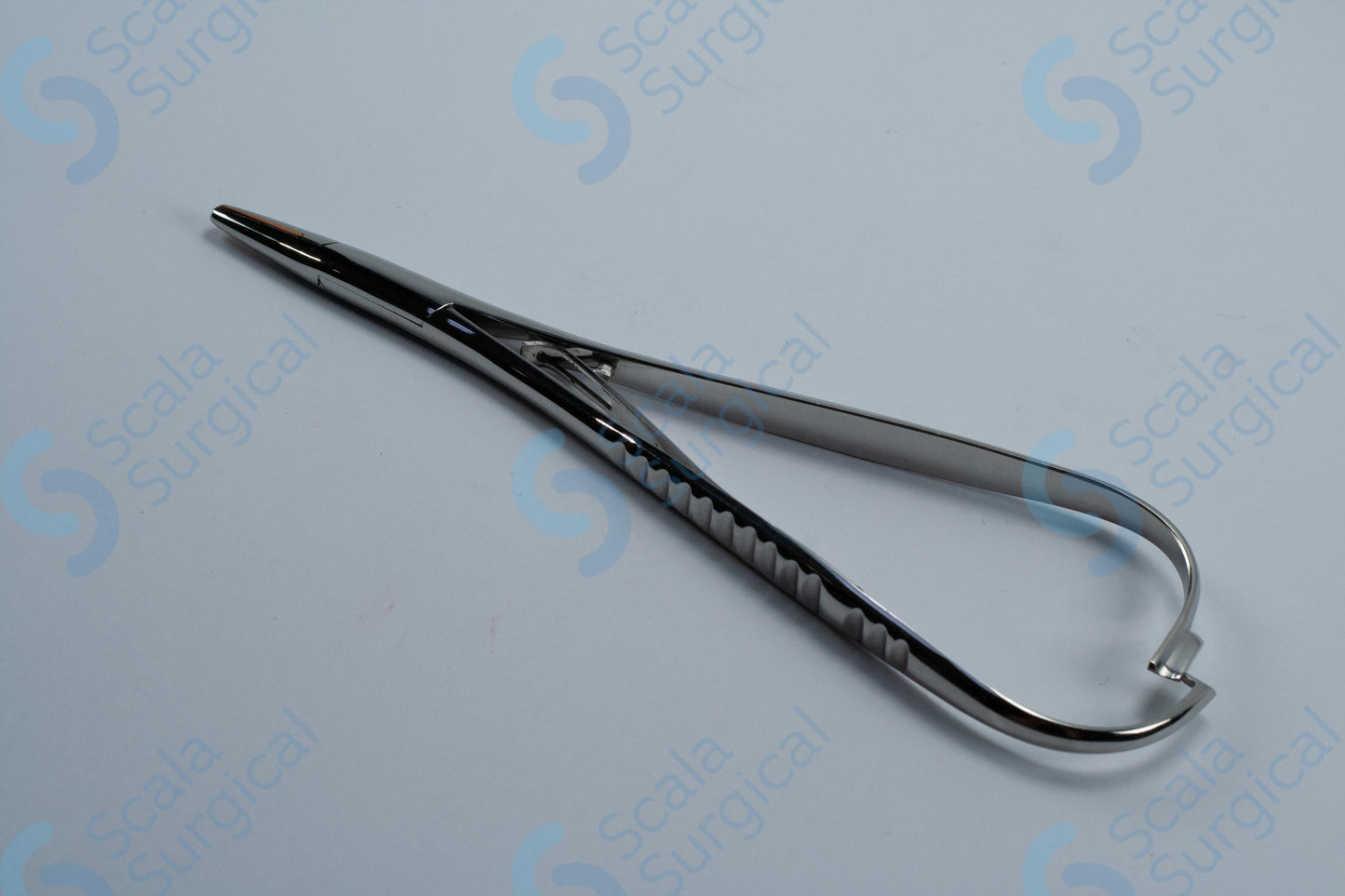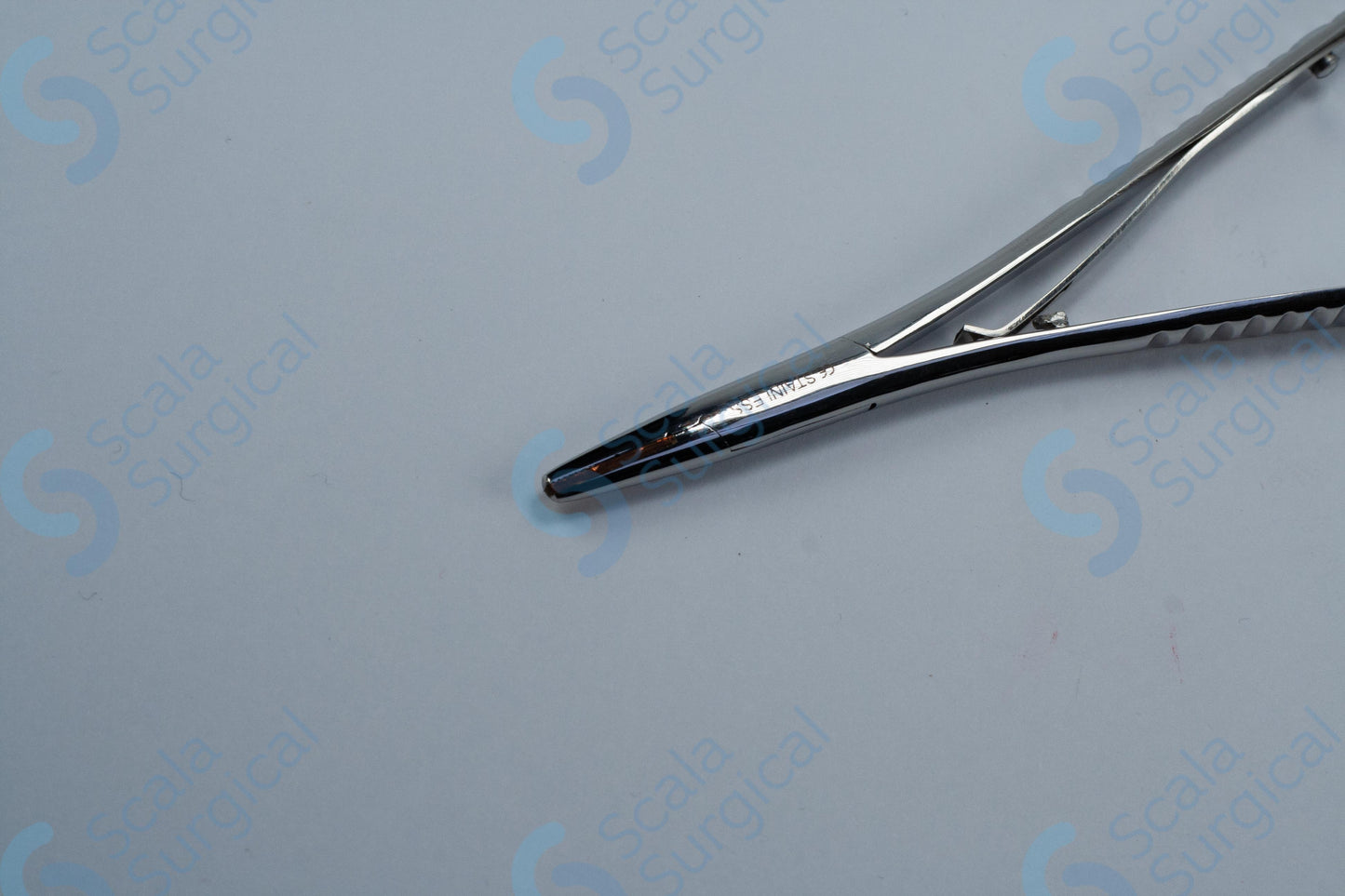 A Macphail Needle Holder Copper Lined Jaws Box Joint (152.4mm) (6 inch) is a surgical instrument used to hold and manipulate suturing needles. It is used to help close wounds, join tissues, and perform other surgical procedures.