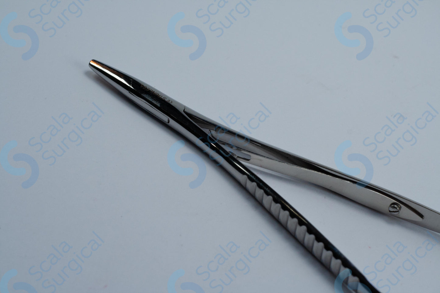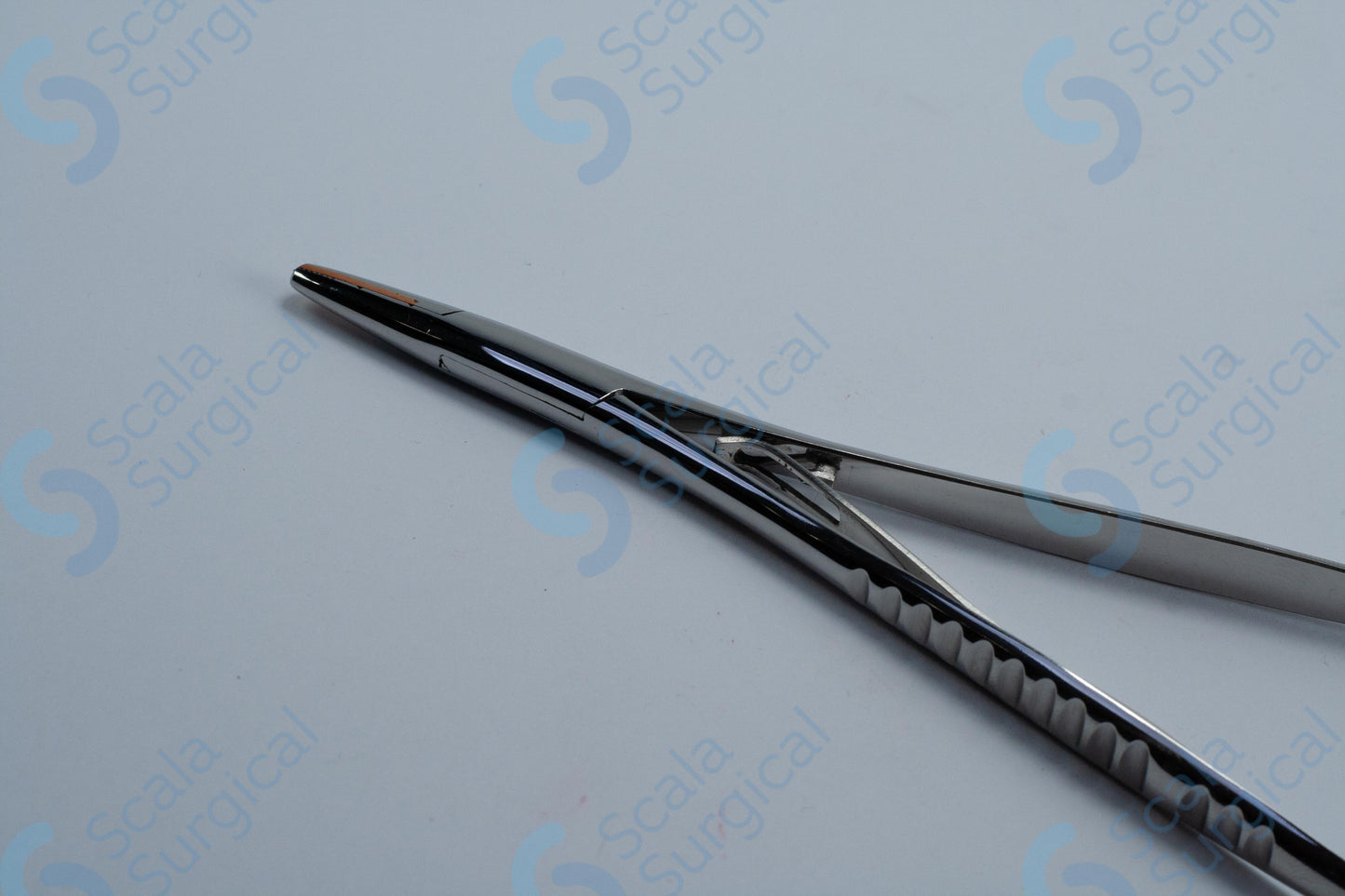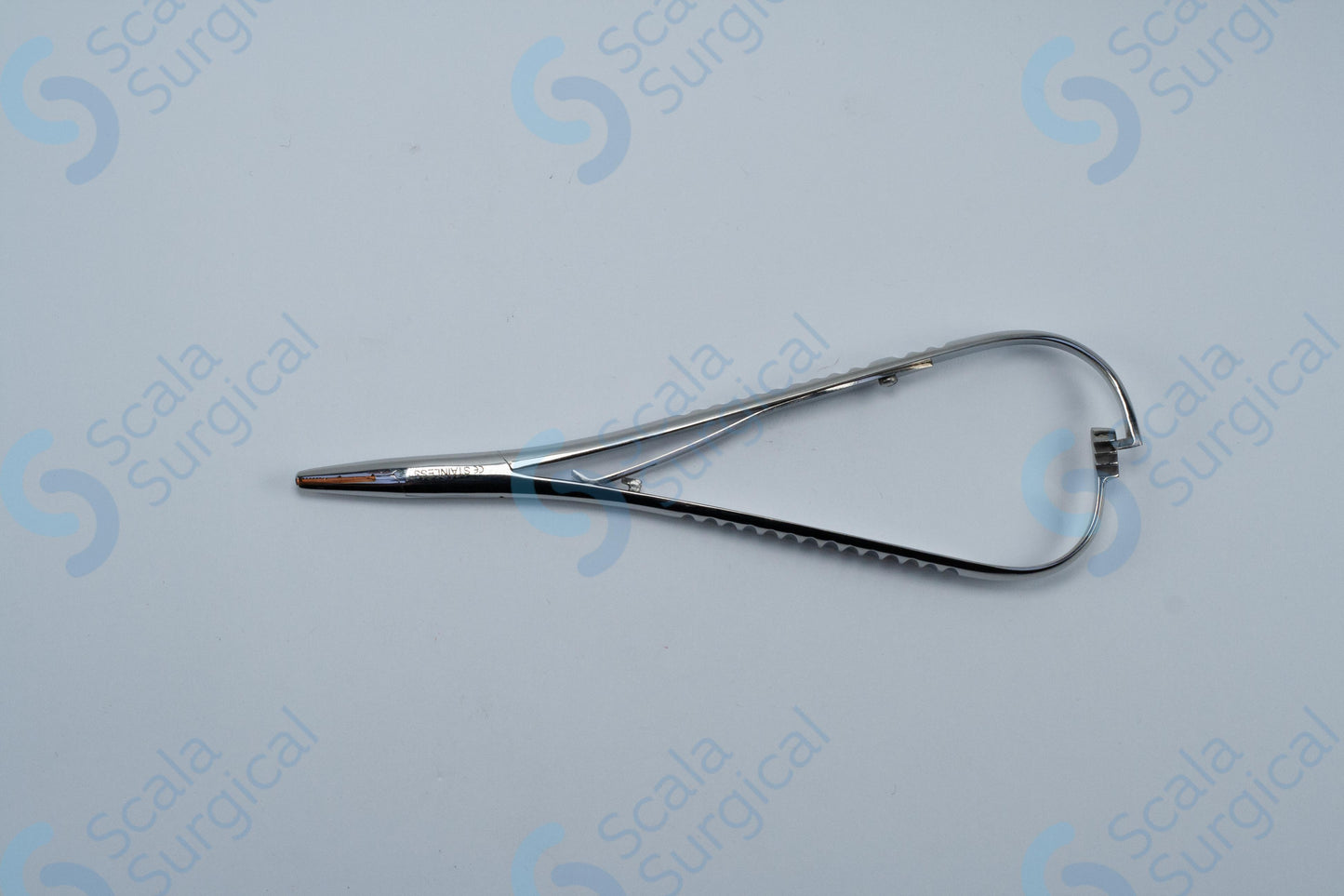 A Macphail Needle Holder Copper Lined Jaws Box Joint (152.4mm) (6 inch) is a surgical instrument used to hold and manipulate suturing needles. It is used to help close wounds, join tissues, and perform other surgical procedures.