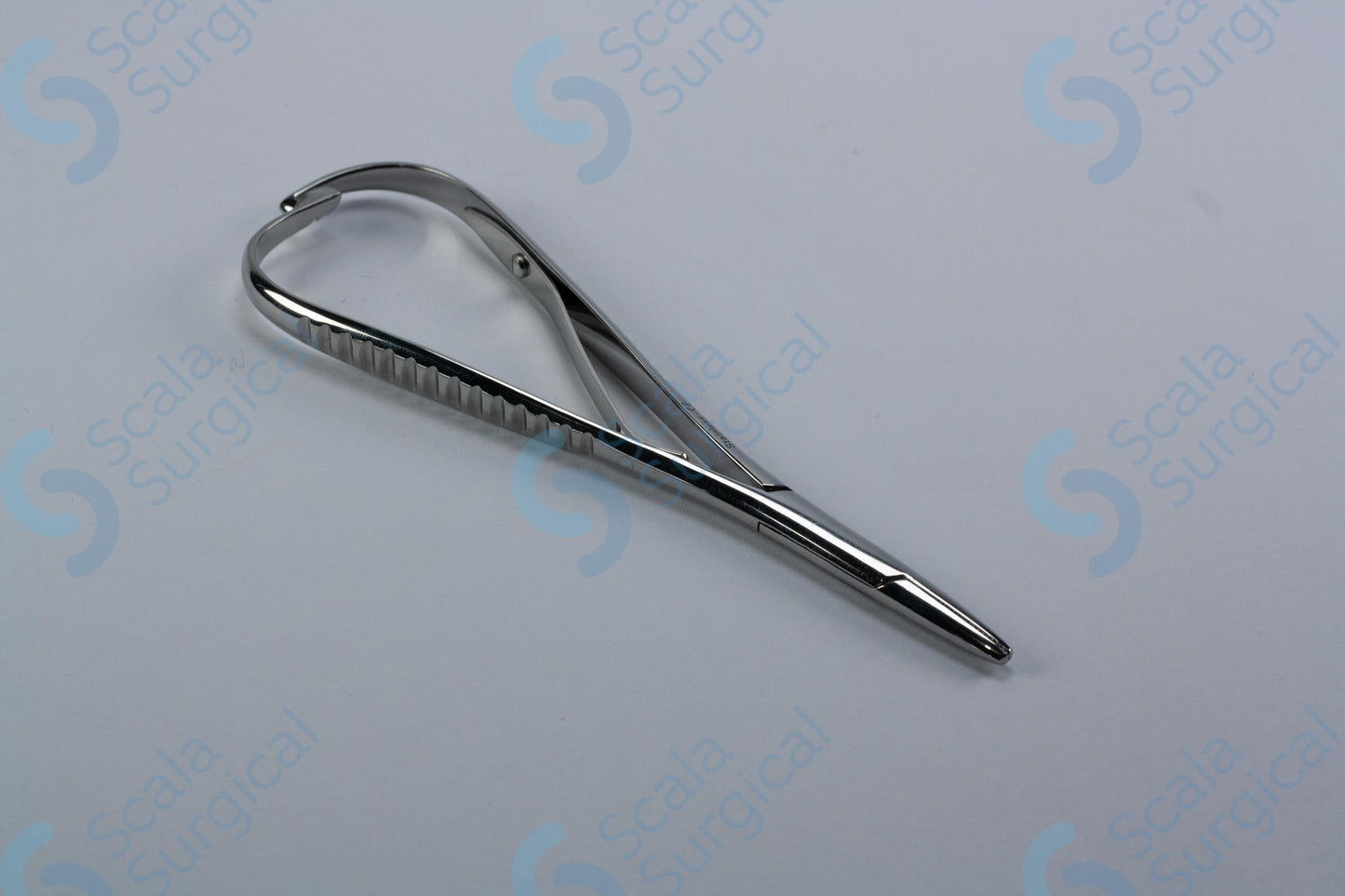 A Mathieu Needle Holder Box Joint is a surgical instrument used for holding and manipulating suturing needles during suturing and surgical procedures. It is typically used for holding and manipulating fine needles and sutures, such as those used in microsurgery. The box joint design of the Mathieu needle holder provides a secure grip on the needle, allowing for precise control during suturing.
