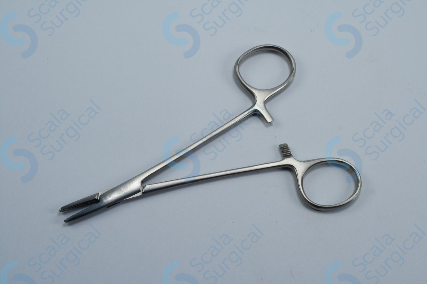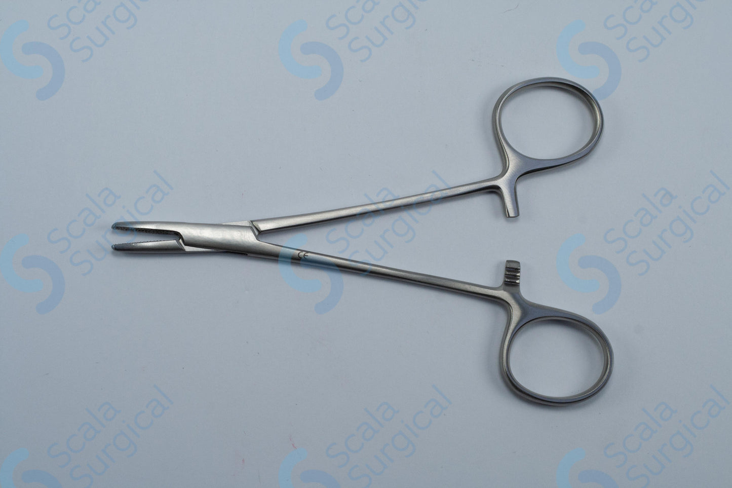 A Mayo Hegar Needle Holder Box Joint (127mm) (5 inch) is a surgical instrument used to hold a needle for suturing. It is designed with a locking box joint for a secure grip and can be used for a variety of surgical tasks.