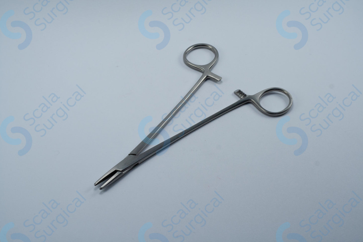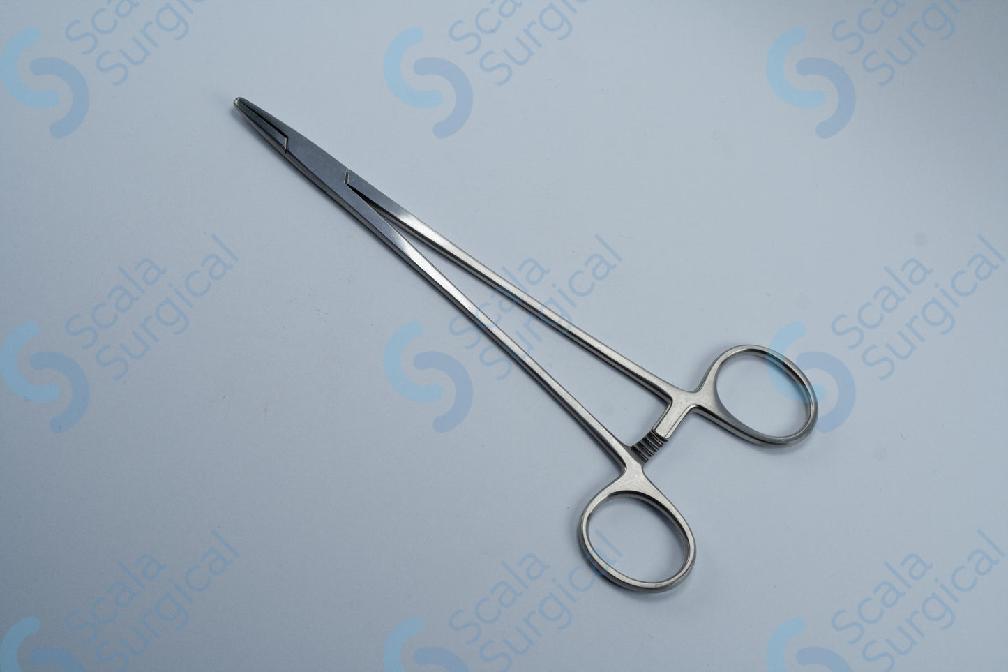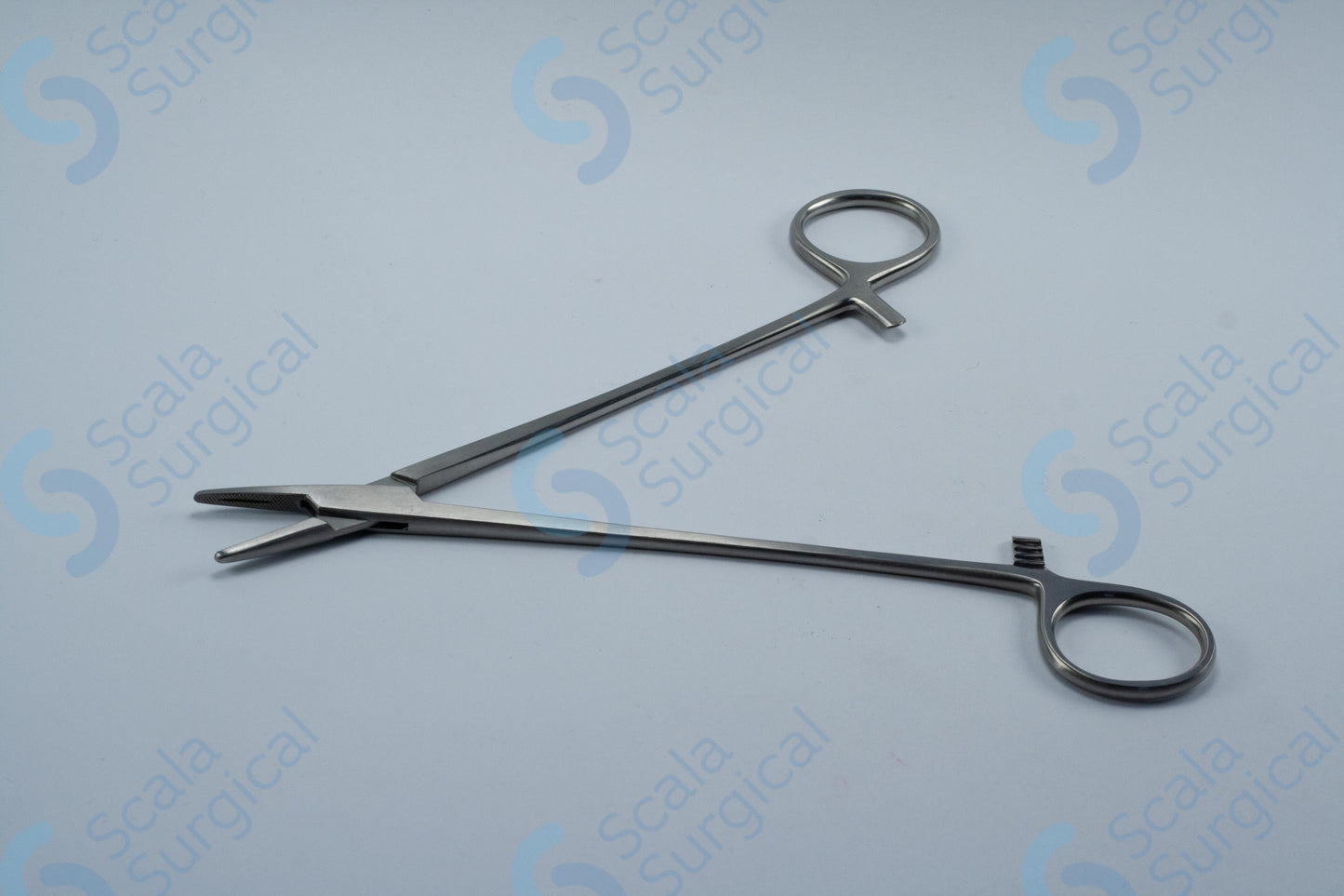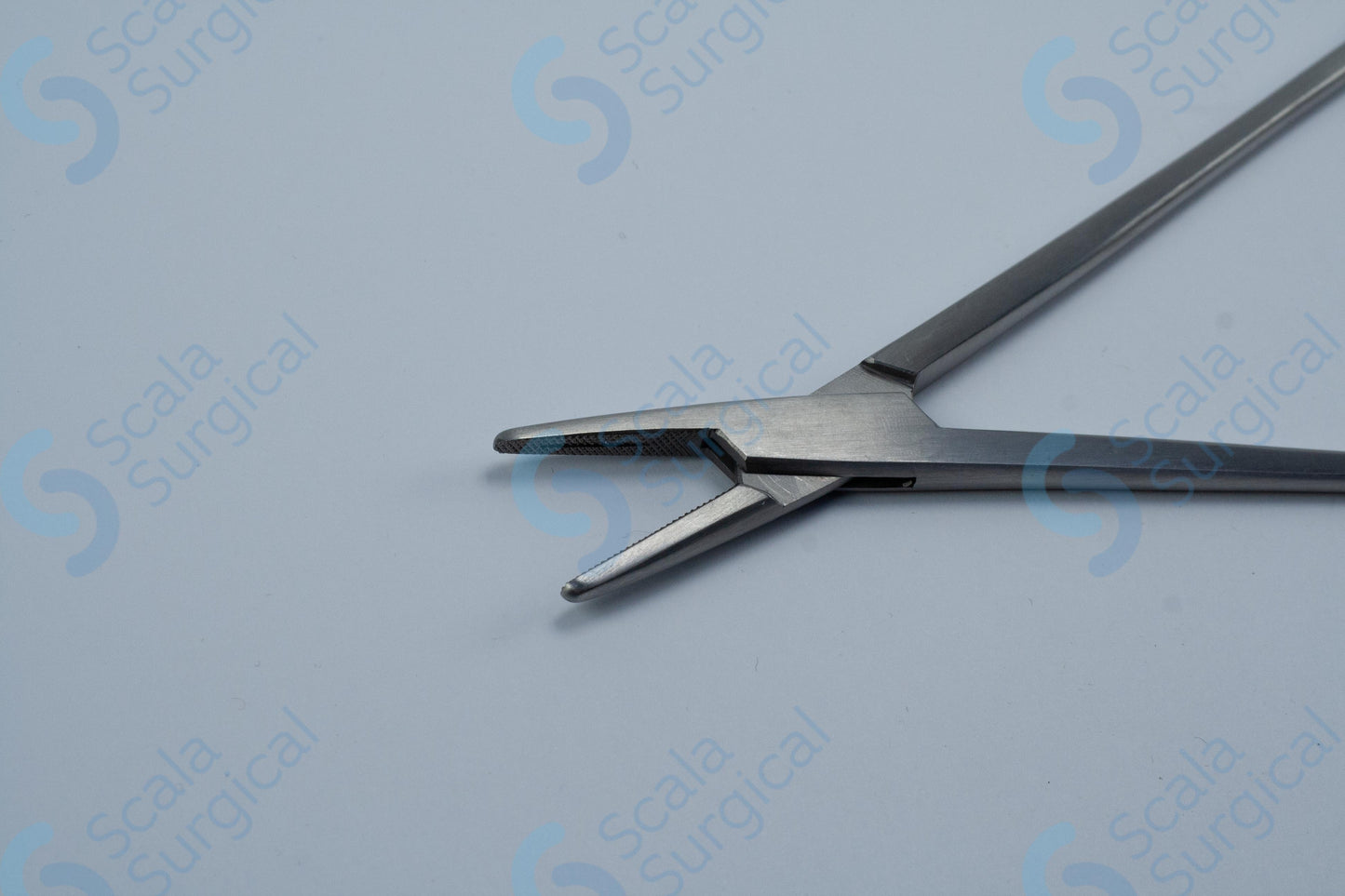 A Mayo Hegar Needle Holder Box Joint (203.2mm) (8 inch) is a surgical instrument used to hold and manipulate sutures during surgery. It features a box joint construction with a ratchet lock, which allows for precise and secure needle grasping. The instrument is commonly used in a variety of surgical procedures, such as suturing, tissue approximation, and wound closure.