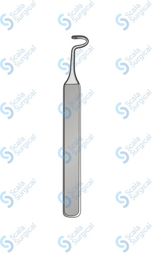 This aneurysm needle is used in the surgical field to access and treat aneurysms, which are abnormal bulges in blood vessels caused by weakened vessel walls. The curved side of the needle allows it to access the aneurysm with precision, while the flat handle provides support and stability. The small size (139.7mm or 5? inch) makes it ideal for use in small, delicate areas.