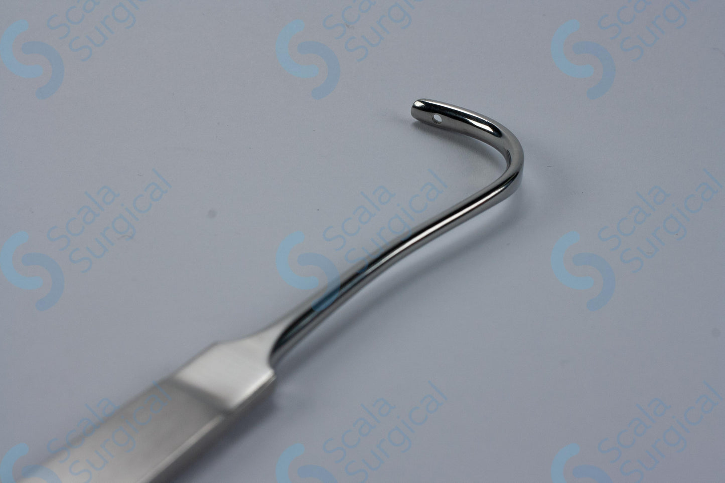 This item is a type of surgical needle used in the repair of aneurysms. It is designed with a flat handle and curved tip to allow for easier access to the aneurysm site. The 158.75mm (6? inch) size allows for more precise and accurate placement of the needle.