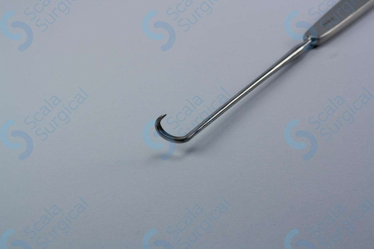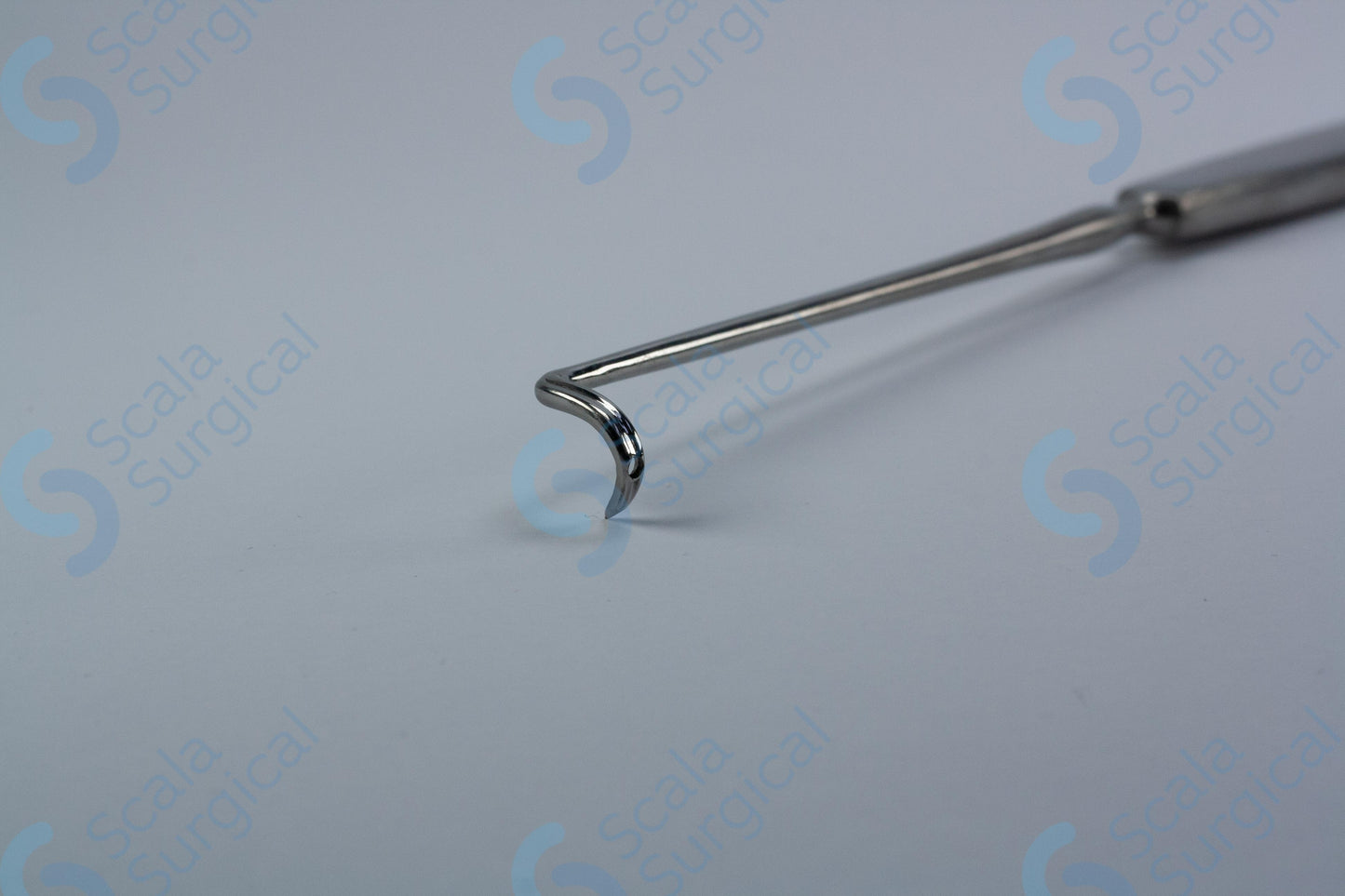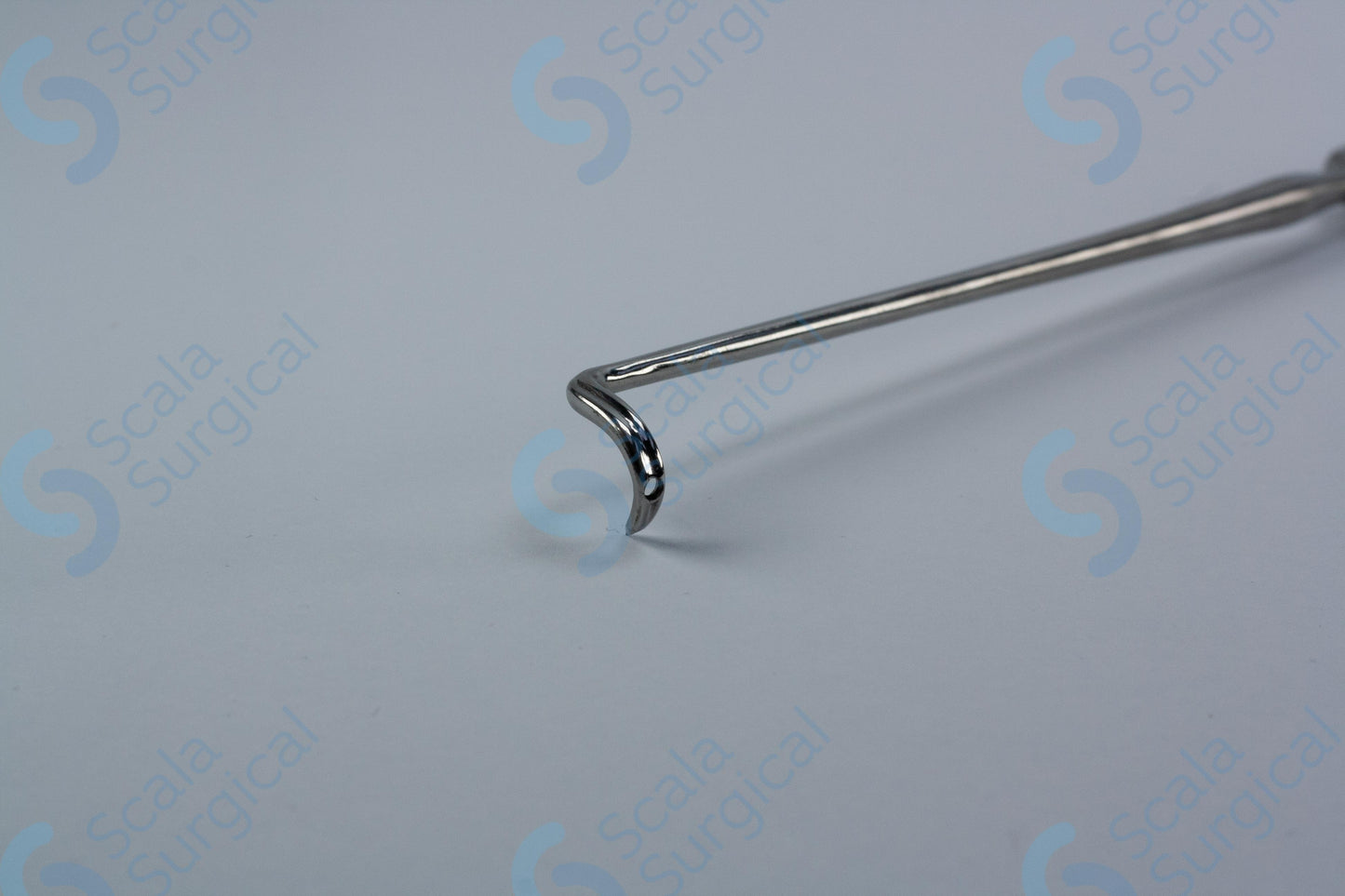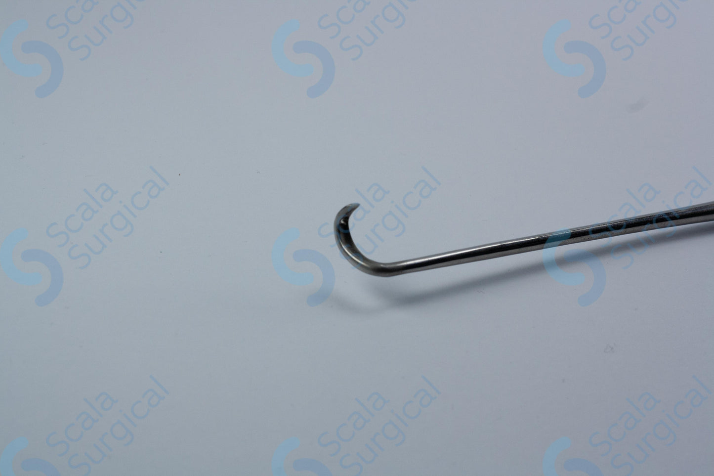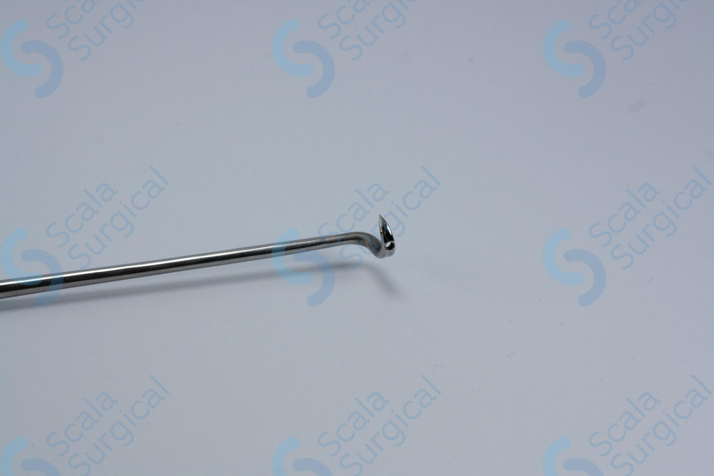 This is a surgical tool used to treat aneurysms. It is a curved needle with a length of 8? inches that is used to access the aneurysm and administer treatment.