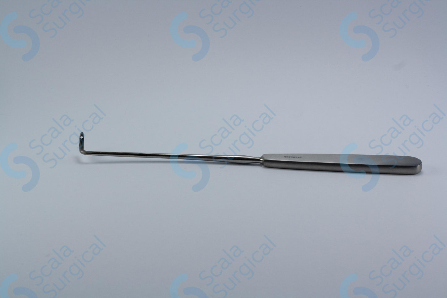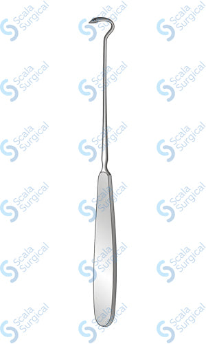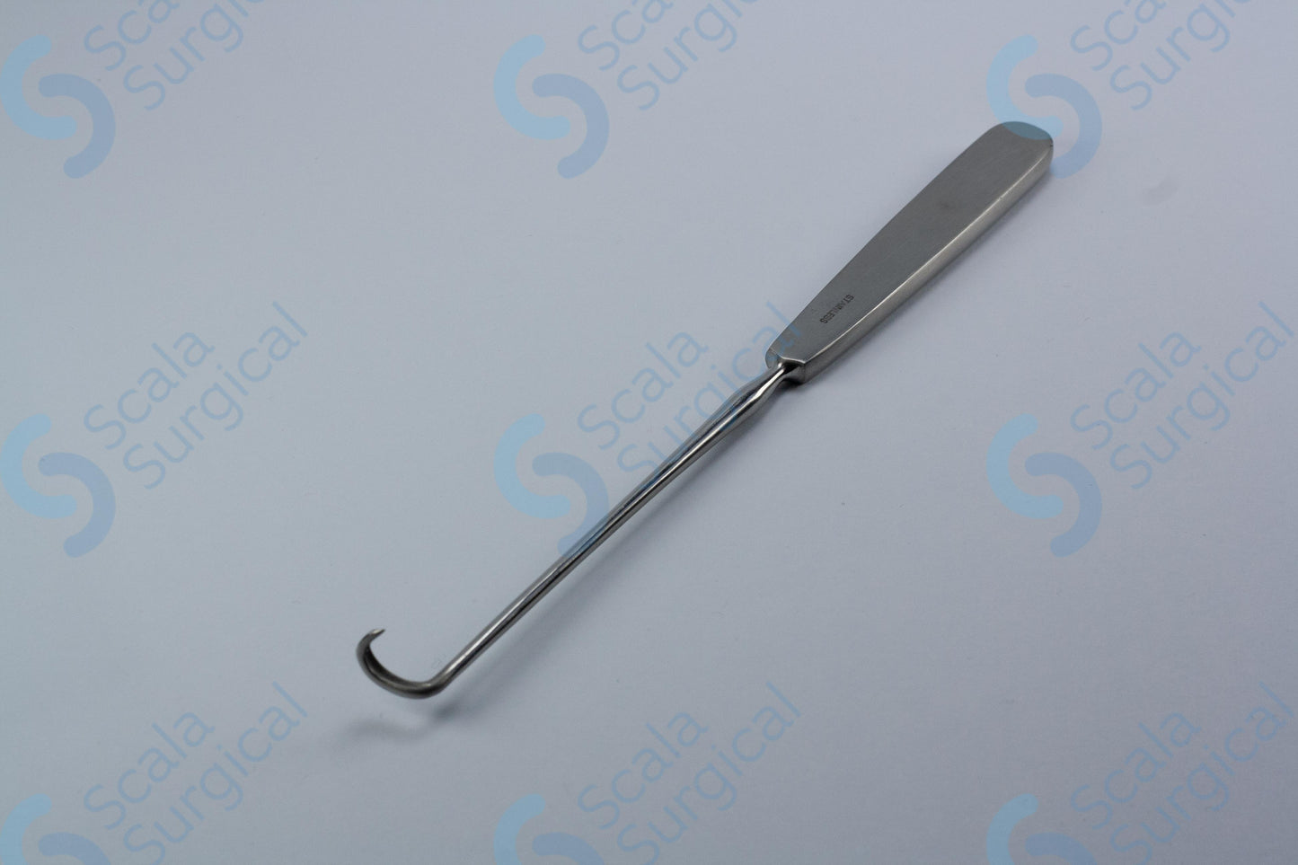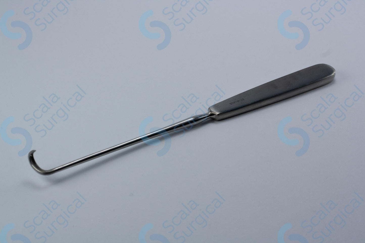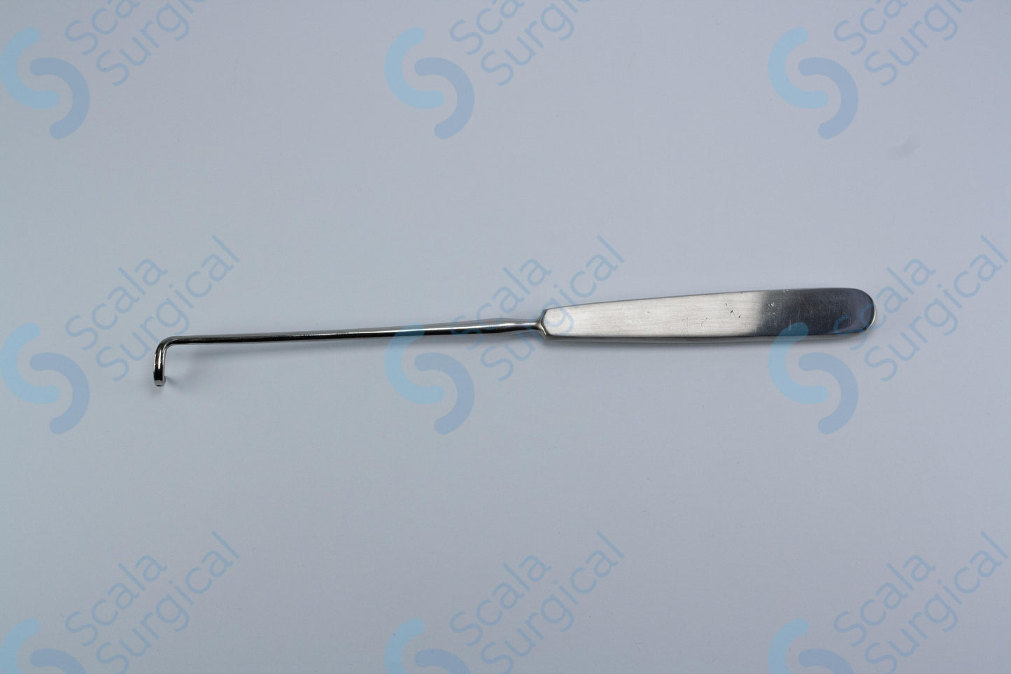 This is a surgical tool used to treat aneurysms. It is a curved needle with a length of 8? inches that is used to access the aneurysm and administer treatment.