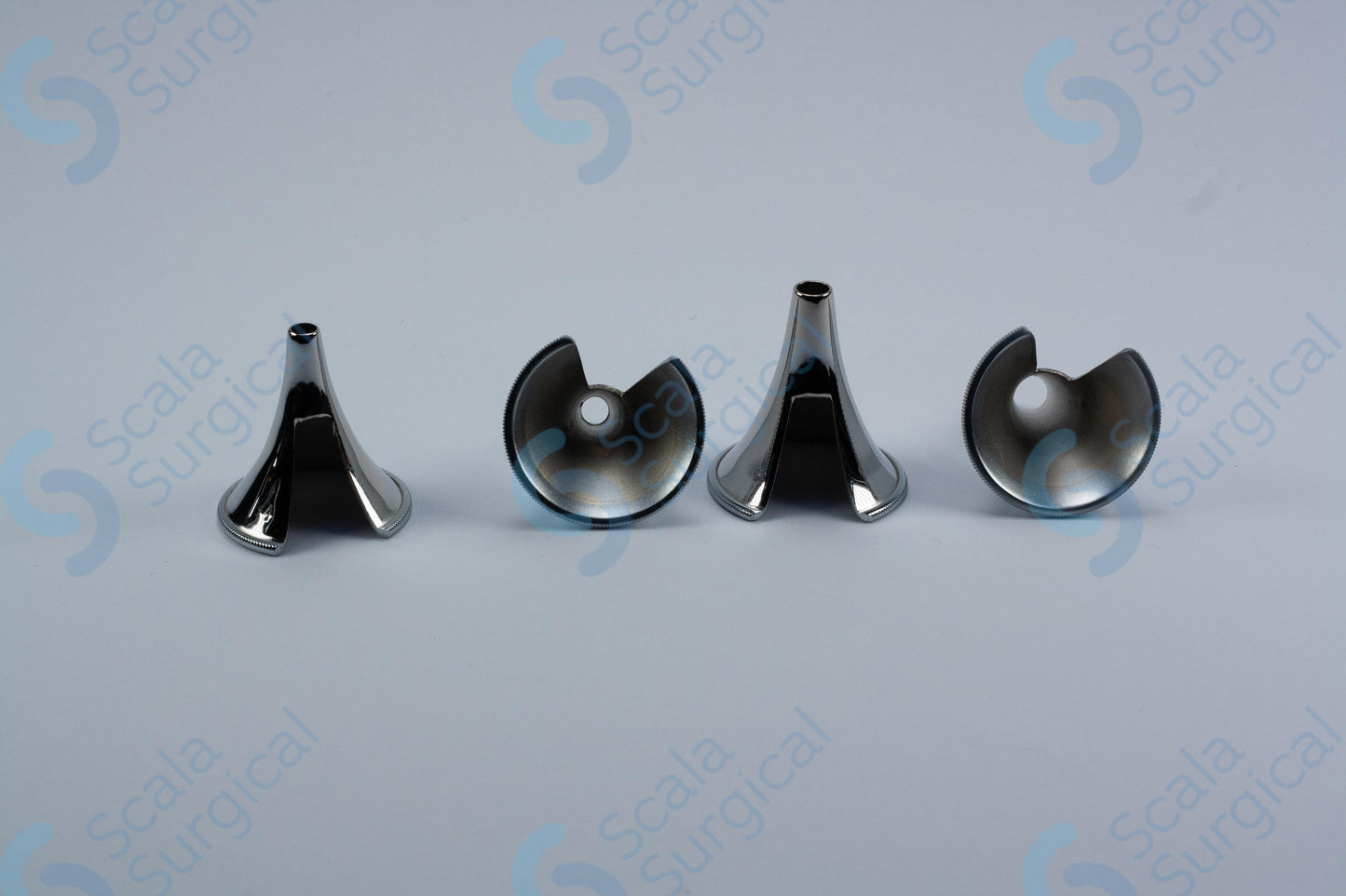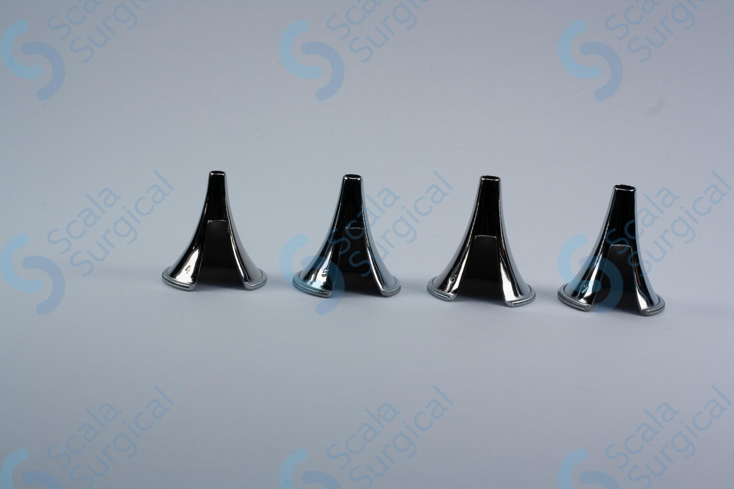 This is a set of four surgical instruments used to remove and repair small bones in the foot. They are designed to have a polished finish that reduces friction and allows for smooth movement. The slotted design allows for precise placement of the instruments during the procedure.