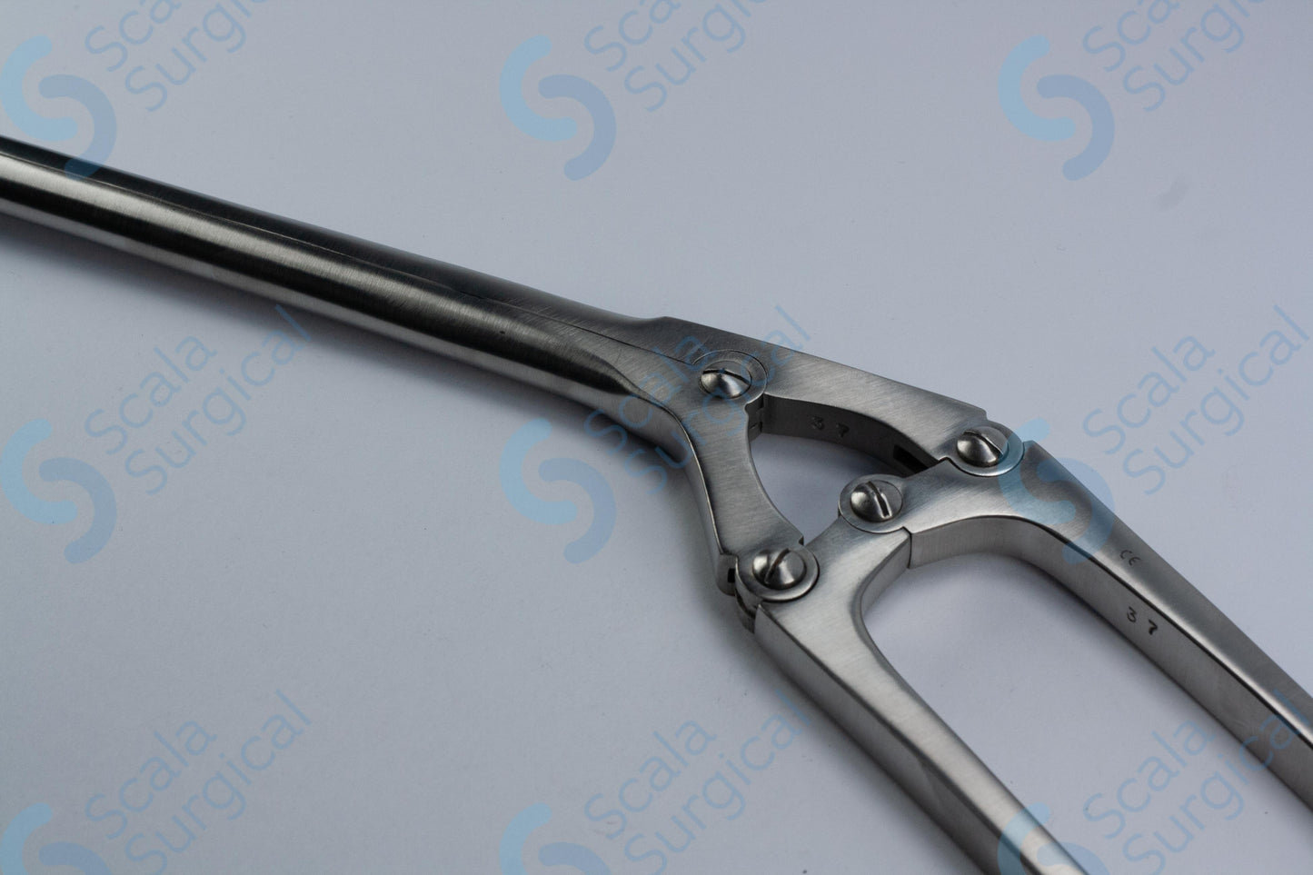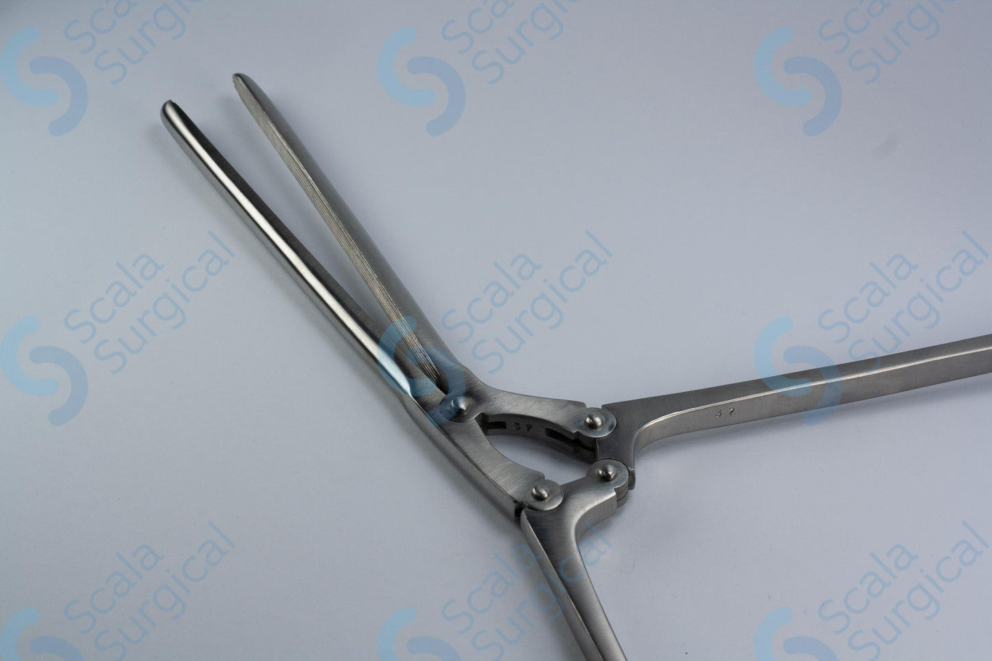 The Payr Intestinal Crushing Clamp Longitudinal Serrations Without Pin 127 mm 349.25 mm is a medical device used to crush and occlude intestines during surgical procedures. It is typically used to provide access to the abdominal cavity and to control bleeding.