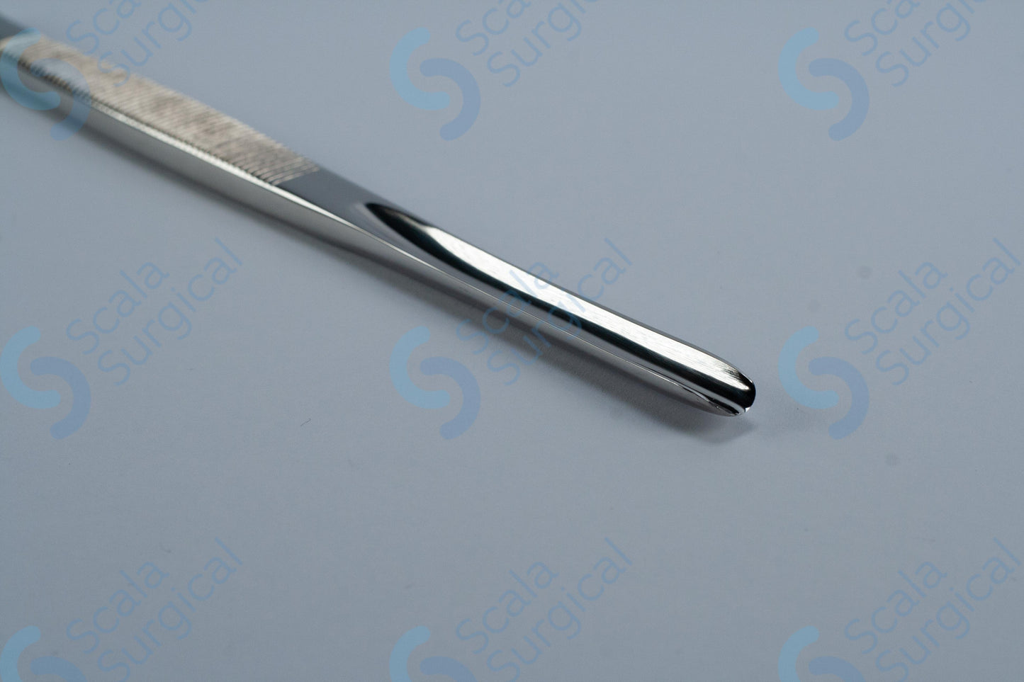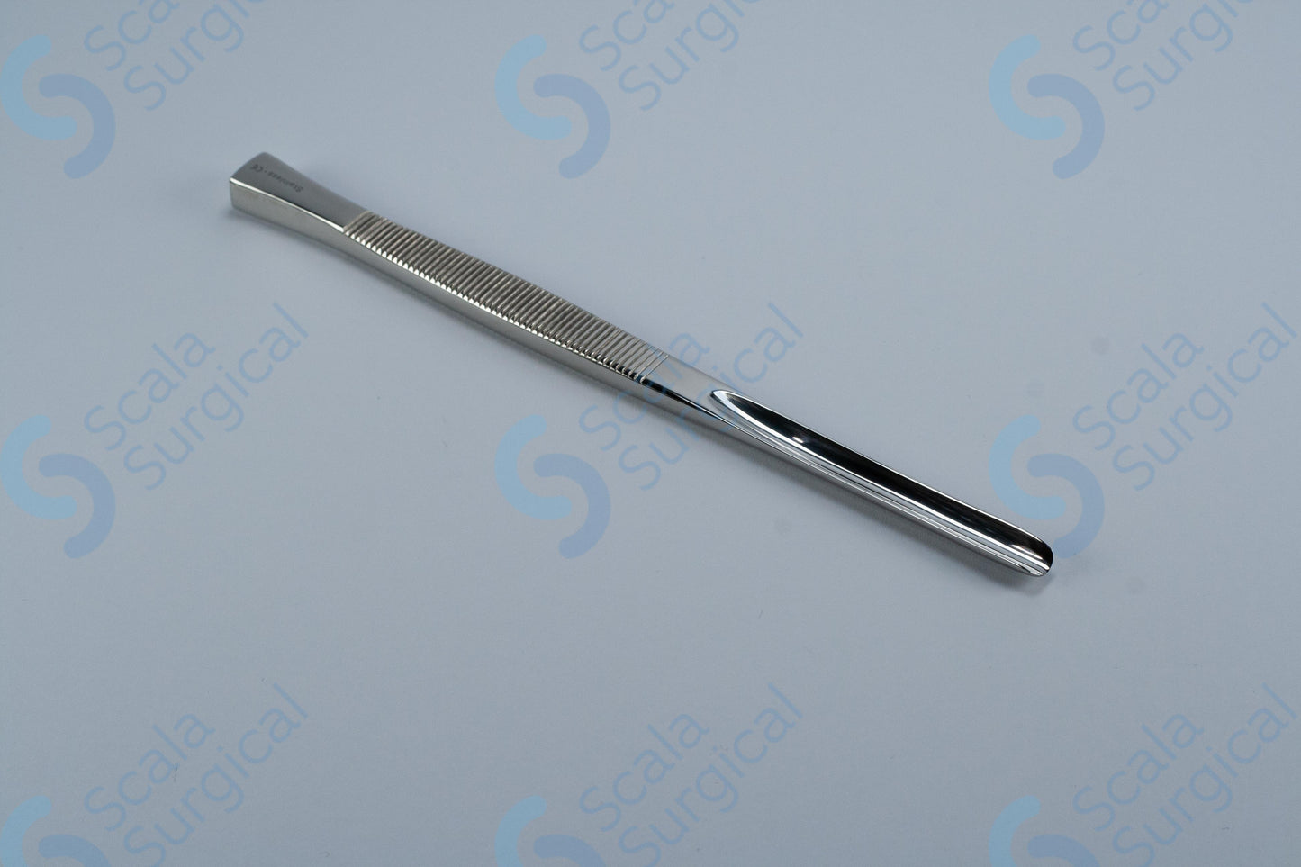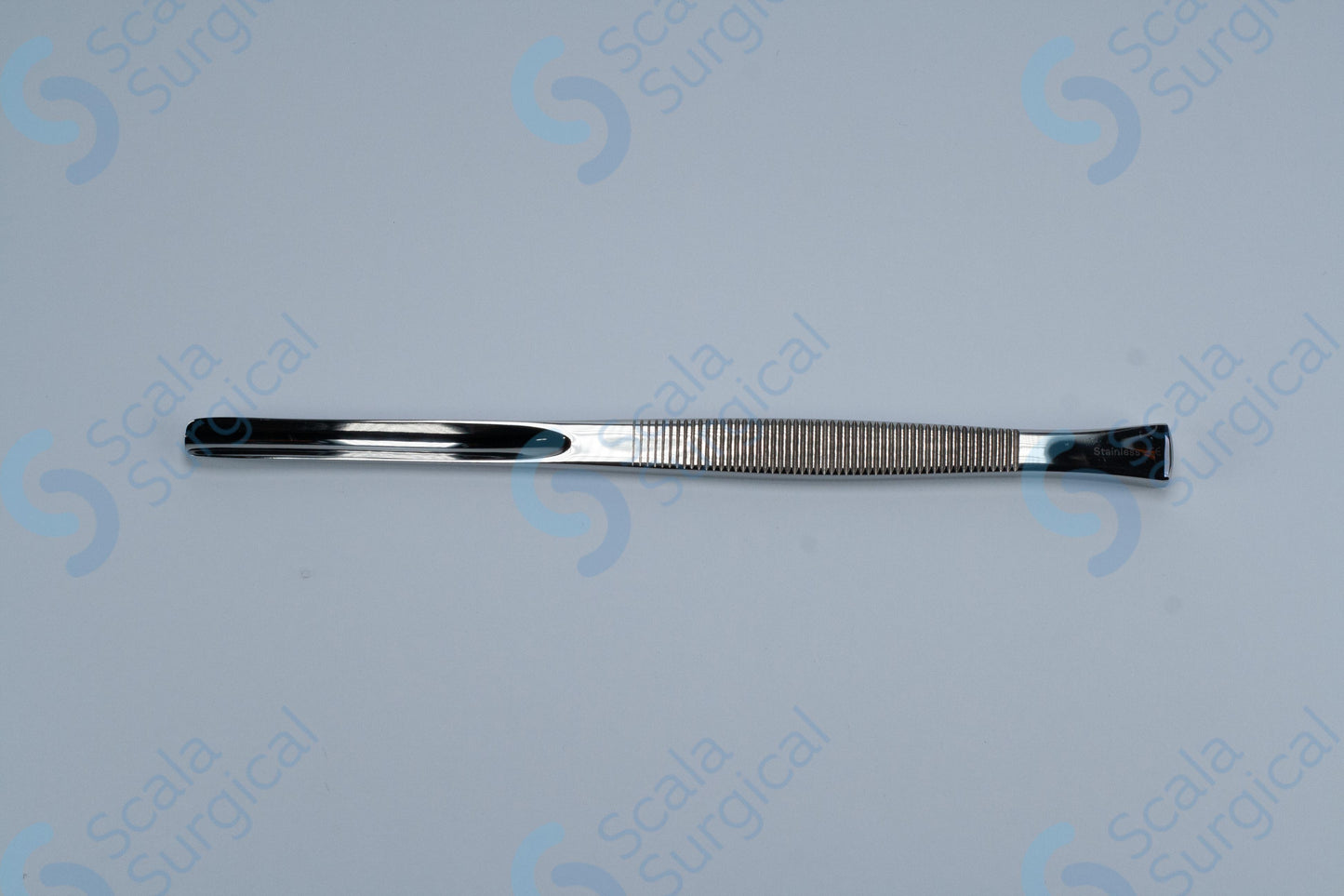 A Partsch Gouge is a surgical instrument used to widen and deepen a hole, such as a surgical incision. It is typically used to prepare a bone for the insertion of a prosthetic joint. The size of the gouge (7mm 6? inch) refers to the diameter of the blade and the length of the handle.