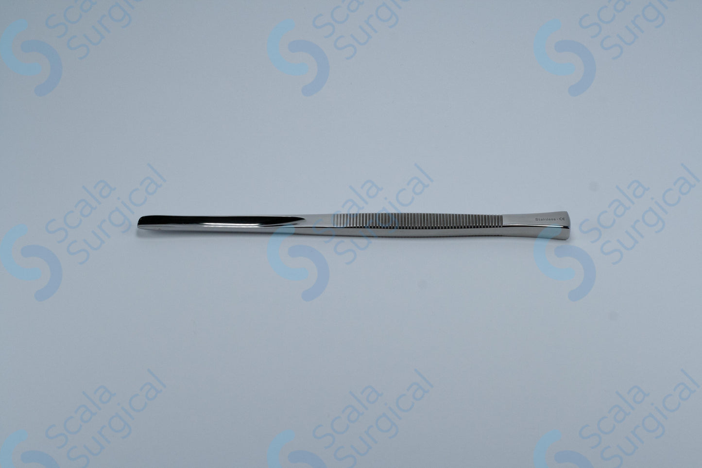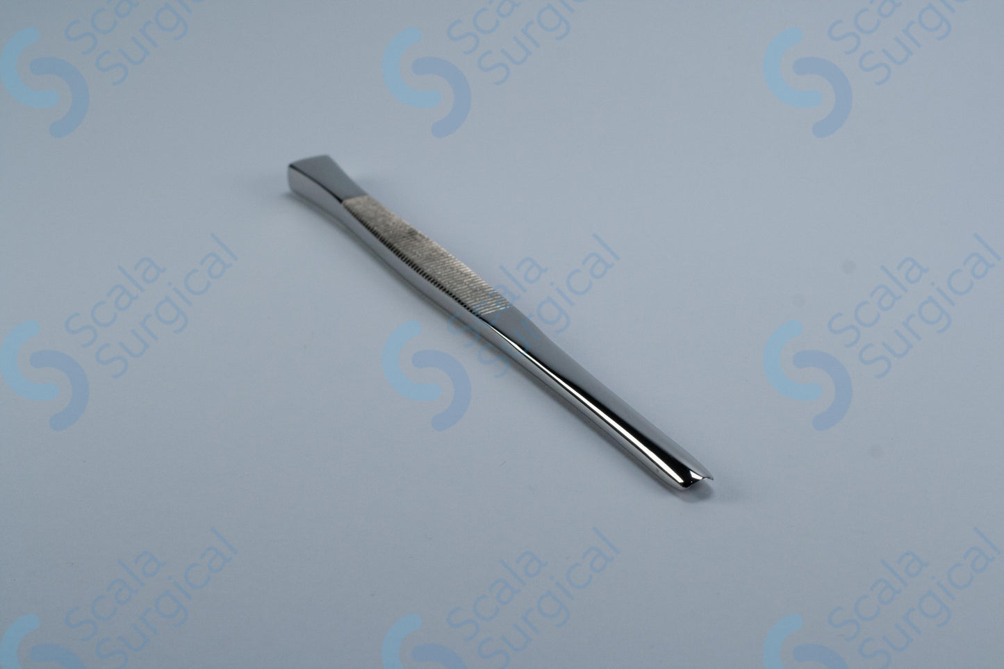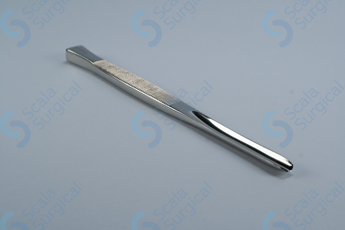 A Partsch Gouge is a surgical instrument used to widen and deepen a hole, such as a surgical incision. It is typically used to prepare a bone for the insertion of a prosthetic joint. The size of the gouge (7mm 6? inch) refers to the diameter of the blade and the length of the handle.