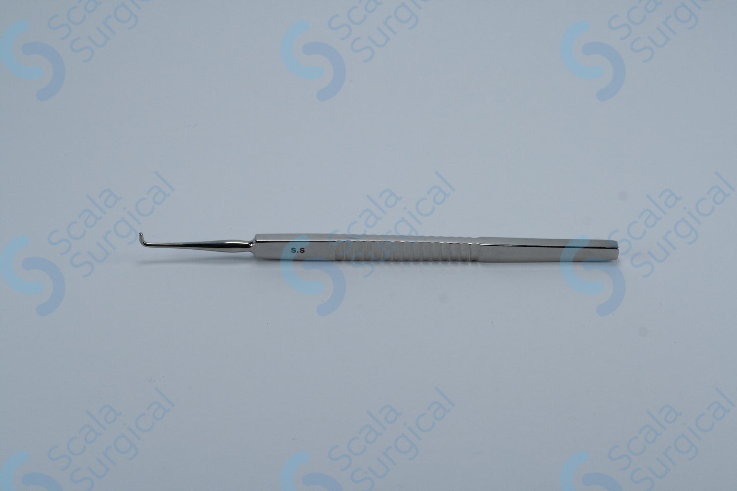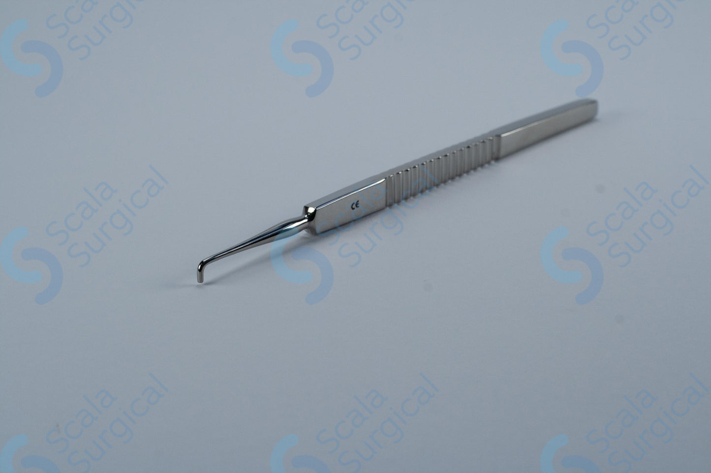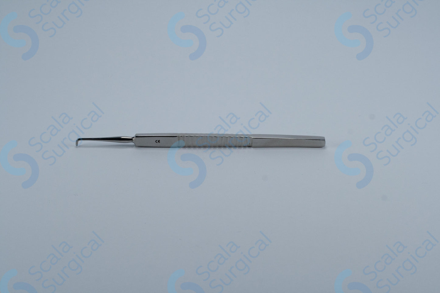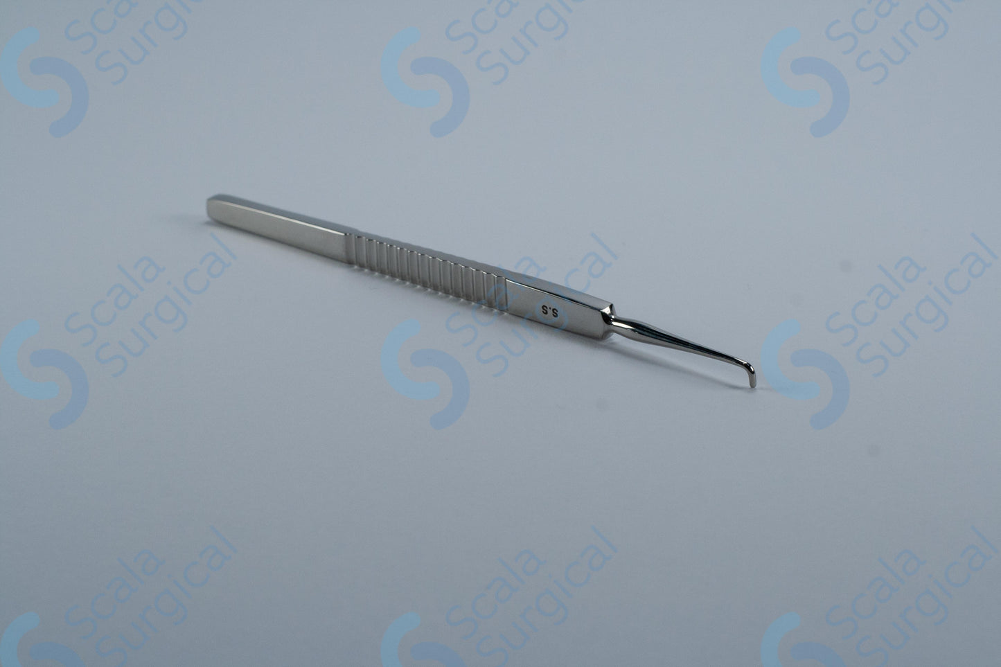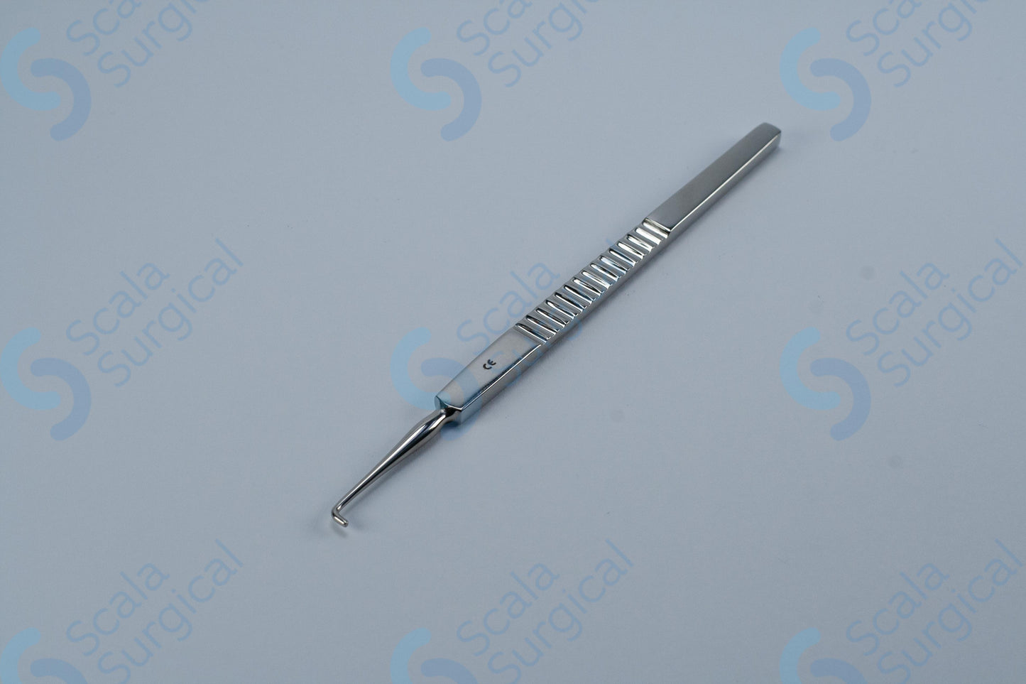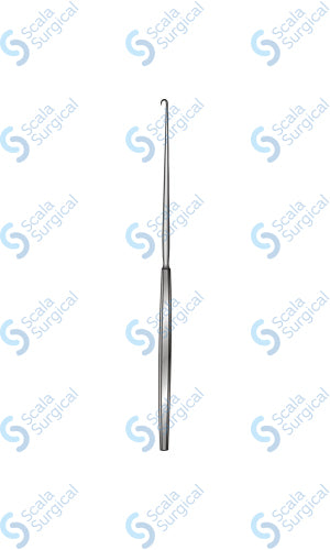 The Oliver Dural Hook Blunt (5? inch) is a surgical instrument used to grasp and hold tissue during surgery. It is often used in neurosurgery, orthopedic surgery, and plastic surgery. The hook has a blunt tip to prevent tissue damage and is used to manipulate and retract tissue.