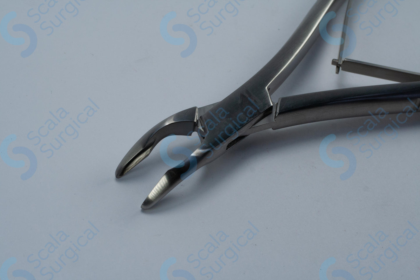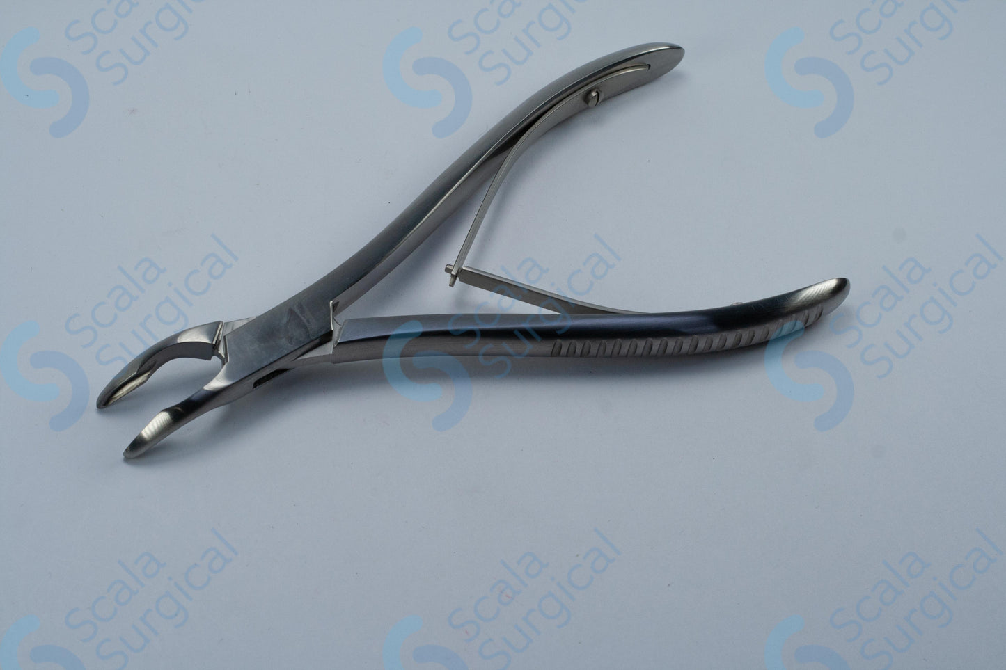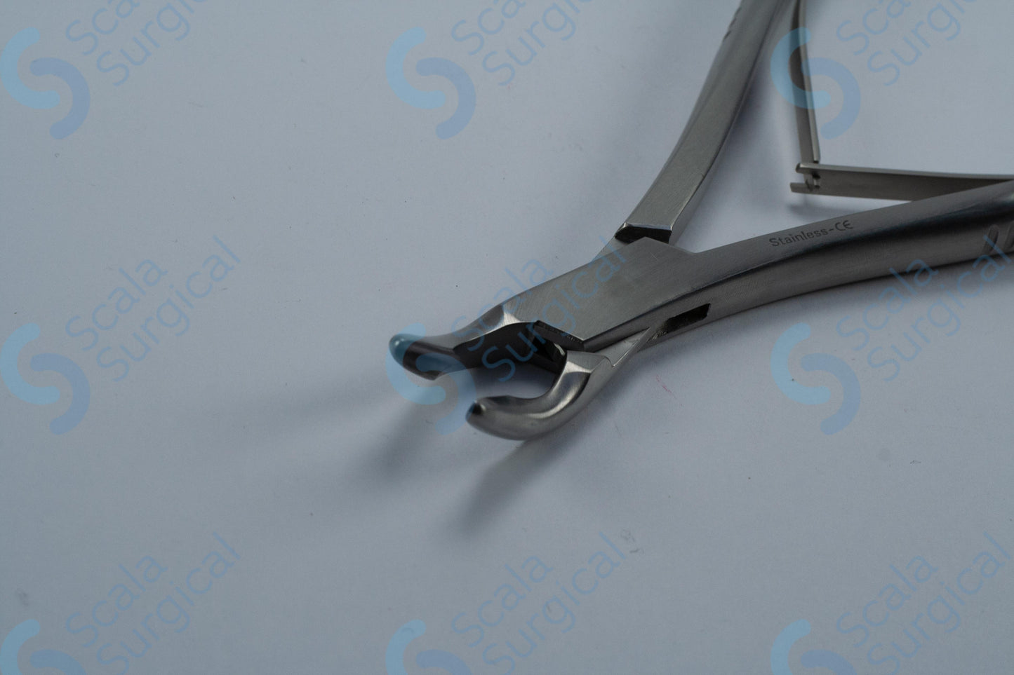 A Bane-Hartmann Rongeur Slightly Curved Box Joint 175mm 7inch is a surgical instrument used for cutting and removing bone. It is commonly used in orthopedic and neurosurgery procedures.