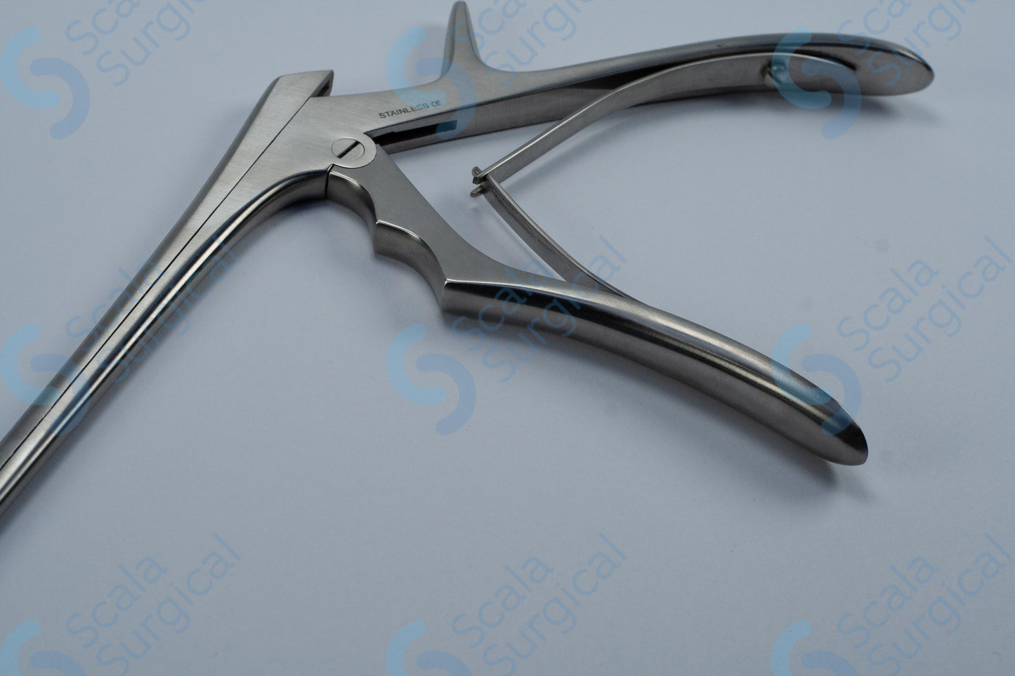 Kerrison Rongeurs Upward are surgical instruments used to chisel, cut, and remove bone. The 4mm 7inch size is used for small surgeries, such as removing bone spurs or performing a biopsy.