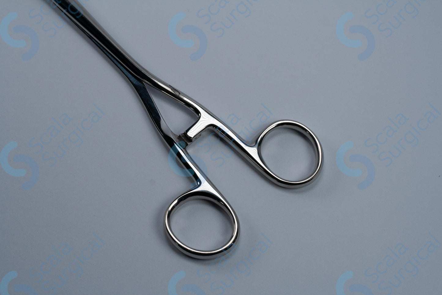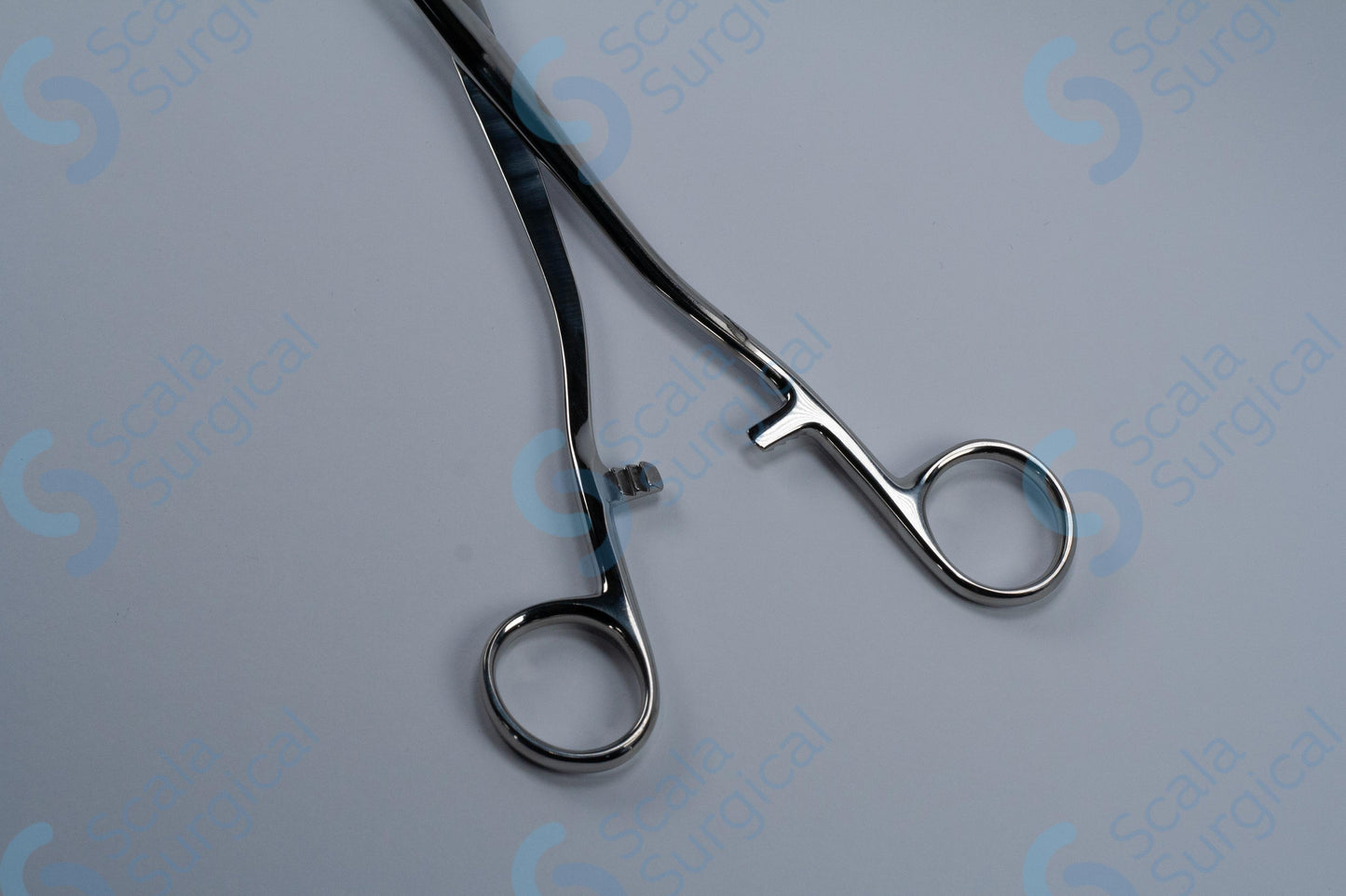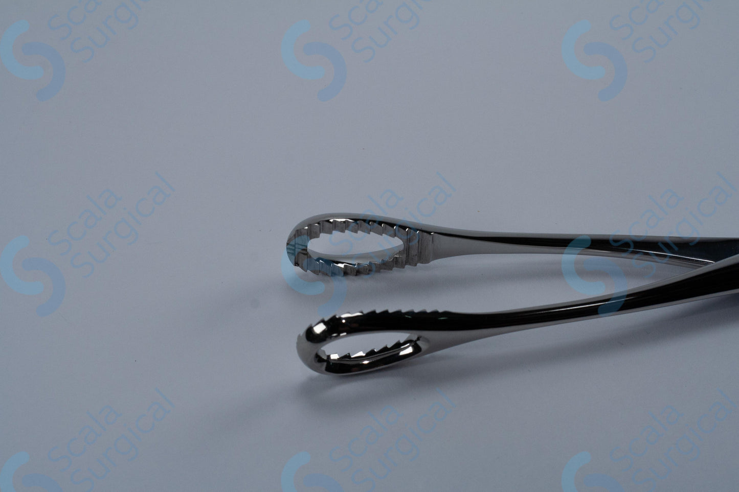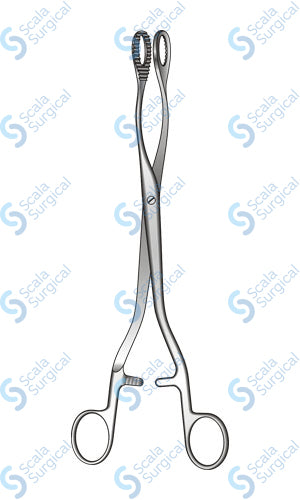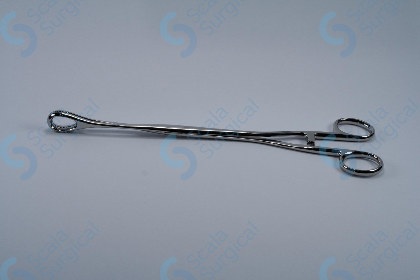 Heywood Ovum Forceps Round Jaws Screw Joint (254mm) (10 inch) is a surgical instrument used to grasp and hold objects, usually tissue or an ovum (egg). It is commonly used during gynecological procedures, such as tubal ligation, and for retrieval of specimens during laparoscopy.