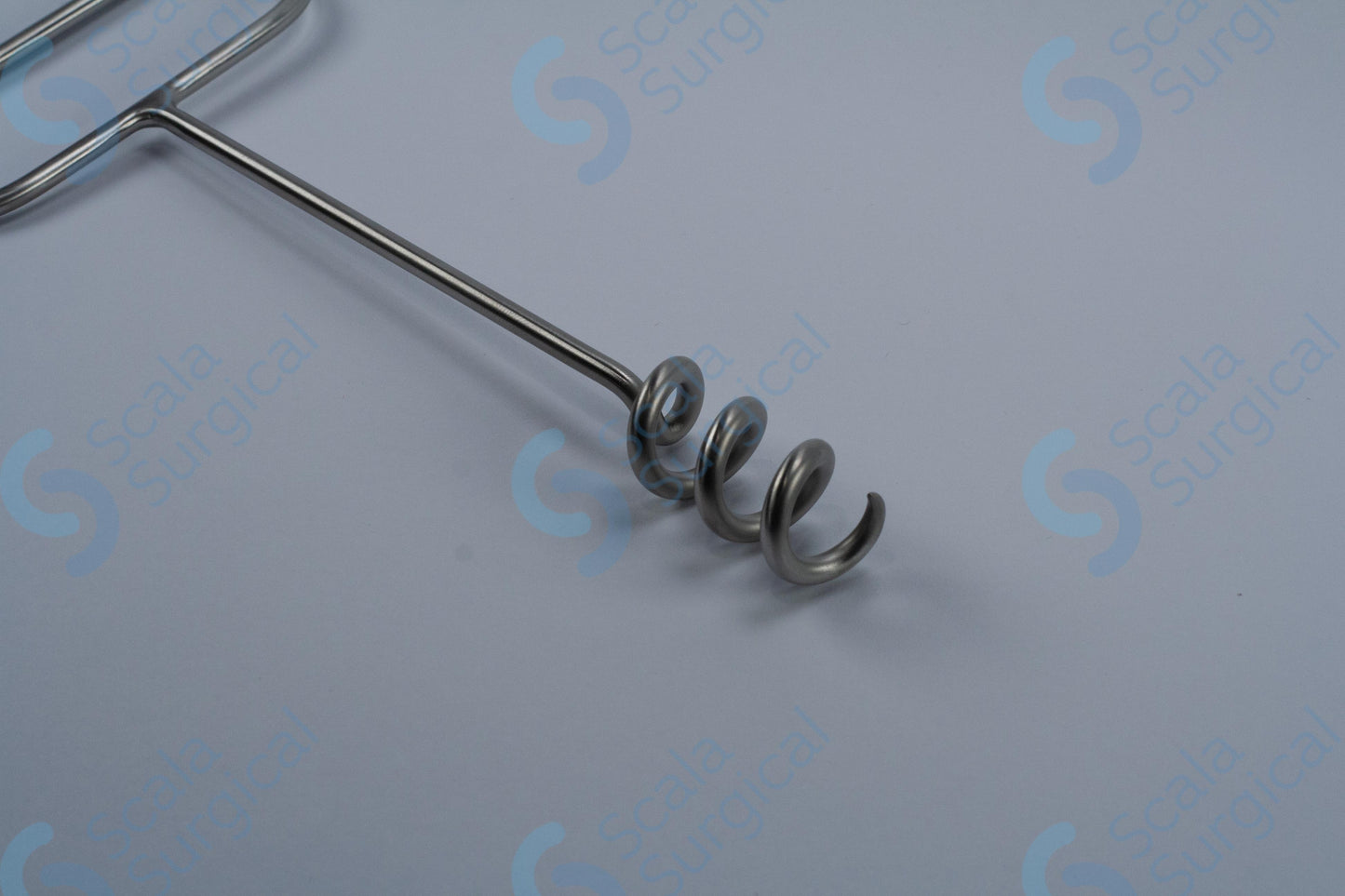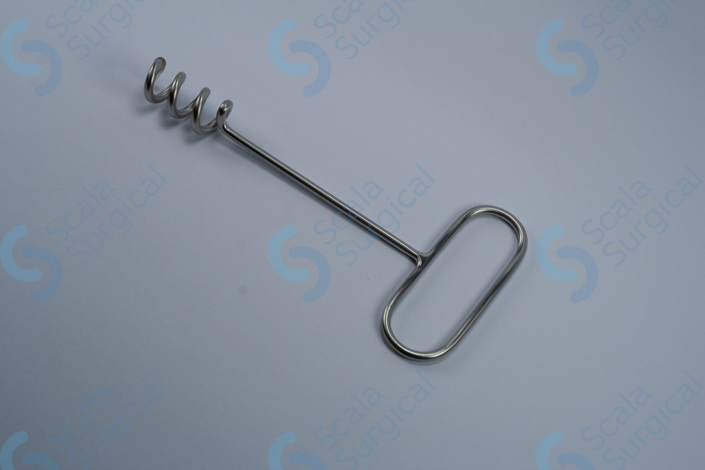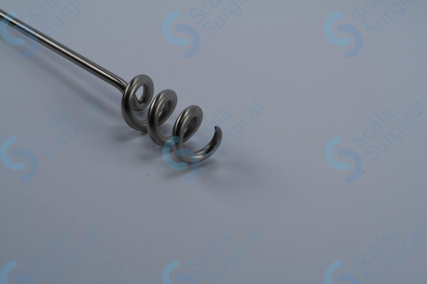 The Doyen Abdominal Screw Small Spiral is a surgical instrument used to secure the closure of abdominal incisions. It is a small spiral-shaped screw with a self-tapping tip that is inserted into the abdominal wall and tightened to provide a secure closure. It is commonly used in laparoscopic procedures as well as open abdominal surgeries.