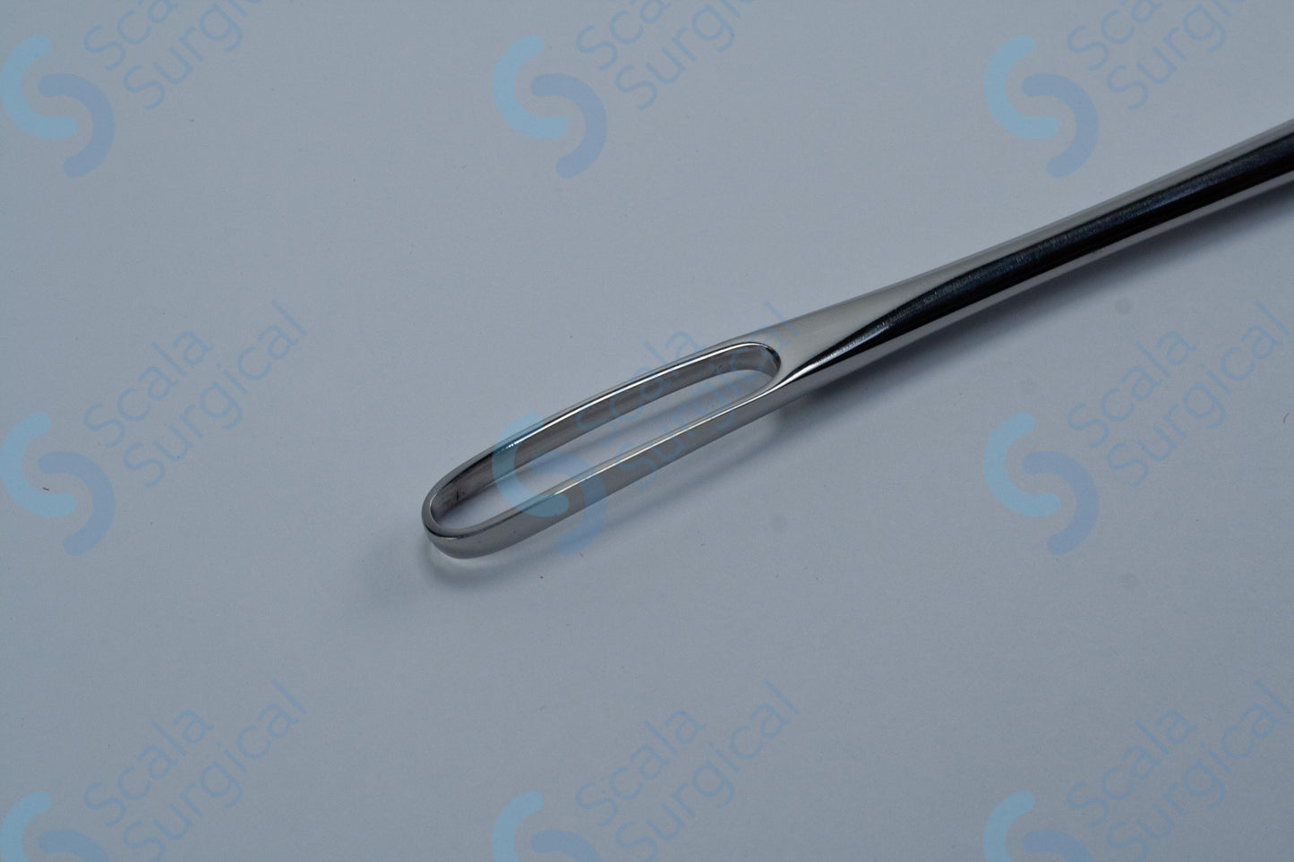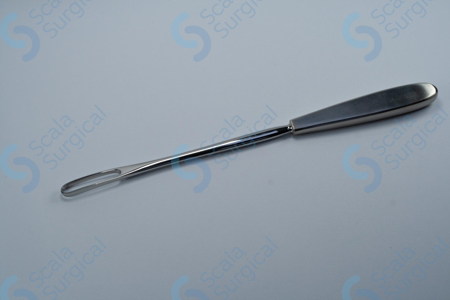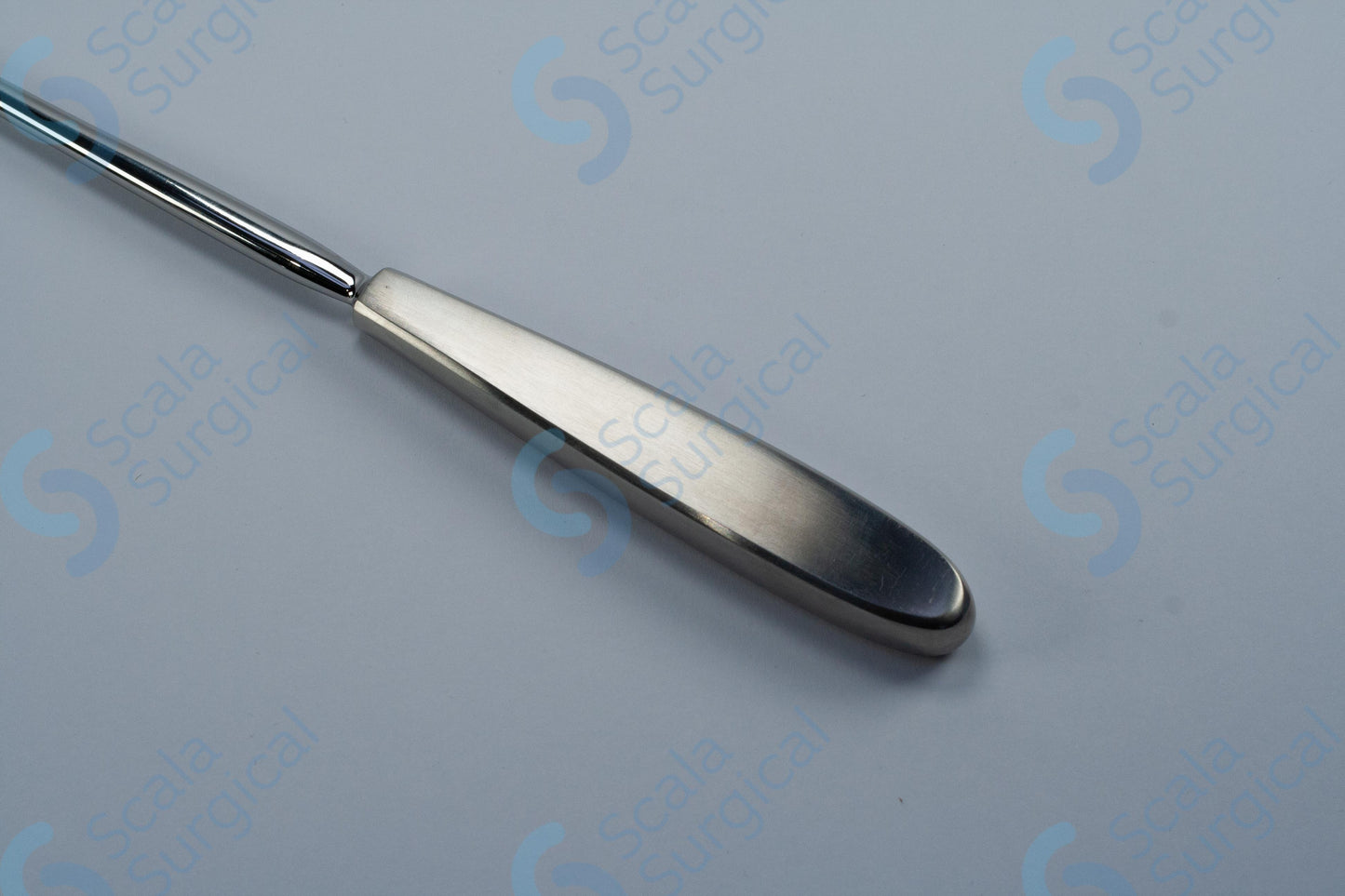 A Evans Uterine Curette Single Ended is a surgical instrument used to scrape the lining of the uterus during a procedure called a dilation and curettage (D&C). The width of the curette is 10mm and is used to scrape away any abnormal tissue.