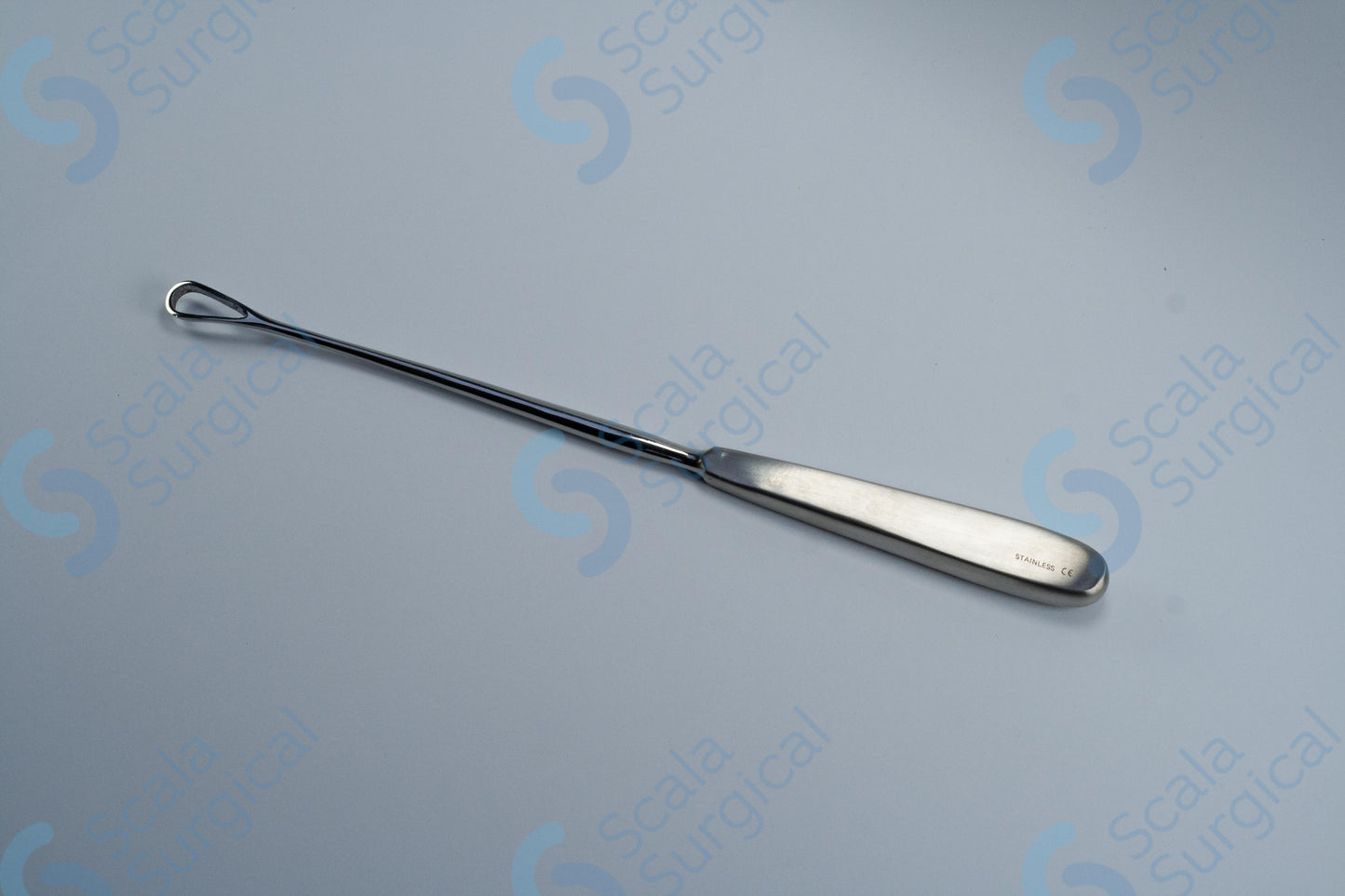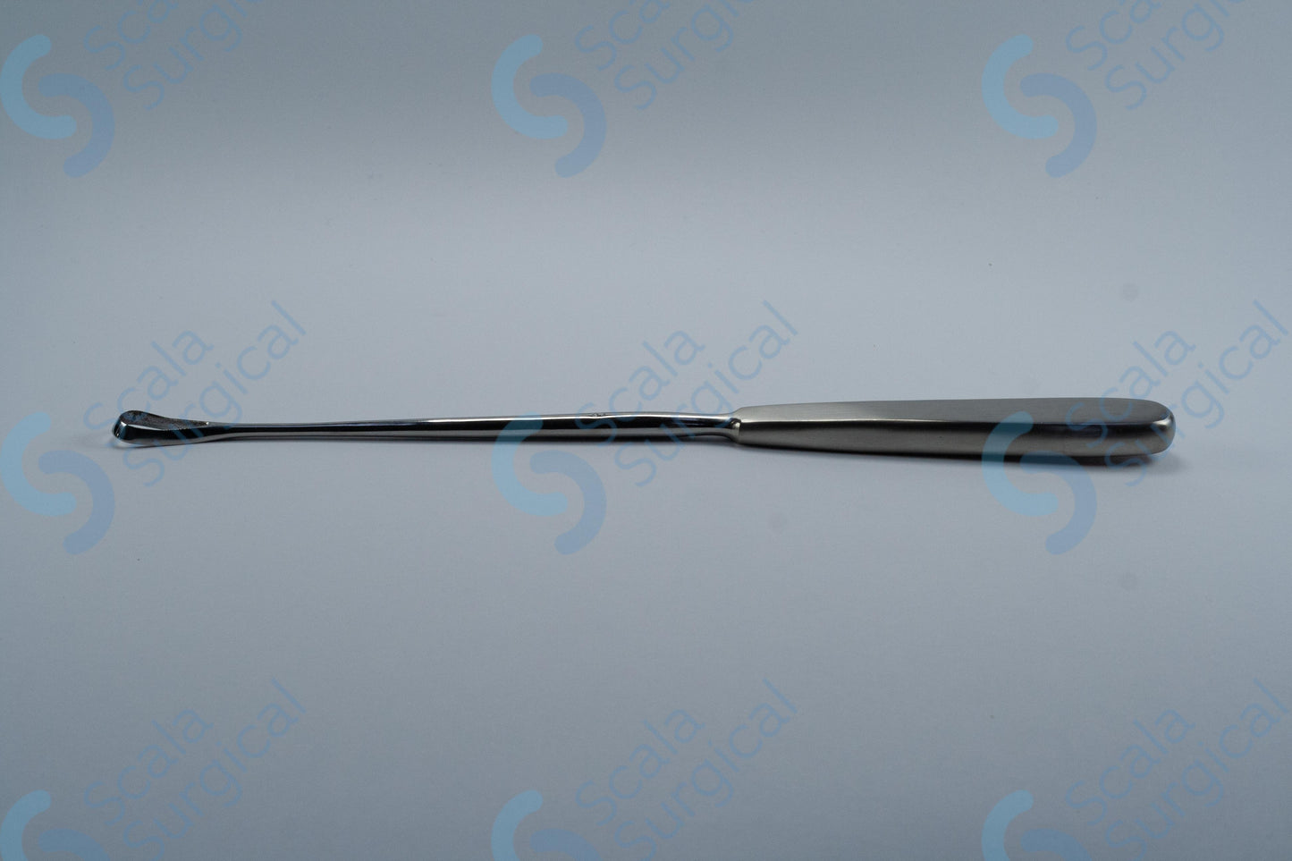A Sims Uterine Curette is a surgical instrument used to scrape tissue from the walls of the uterus. It is most commonly used during a dilation and curettage (D&C) procedure, which is a procedure used to diagnose and treat a variety of conditions, such as abnormal bleeding, endometrial polyps, and uterine cancer. The Sims Uterine Curette has a single-ended, rigid shaft with a sharp, curved tip. The width of the curette is 12mm, and the length is 255mm (10 inches).