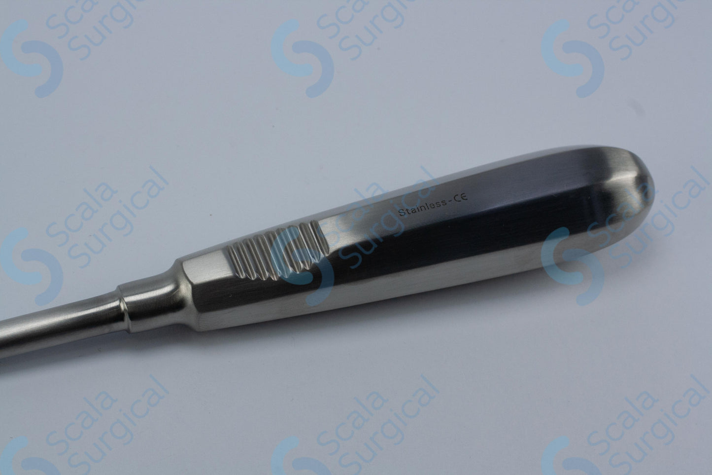 A Recamier Uterine Curette Blunt is a surgical instrument used in gynecological procedures. It is used to scrape and remove tissue from the walls of the uterus, such as during a biopsy or curettage. The 12mm width and 317.5mm length of this particular curette make it suitable for larger uterine cavities.