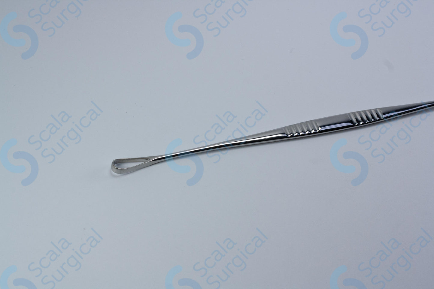 A Gervis Uterine Curette Double Ended (266.7mm) (10? inch) is a surgical instrument used to scrape the lining of the uterus during a dilation and curettage (D&C) procedure. It is used to remove the lining of the uterus, which may be necessary for the diagnosis and treatment of conditions such as abnormal bleeding, infertility, and miscarriage.