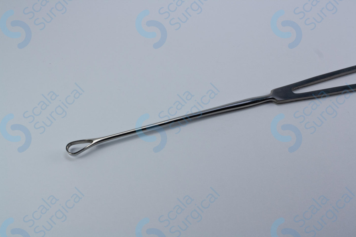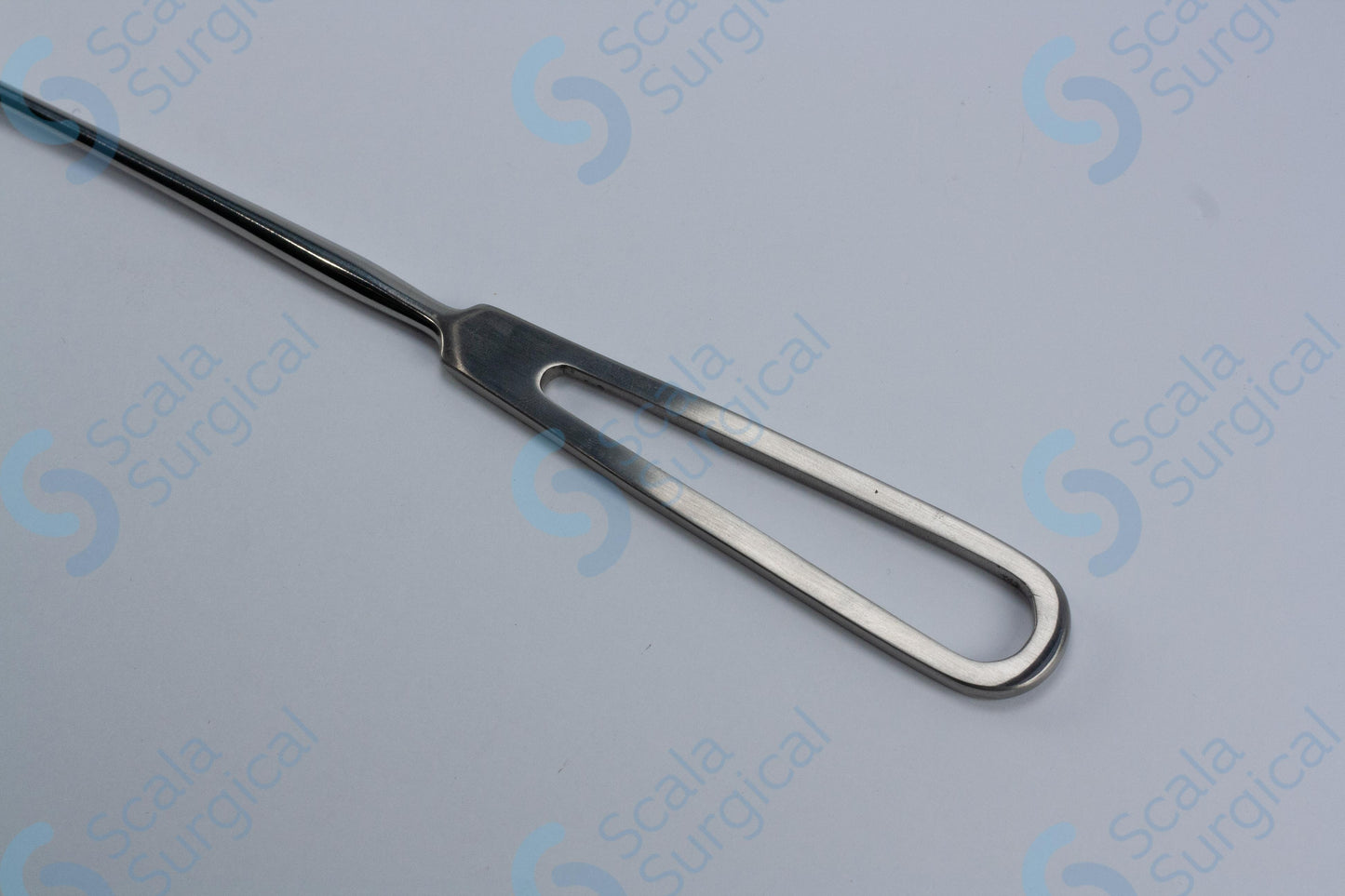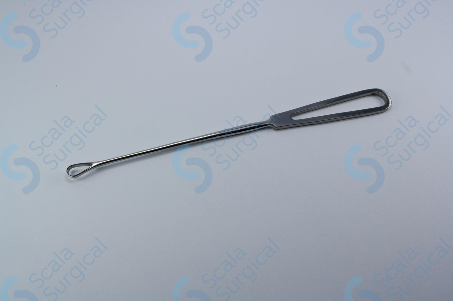 A Sims Uterine Curette is a surgical instrument used to scrape the endometrium (lining of the uterus) during a procedure known as a dilation and curettage (D&C). The sharp edge of the curette is used to scrape away the endometrium, while the ring handle is used to provide the surgeon with a secure grip.