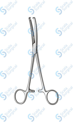 The Maingot Hysterectomy Clamp is used in gynecological surgeries to clamp the uterus in order to facilitate the removal of the uterus during a hysterectomy. The curved box joint design allows for improved maneuverability and precision during the procedure.