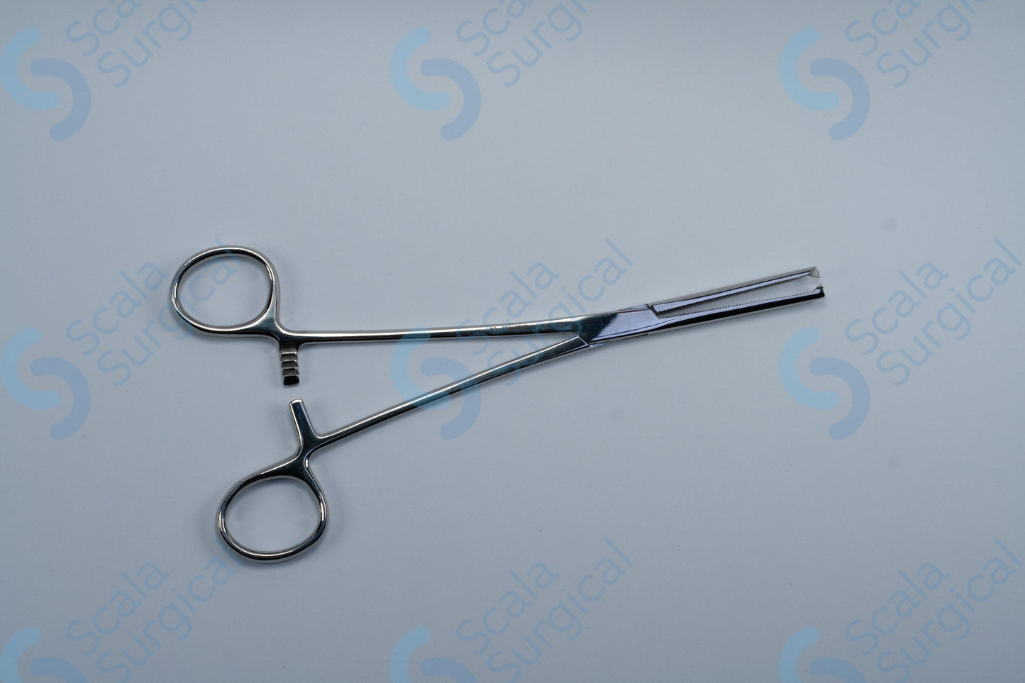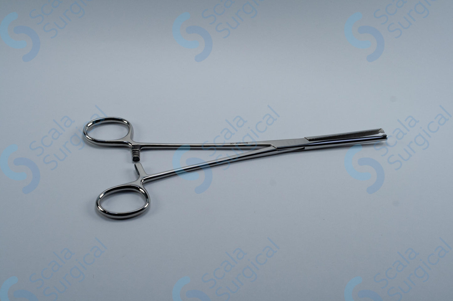 A Chelsea Hospital Hysterectomy Clamp Straight (8 inch) is a surgical instrument used in hysterectomy procedures. It is used to clamp the uterus during the procedure and can be used to control bleeding.