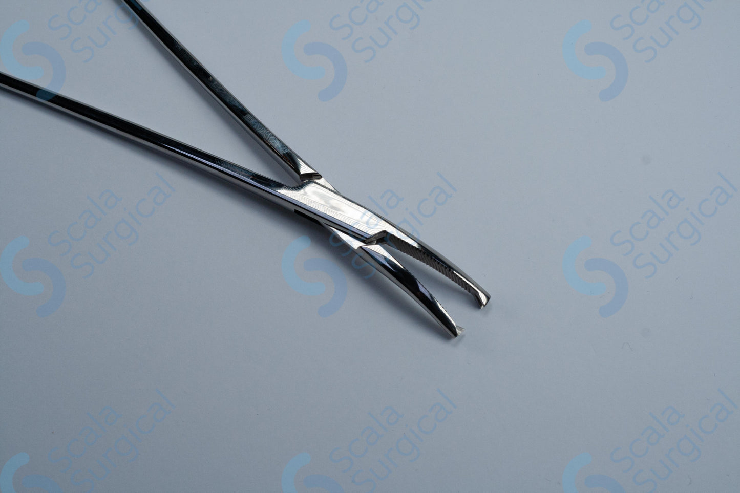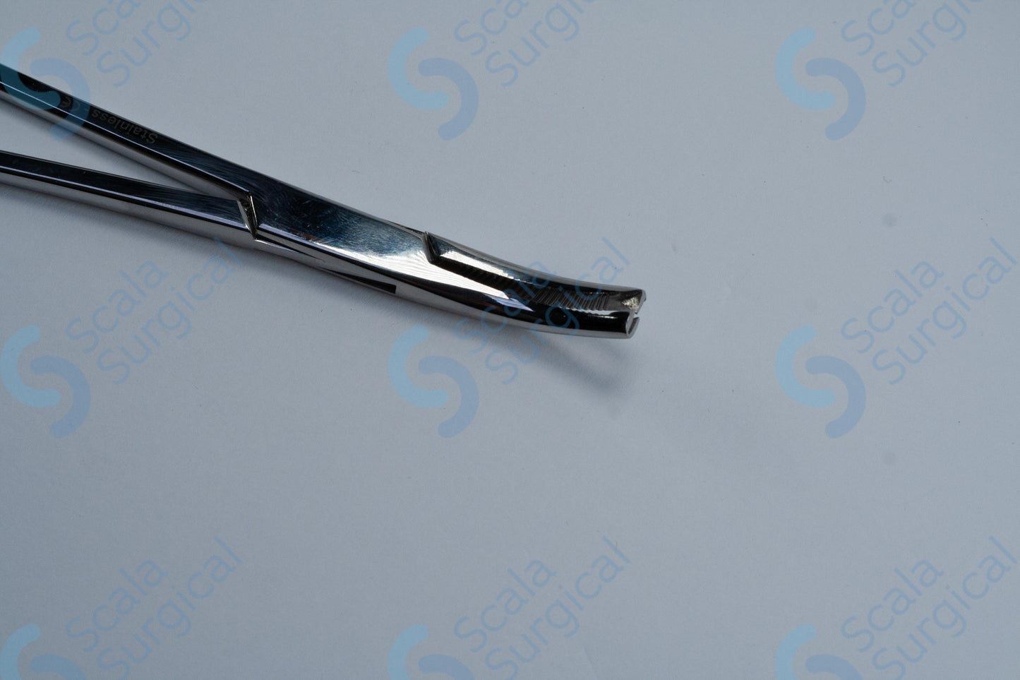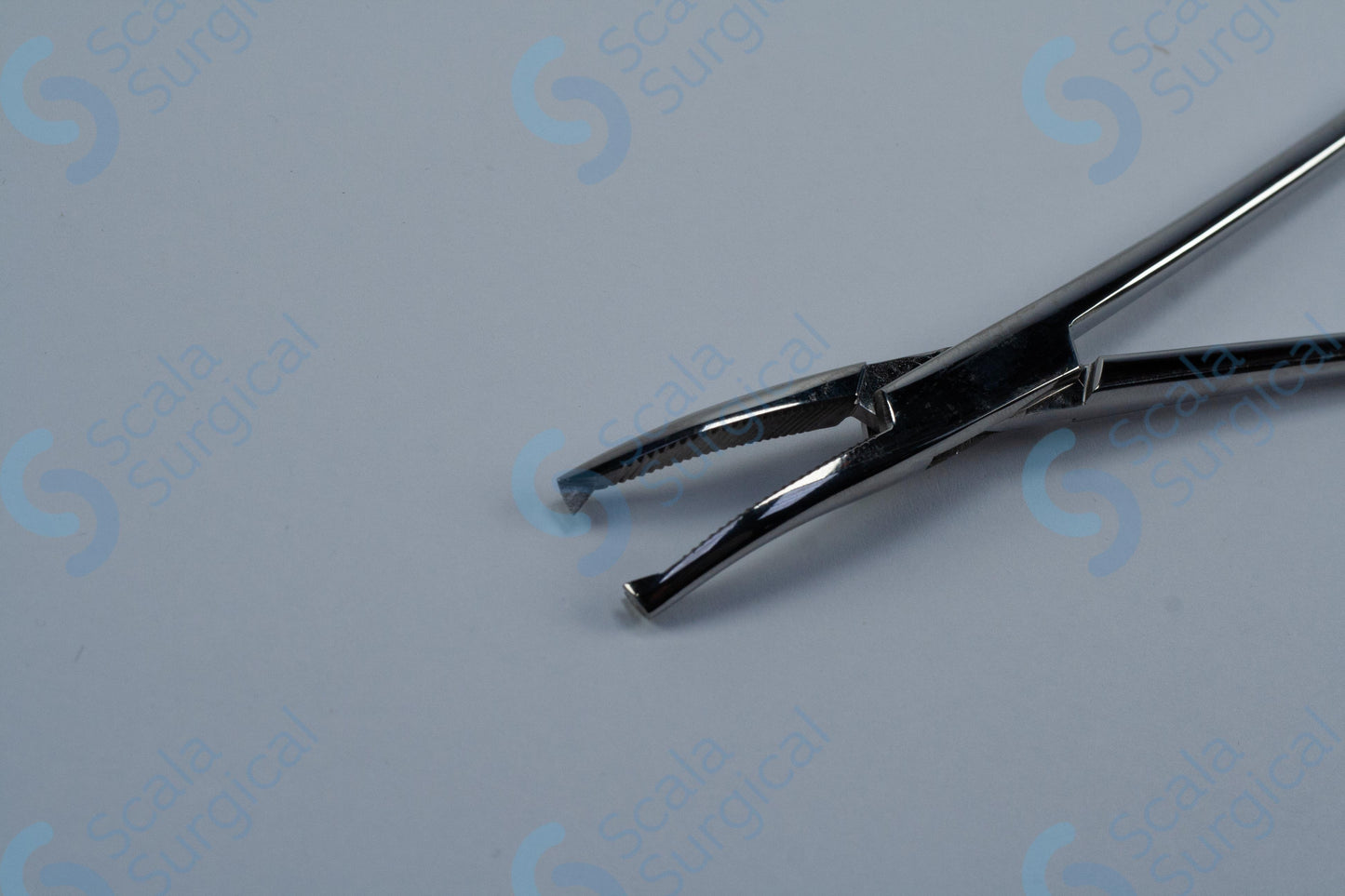 The Faure Hysterectomy Clamp is a surgical instrument used in hysterectomy procedures. It is designed to securely clamp and hold the uterus in place during the procedure. The 1 x 2 teeth and slight curve of the box joint helps to provide a secure grip and better control of the uterus during the hysterectomy.