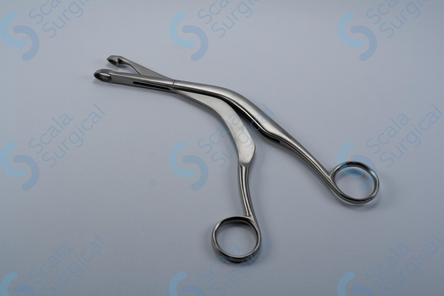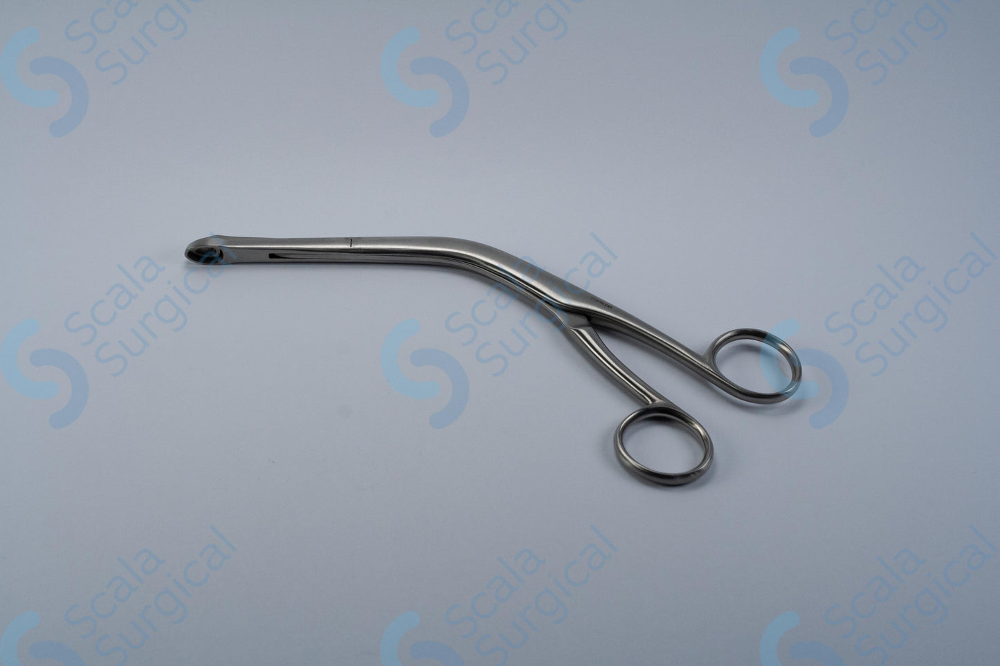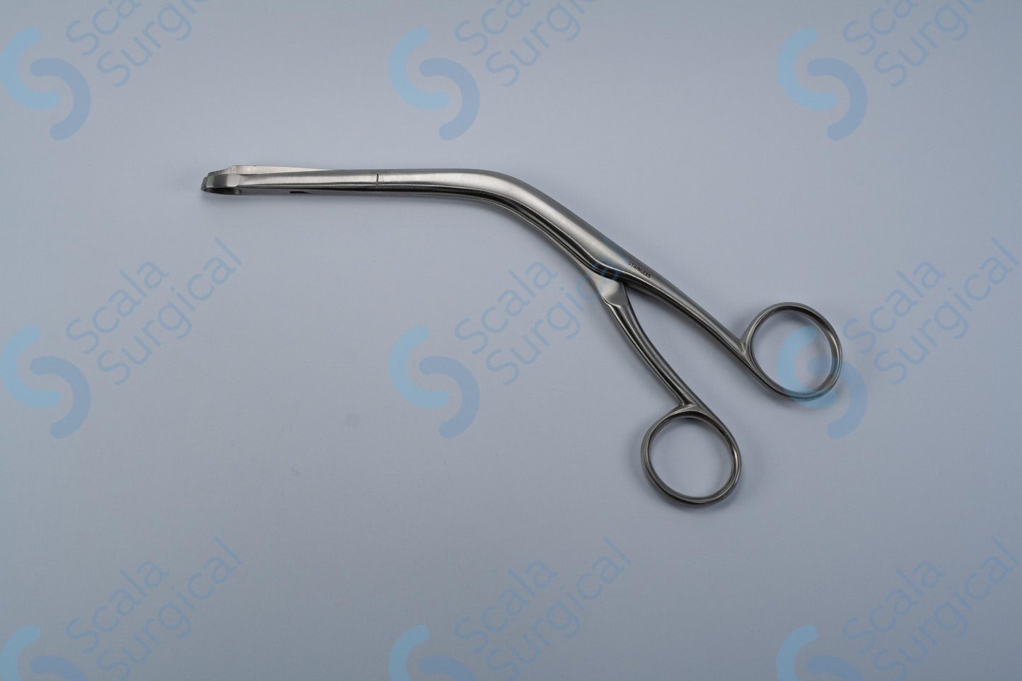 This item is a Faure Uter Cervical Biopsy Punch, which is used in the surgical field for taking a biopsy of the uterus or cervix. It has heart-shaped punch jaws angled at 209.55 mm and is typically used in gynecological surgeries.