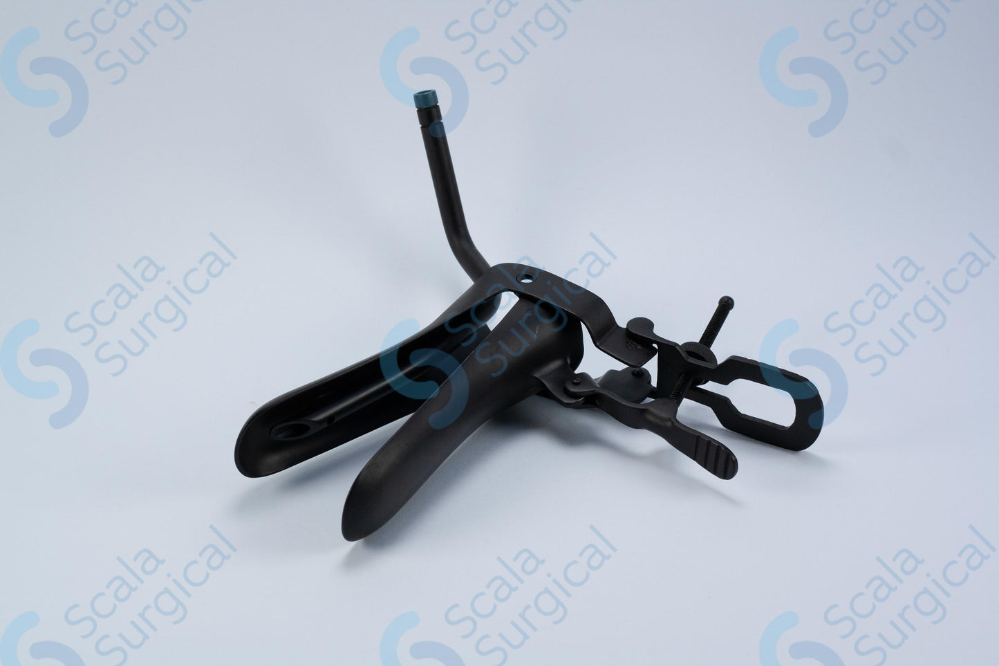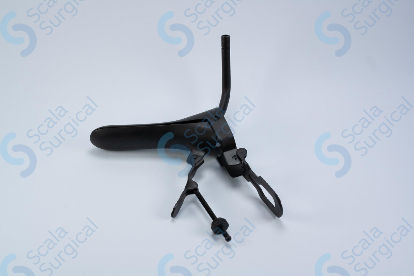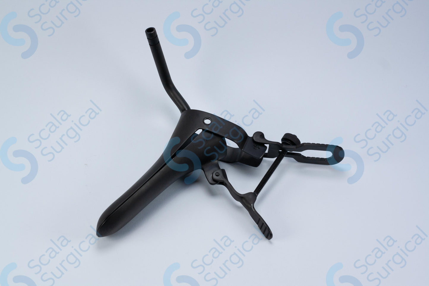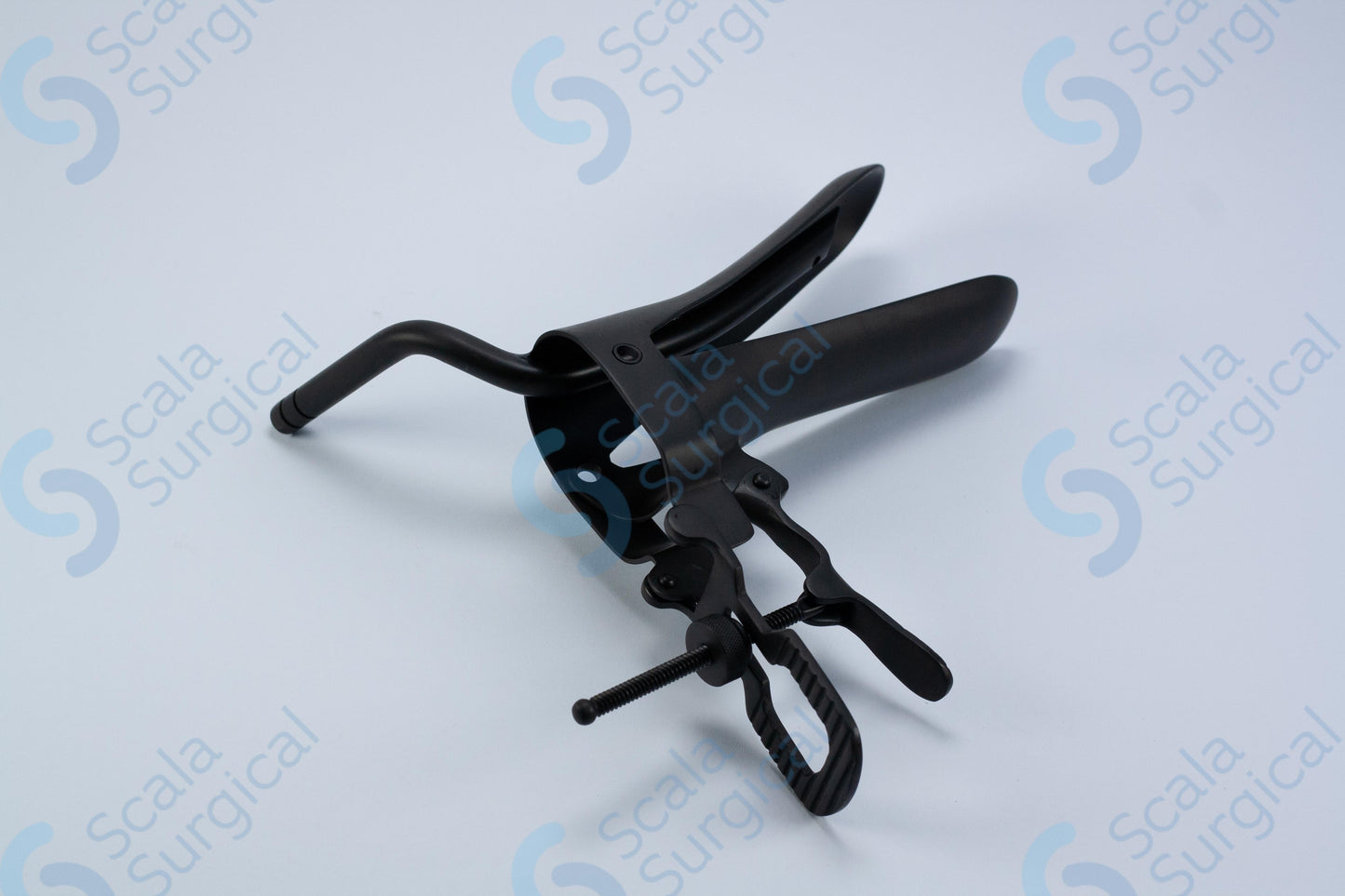 A Vaginal Cusco Speculum is a medical instrument used to hold open the walls of the vagina to allow a healthcare provider to examine the vagina and cervix. This particular model is black-plated and extra long with a size of 115 x 30 mm.