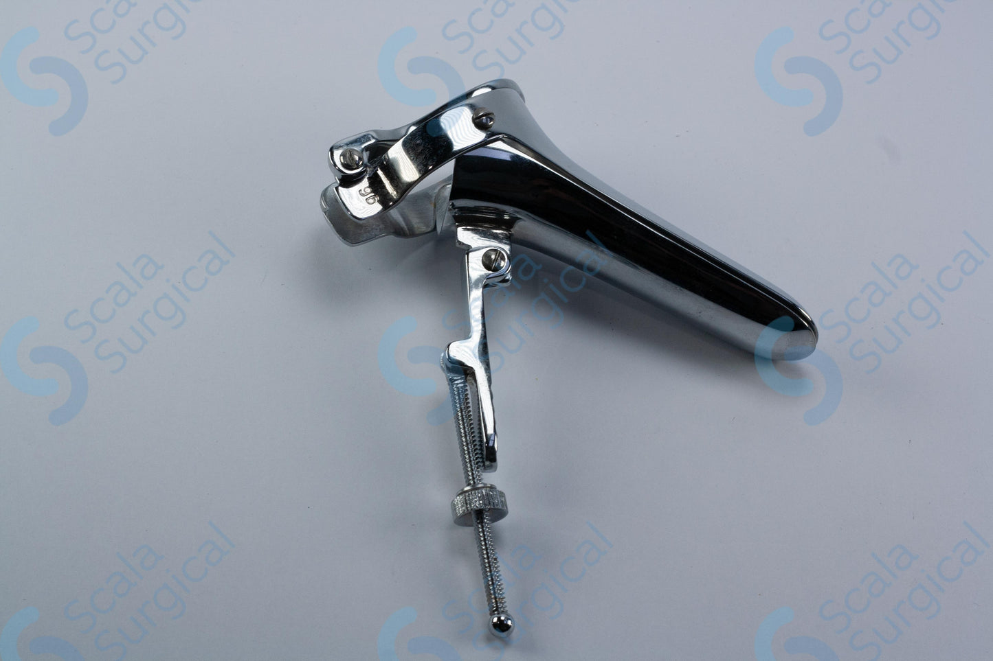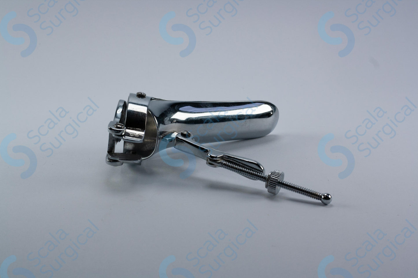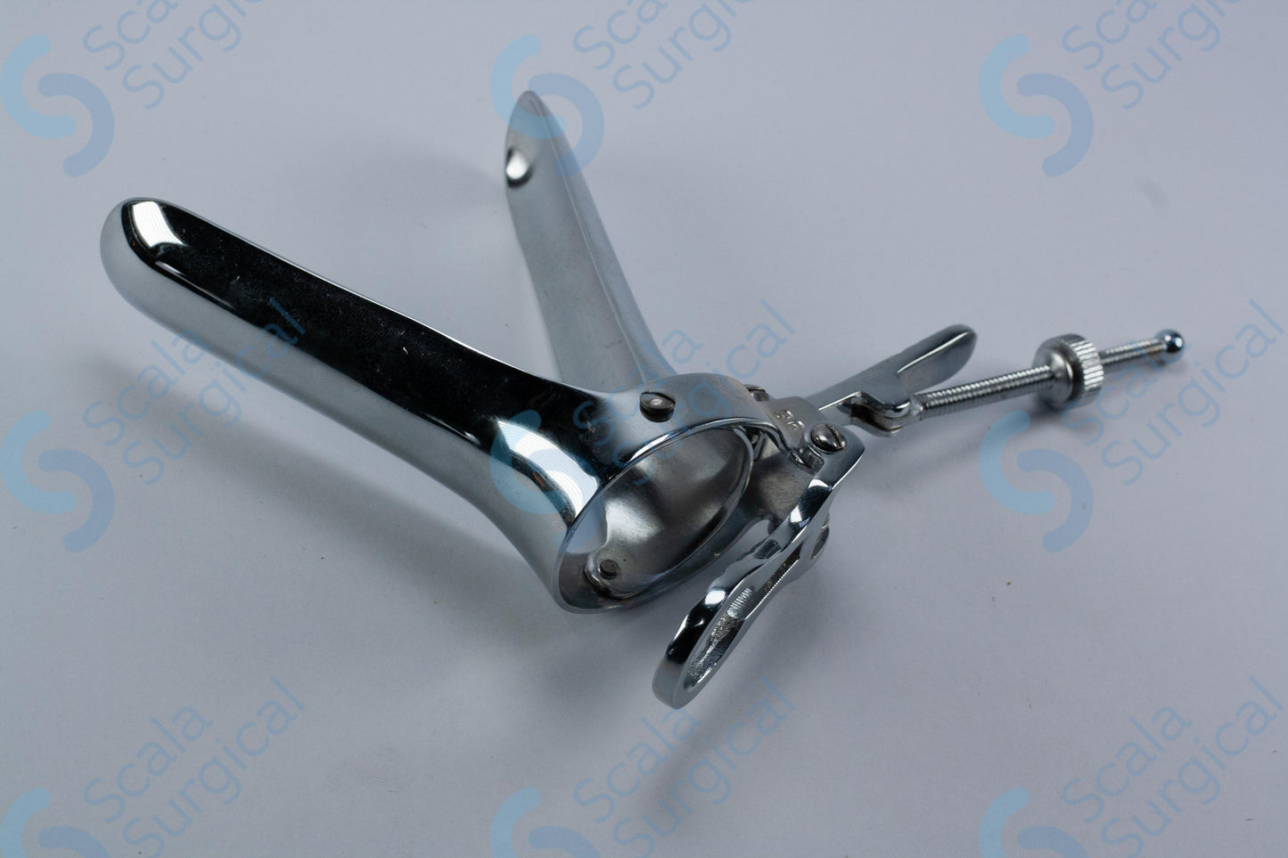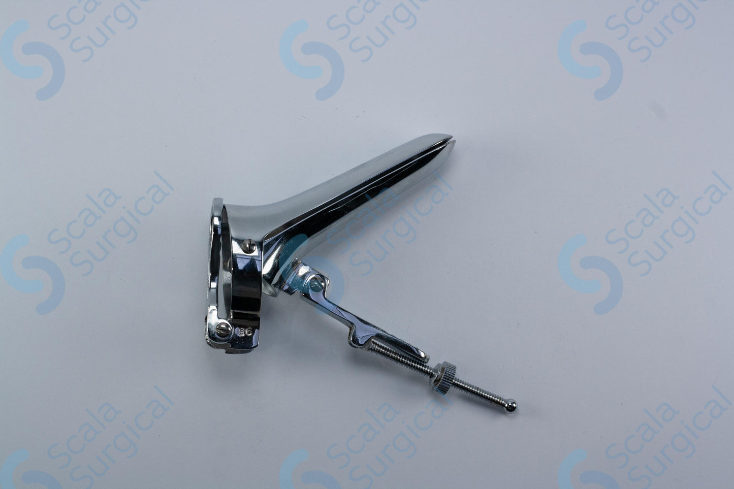 A Vaginal Cusco Speculum is a medical device used by surgeons to hold open the walls of the vagina during a gynecological examination. This particular model is chrome-plated and has a small blade length and width of 95 x 25mm. It is used to help the surgeon see the inside of the vagina more clearly during the examination.