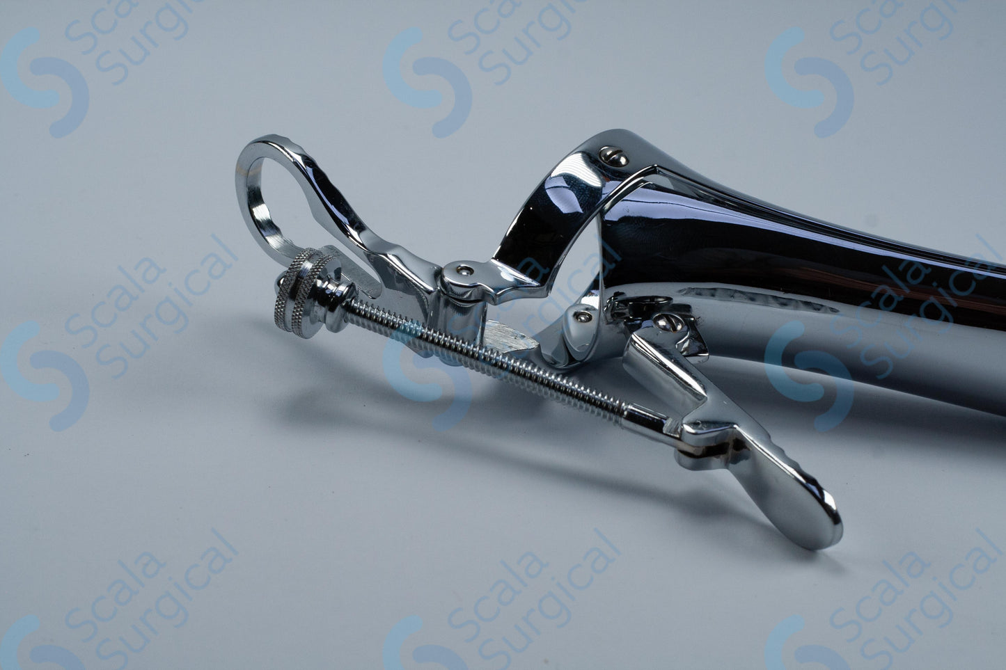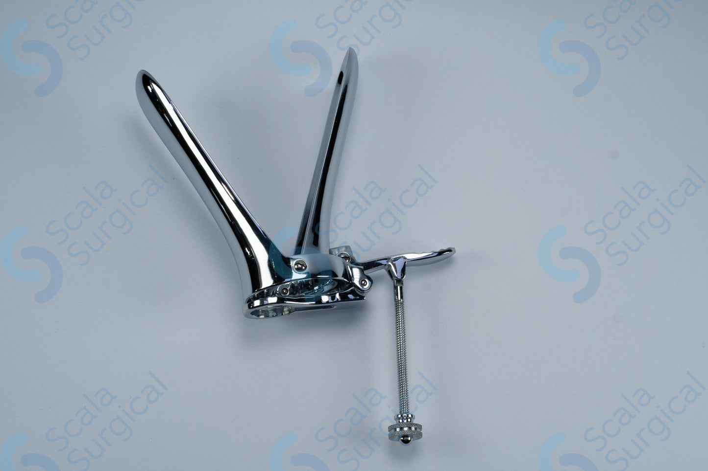 A Vaginal Cusco Speculum Chrome Plated Medium, Extra Long is a medical instrument used for gynecological examinations. It is inserted into the vagina to hold the walls of the vagina apart so that the doctor can examine the vagina and cervix. The blade length and width of 115 x 30mm is the size of the speculum.
