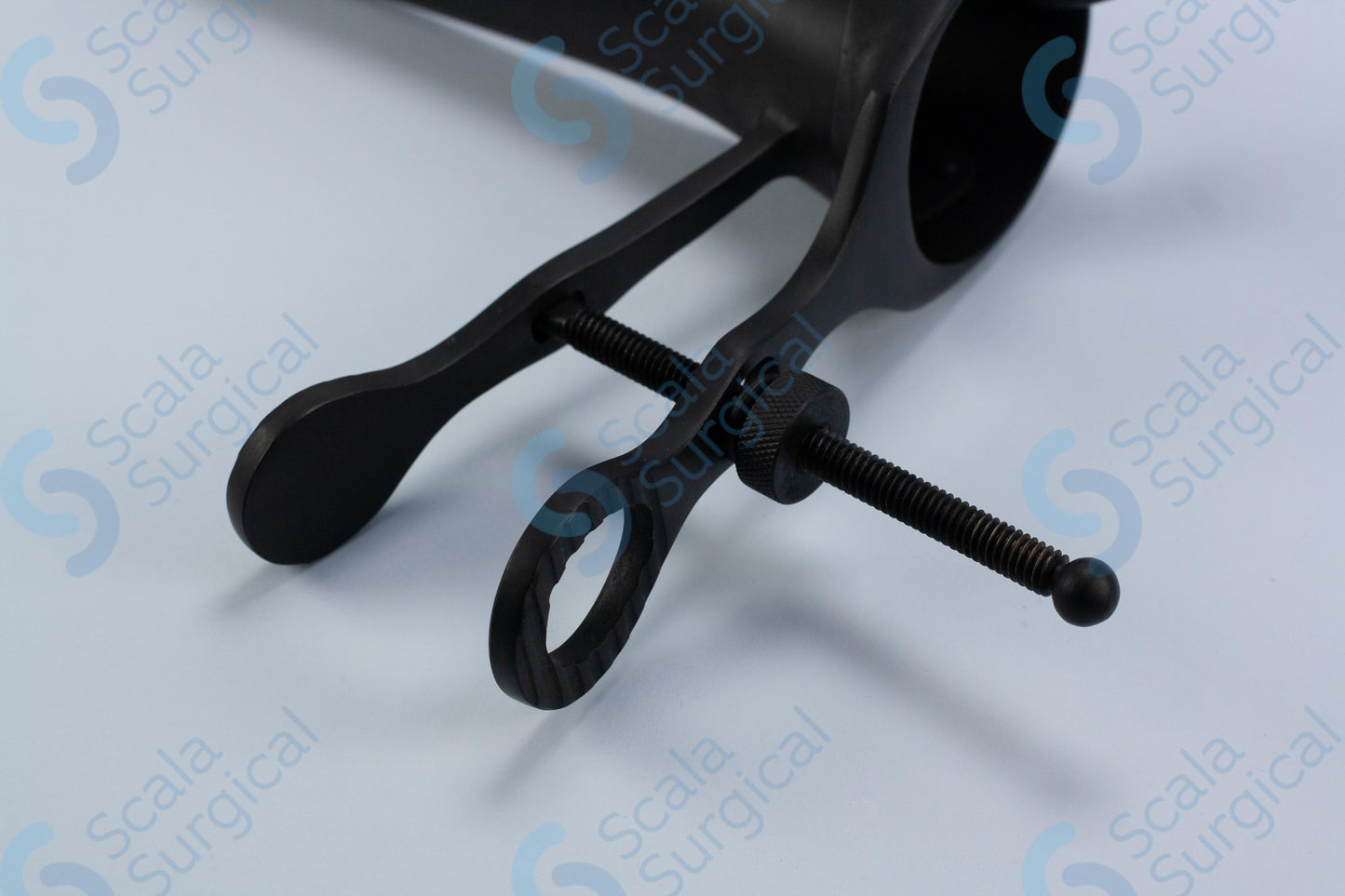 A Winterton Vaginal Speculum is a medical instrument used in gynecological examinations. It is inserted into the vagina to allow the doctor to see the walls of the vagina and the cervix. The insulated smoke tube and black finish are designed to make the speculum easier to use and to reduce the risk of burns from the smoke produced during the examination.