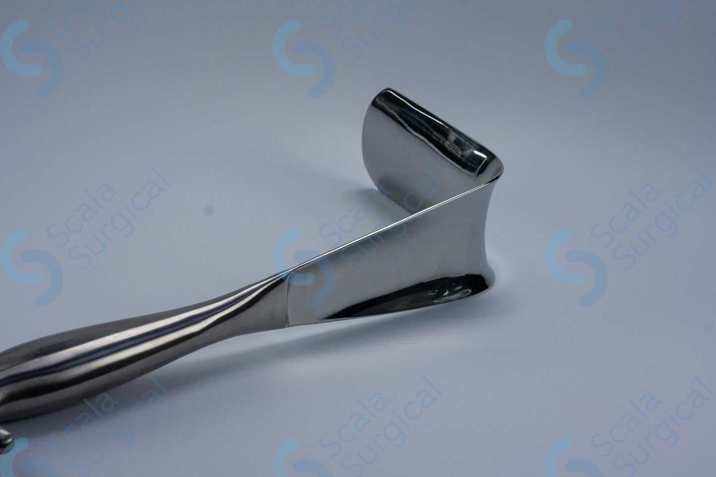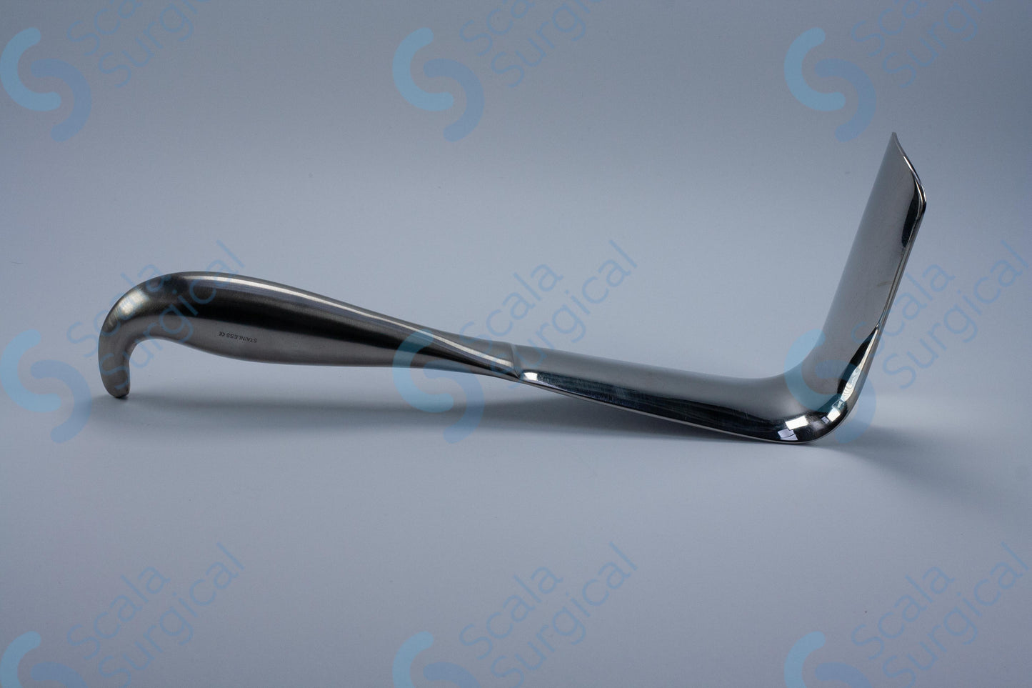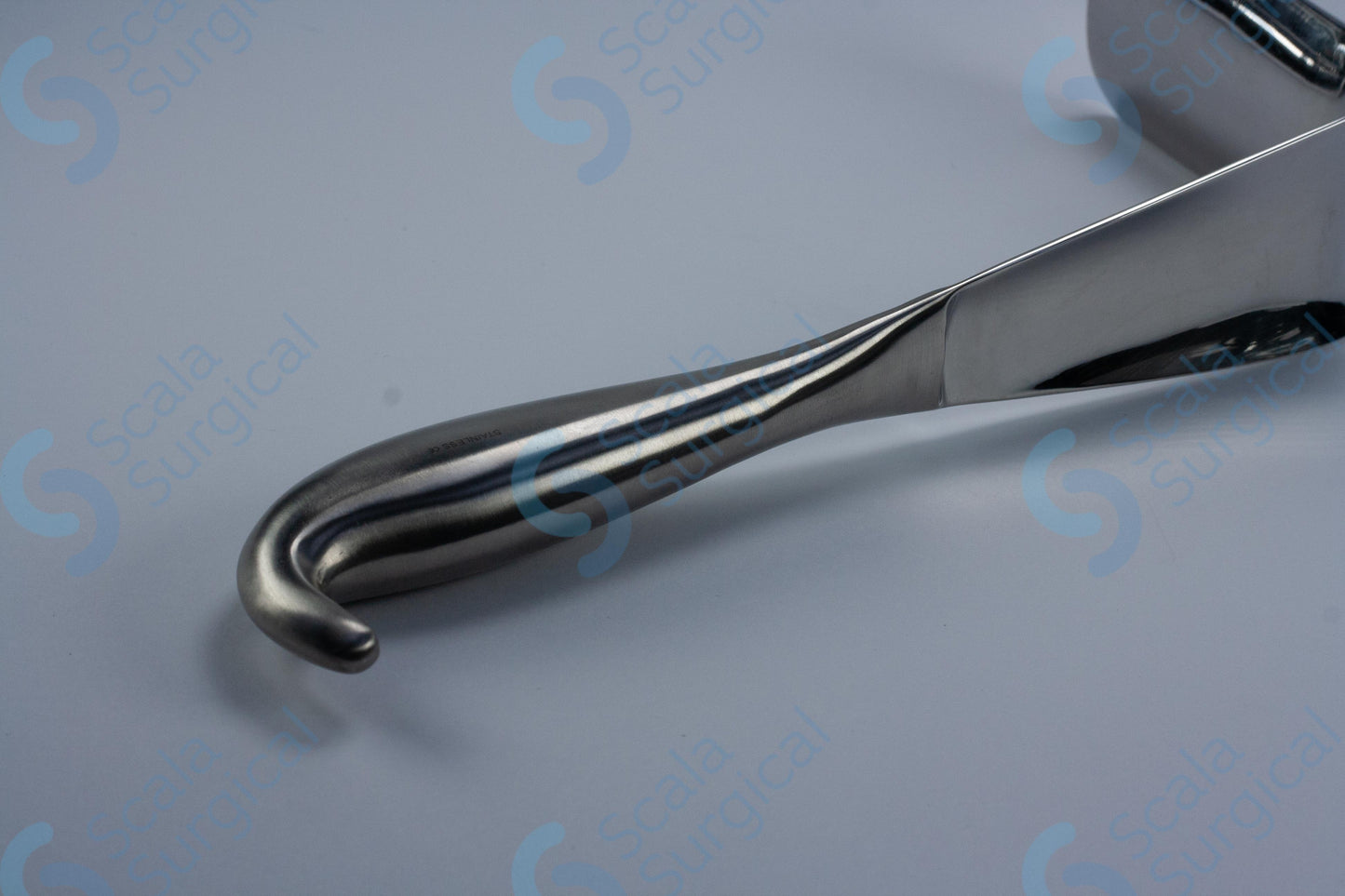 The Doyen Vaginal Retractor is a surgical instrument used to hold open the walls of the vagina during gynecological procedures. It is typically used during pelvic examinations and vaginal surgeries. The blade of the retractor is curved and has two sizes: 90 x 50mm and 242mm. The retractor is inserted into the vagina and the blade is opened to hold the walls of the vagina open, allowing the surgeon to access the area more easily.
